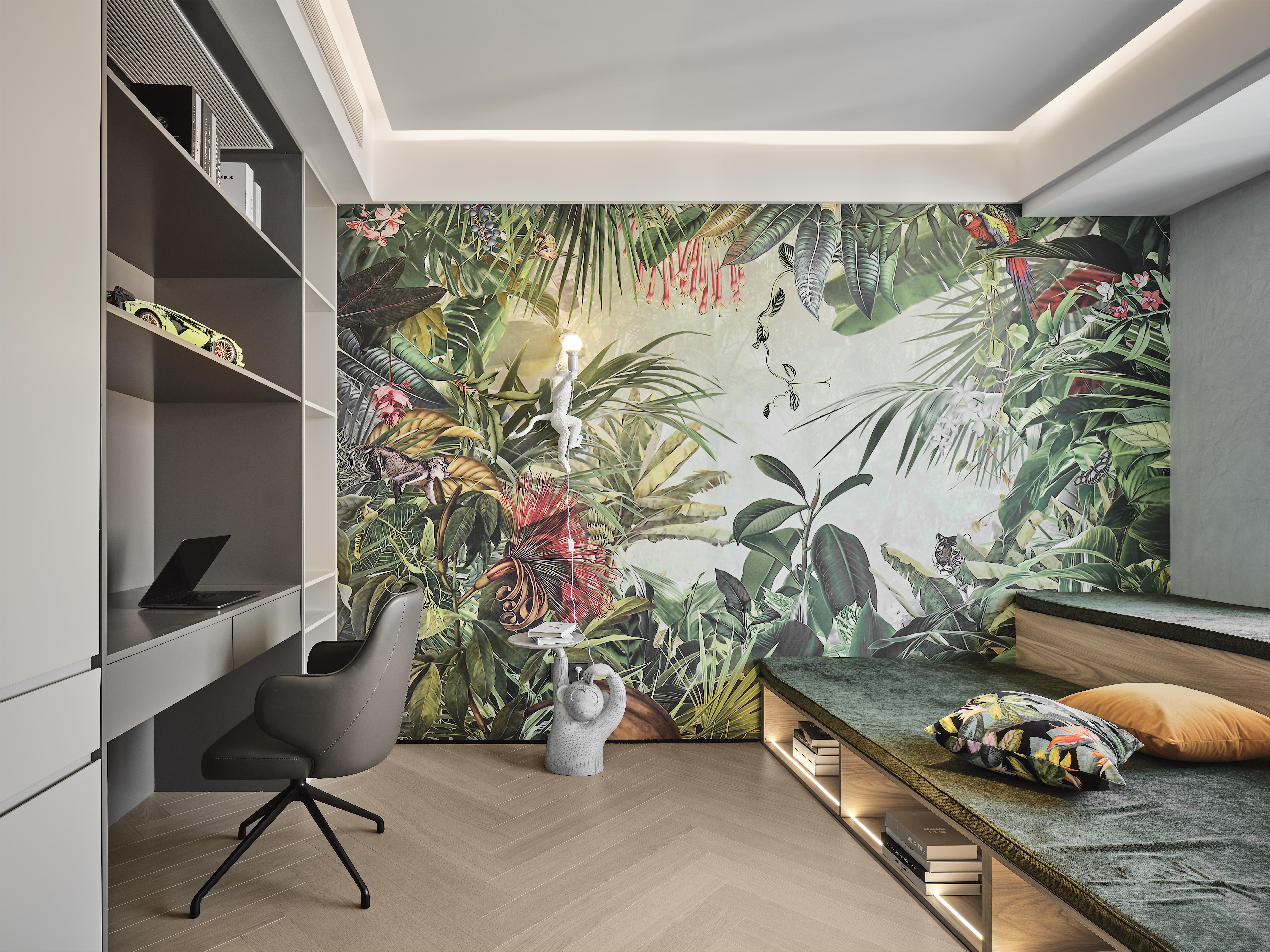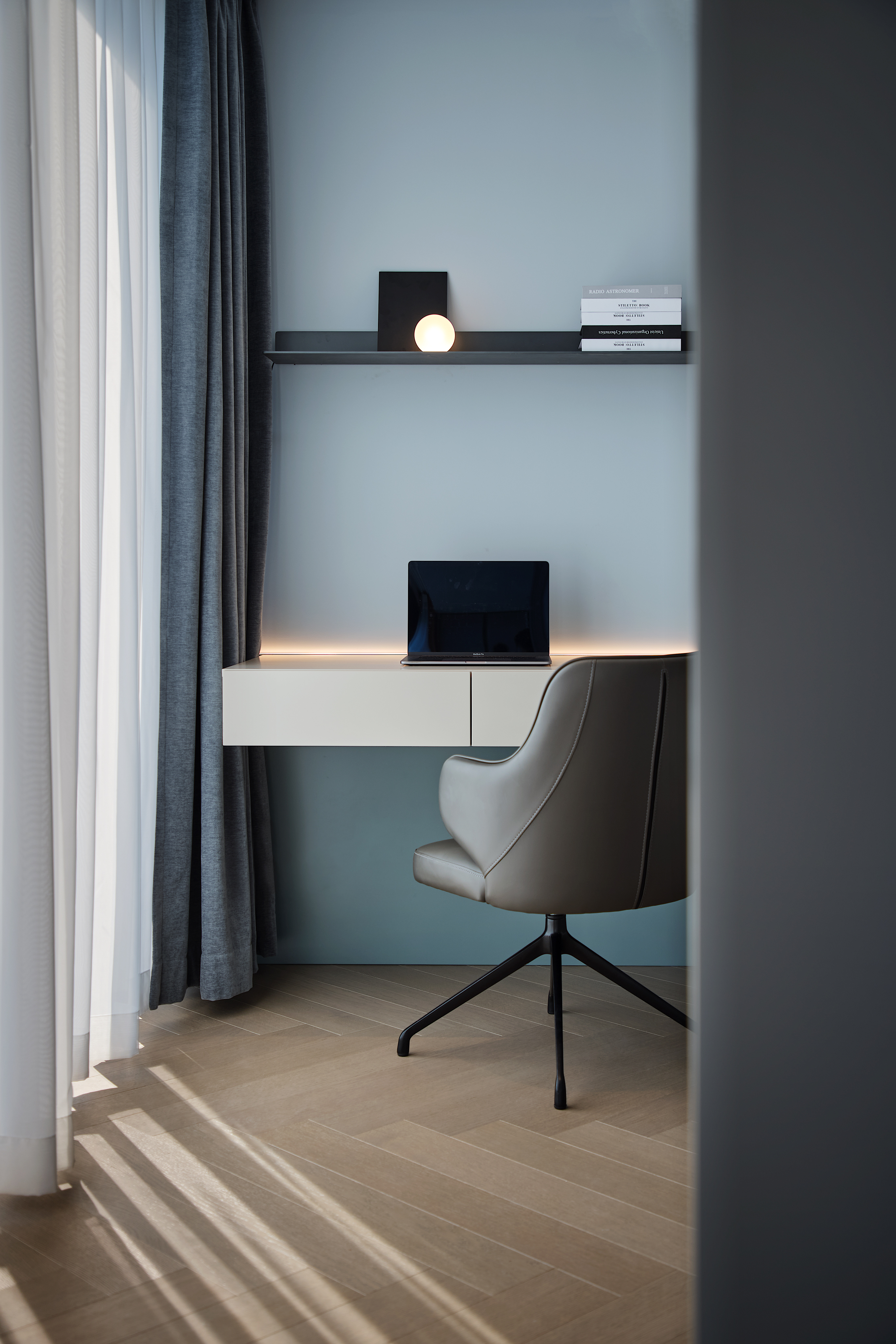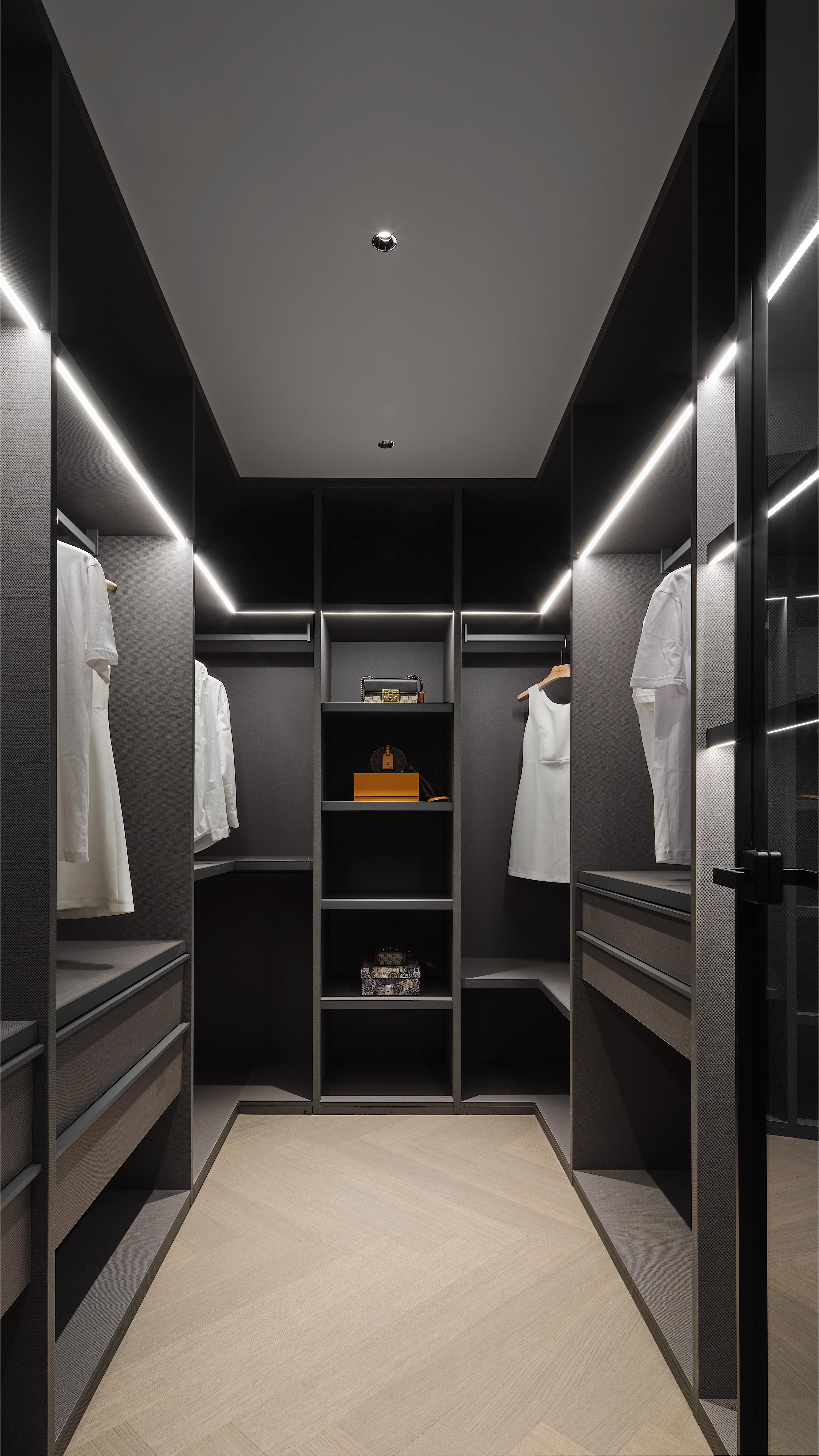 在趋向简约的形式上,则多以物之质感来涌现充沛的内在情绪。色彩、肌理、线条的浑然一体,皆离不开对材质和工艺的反复推敲。空间里多种元素如木饰面,玻璃,金属等的混搭,为中性化的色彩空间注入多元化的层次感。