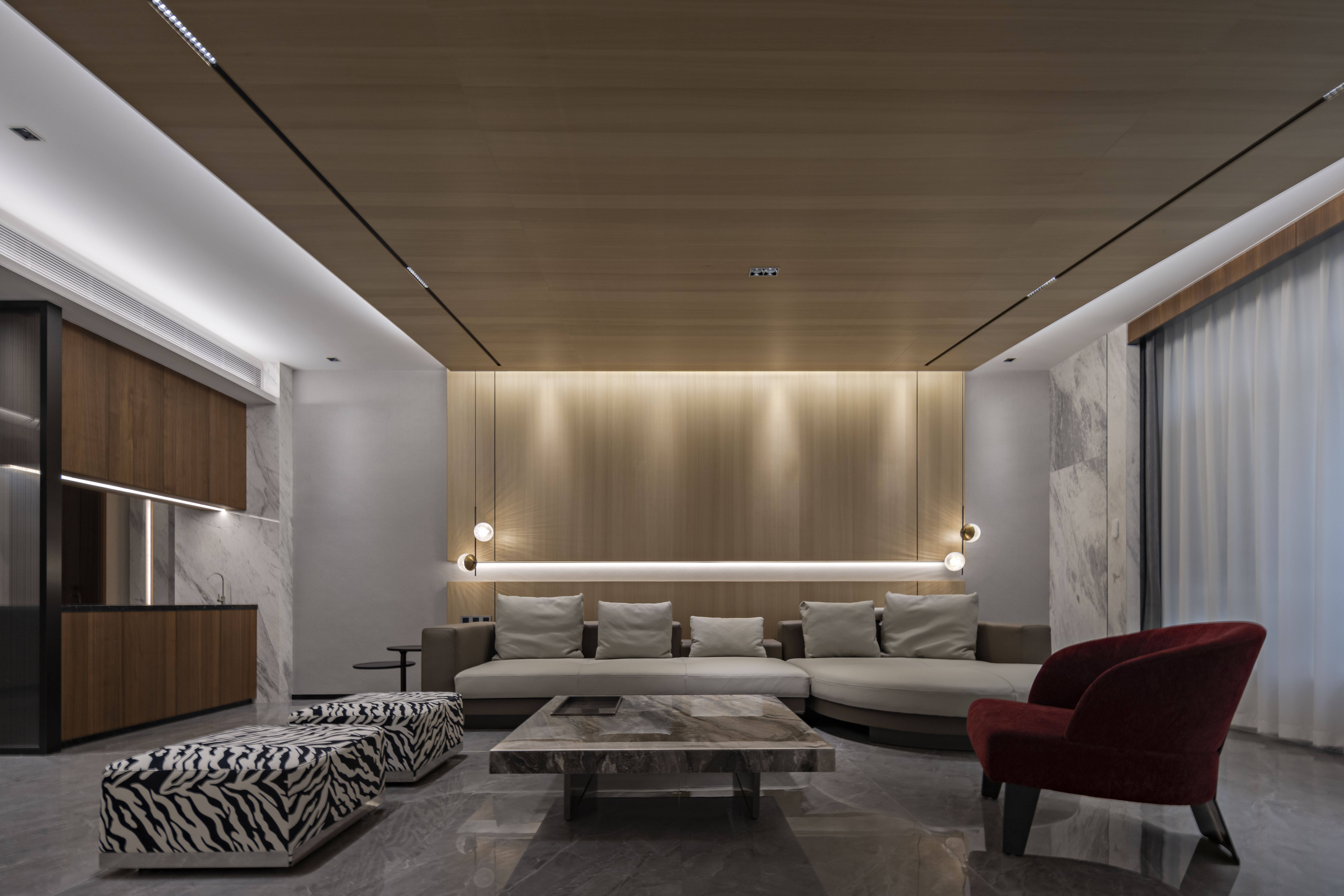 客厅的地面、墙面运用了水墨色调大理石岩板大板,整体展现出江南水墨格调,以细节呈现,为业主在他乡也能感受到家乡文化增强归属感。 -