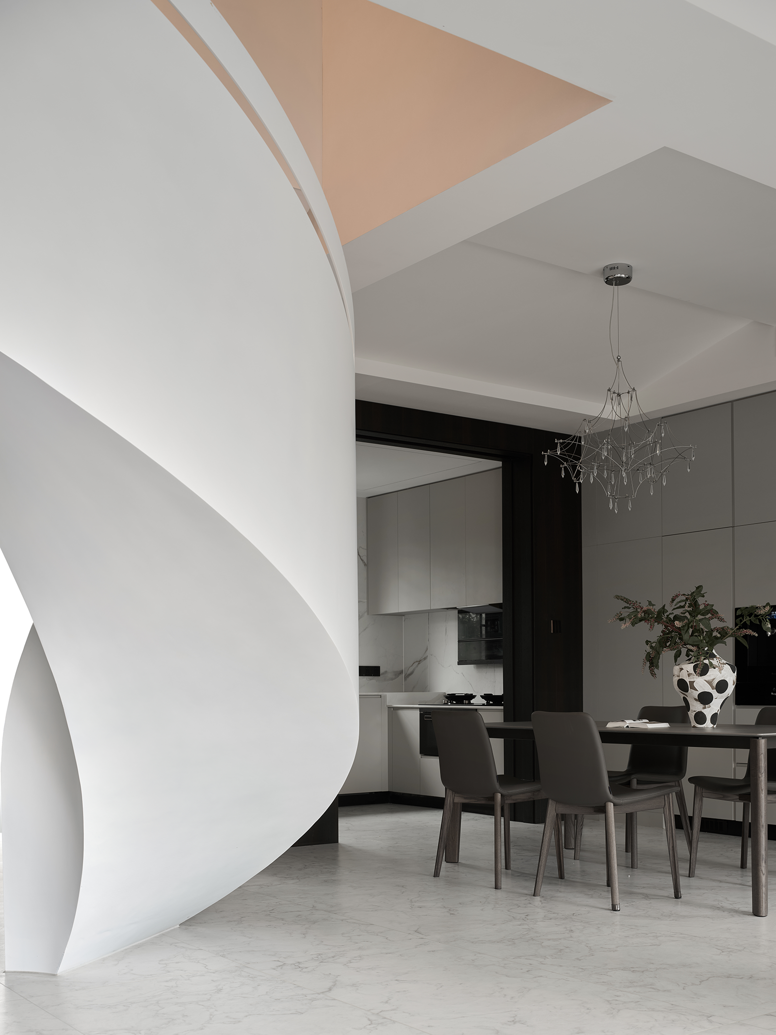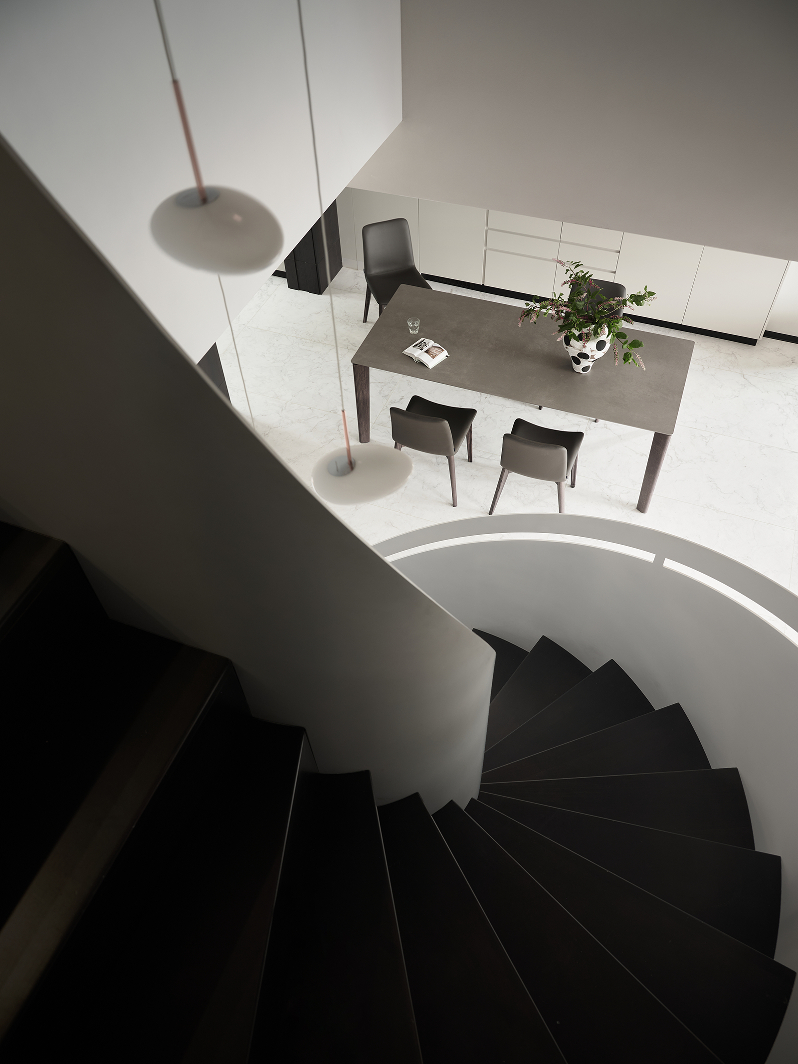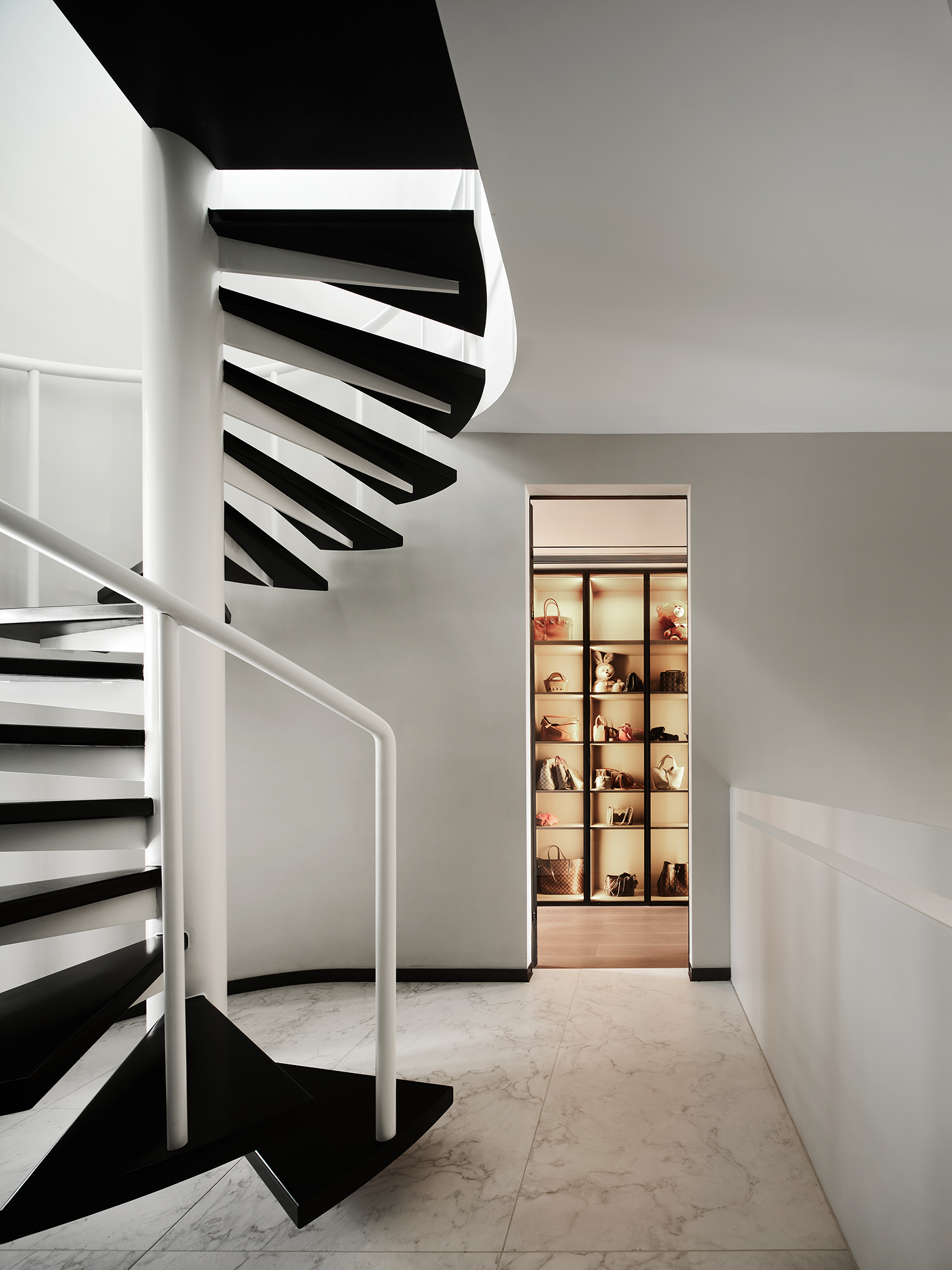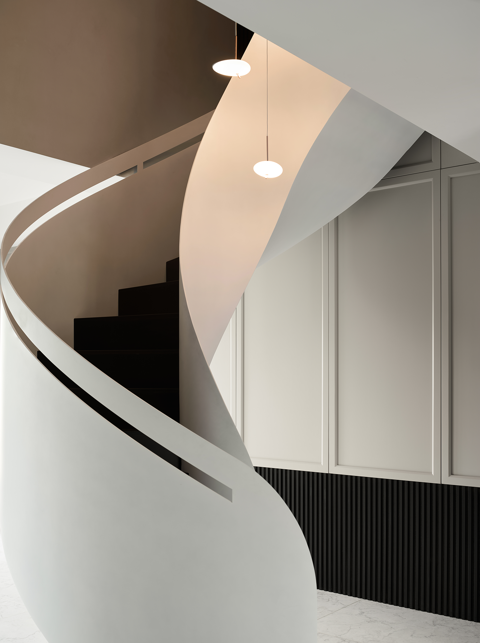 旋转楼梯,弧线优美,外观吸睛,占地面积小,最节省空间。空间与居者心的接轨,让时间延续。