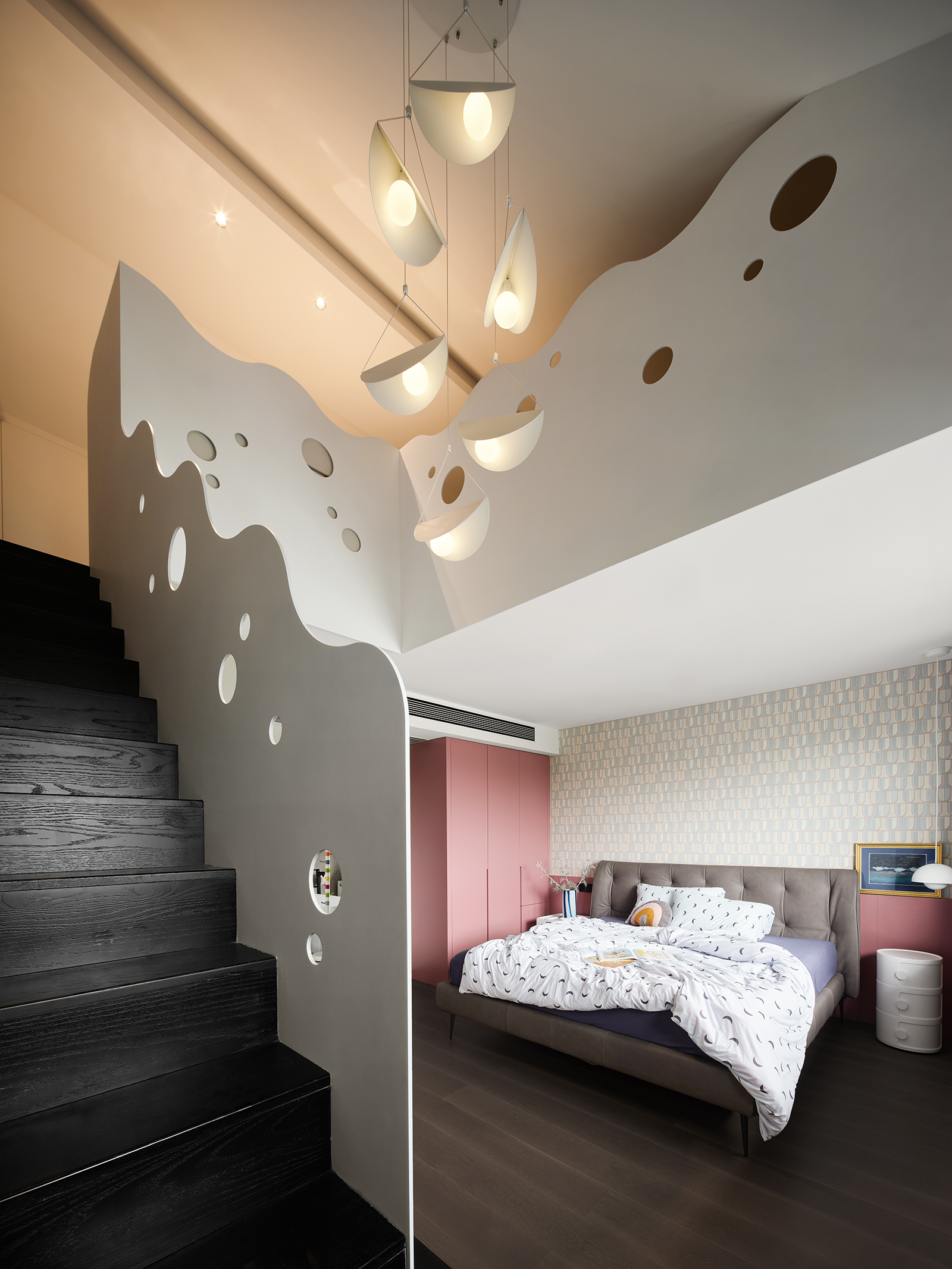 用户体验:该项目业主一家三口,工作和学校都在家附近,设计师营造温馨舒适的氛围,让居者在此享受生活的细碎美好。