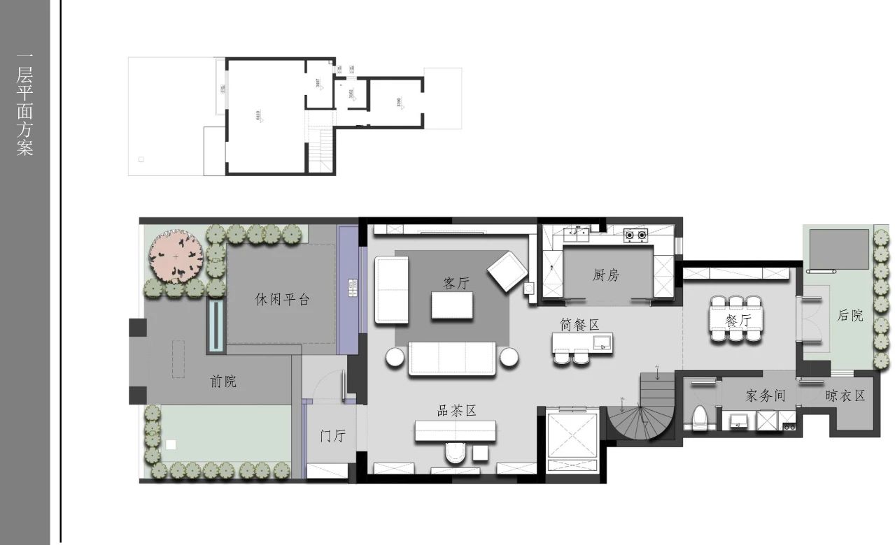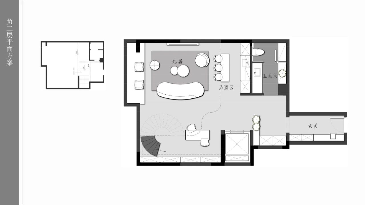 空间意境:家,是自由的空间,想干什么,自己说了算。负二层大量的“空”出,不去为场域做定义,解决采光以天然石皮引入自然元素缓解地下的压抑,一面白墙,可观影休闲;一块空地,可瑜伽健身;一个躺椅,可放空发呆;一个空间,空着,不设限,你想干什么都可以。