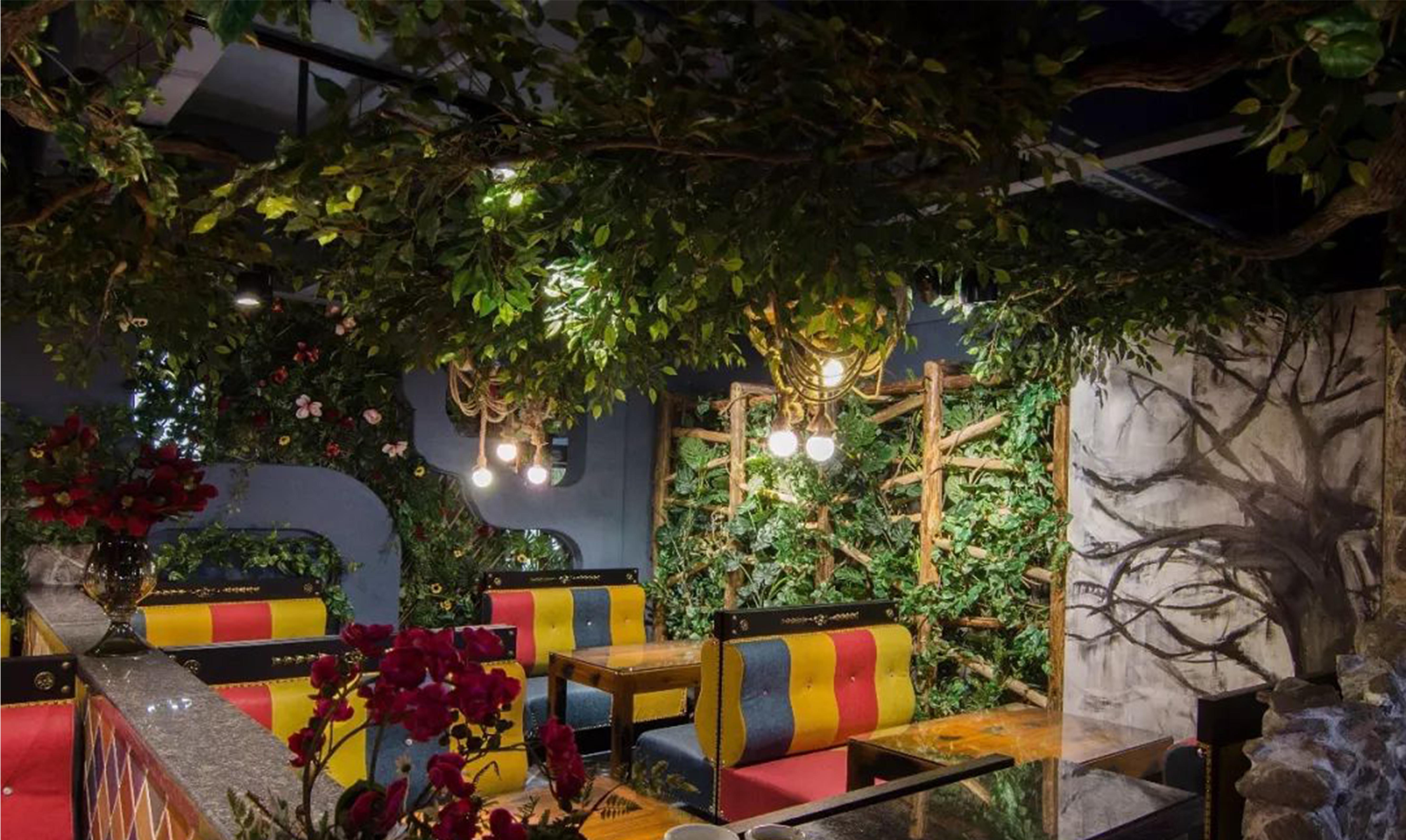 从室外有休闲暗示的绿植,进入绚丽繁华的前厅,这是设计的第一个意外感受。