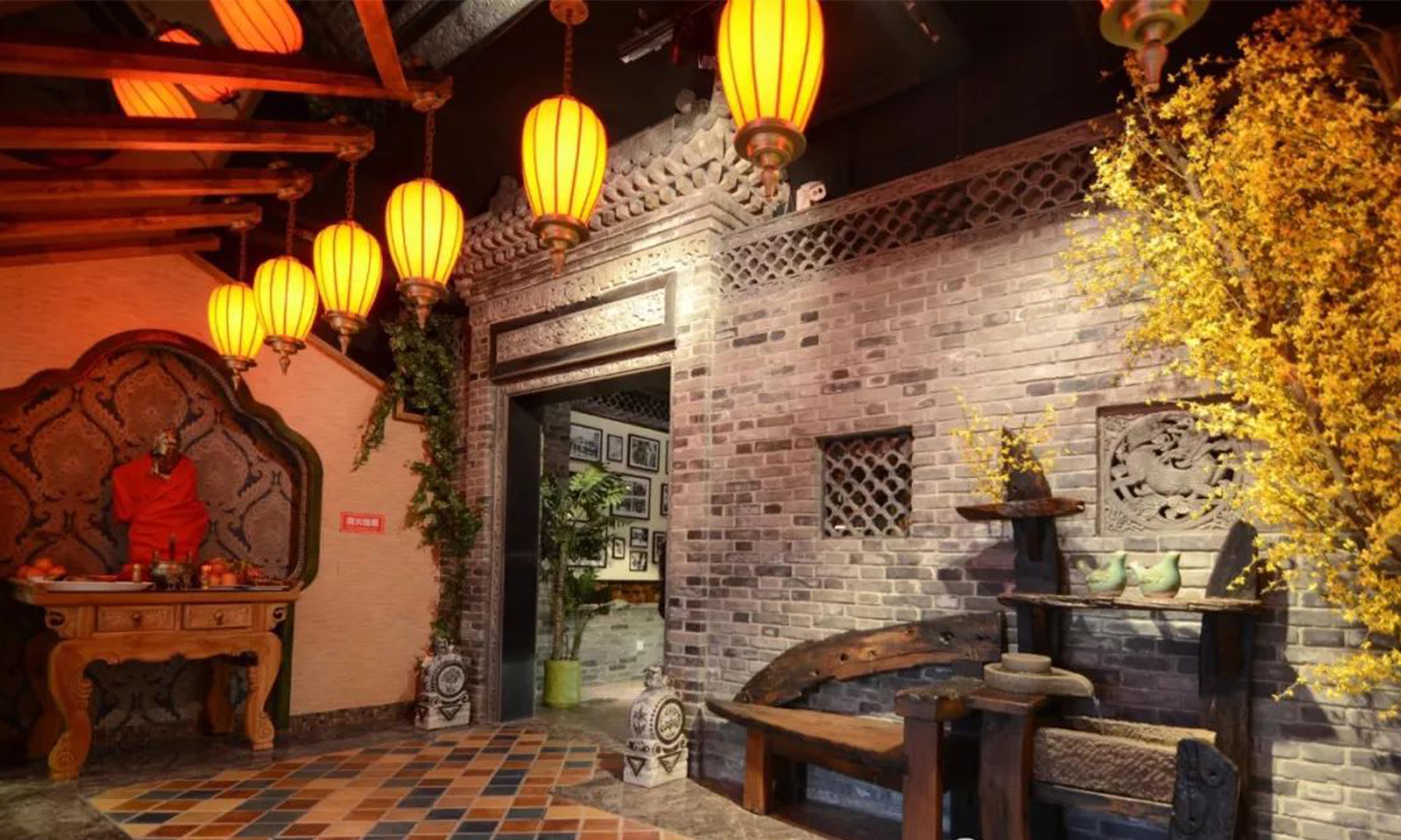 用砖墙合围如小院的散座区也有专门的入口进入,使得散座区也轻松悠然。