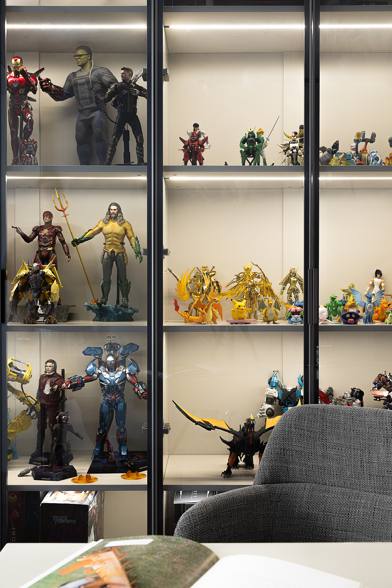 3.金属拱门是迎接私密区的仪式,踏入此,我先将我的“宝贝”收藏,一间书房承载着男主自小的爱好,各式手办“集结”带你进入童真快乐的异世界。