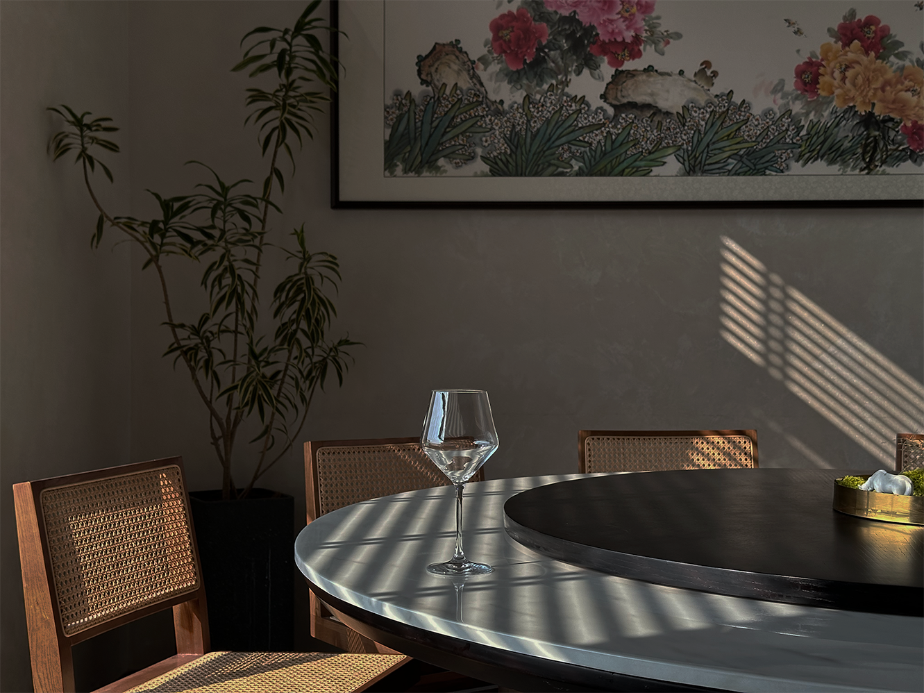 在空间设计中,光线无疑占据着核心地位。我们巧妙地运用光线,创造出丰富的层次感与氛围。通过控制自然光与人工光的搭配,我们成功地映衬出空间的宁静素雅底色,使整个空间都沉浸在温暖与和谐的氛围中。