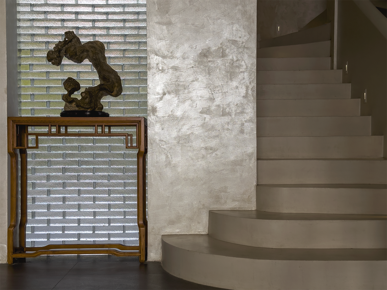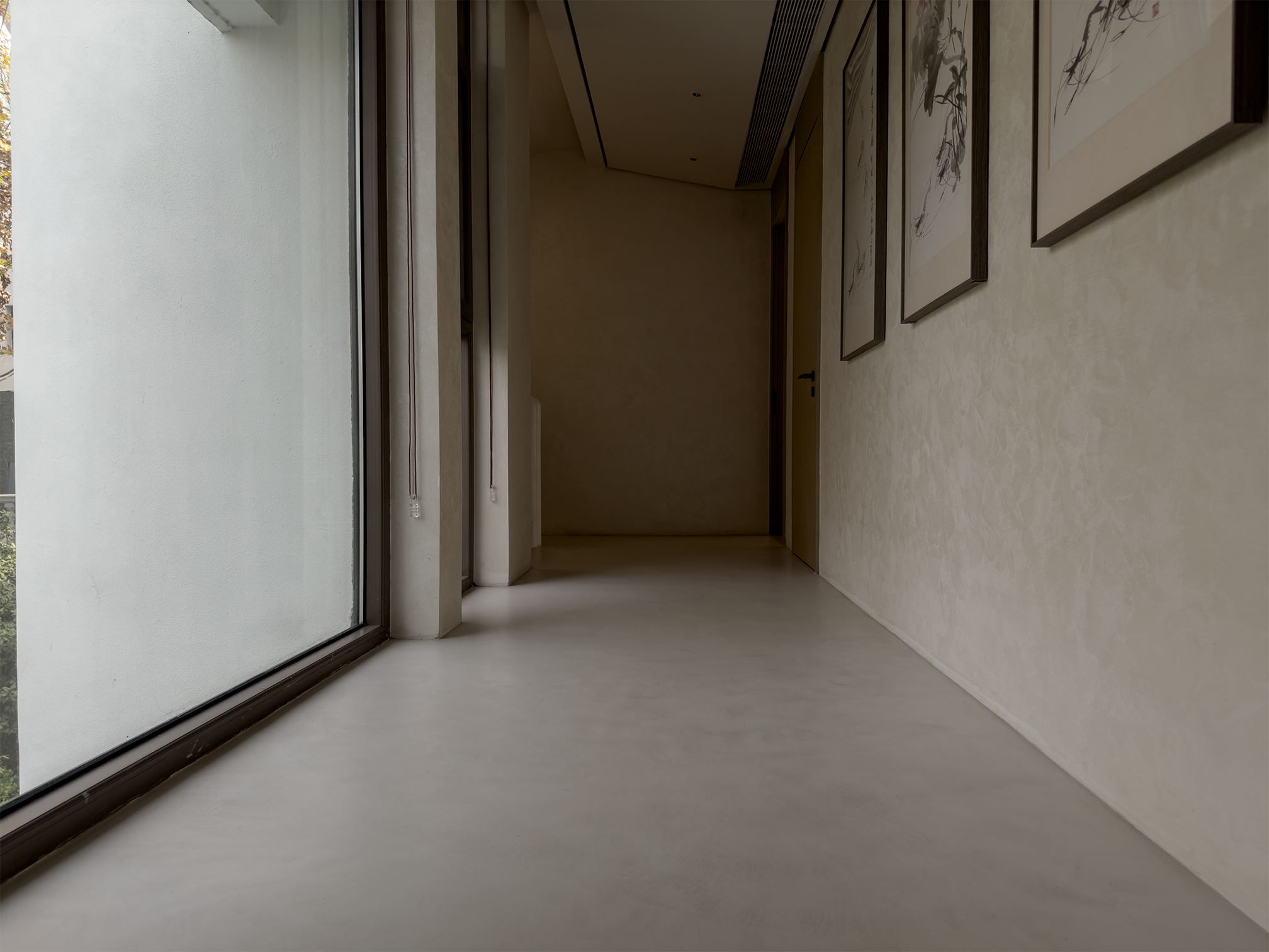 设计选材:本案的设计灵感源自自然原始的肌理感受,我们将微水泥的独特触感与其柔和哑光的视觉效果完美地融入了整个空间。这种材料的选择,不仅为空间带来了别样的质朴与自然的气息,更使每一个角落都散发着宁静与舒适。