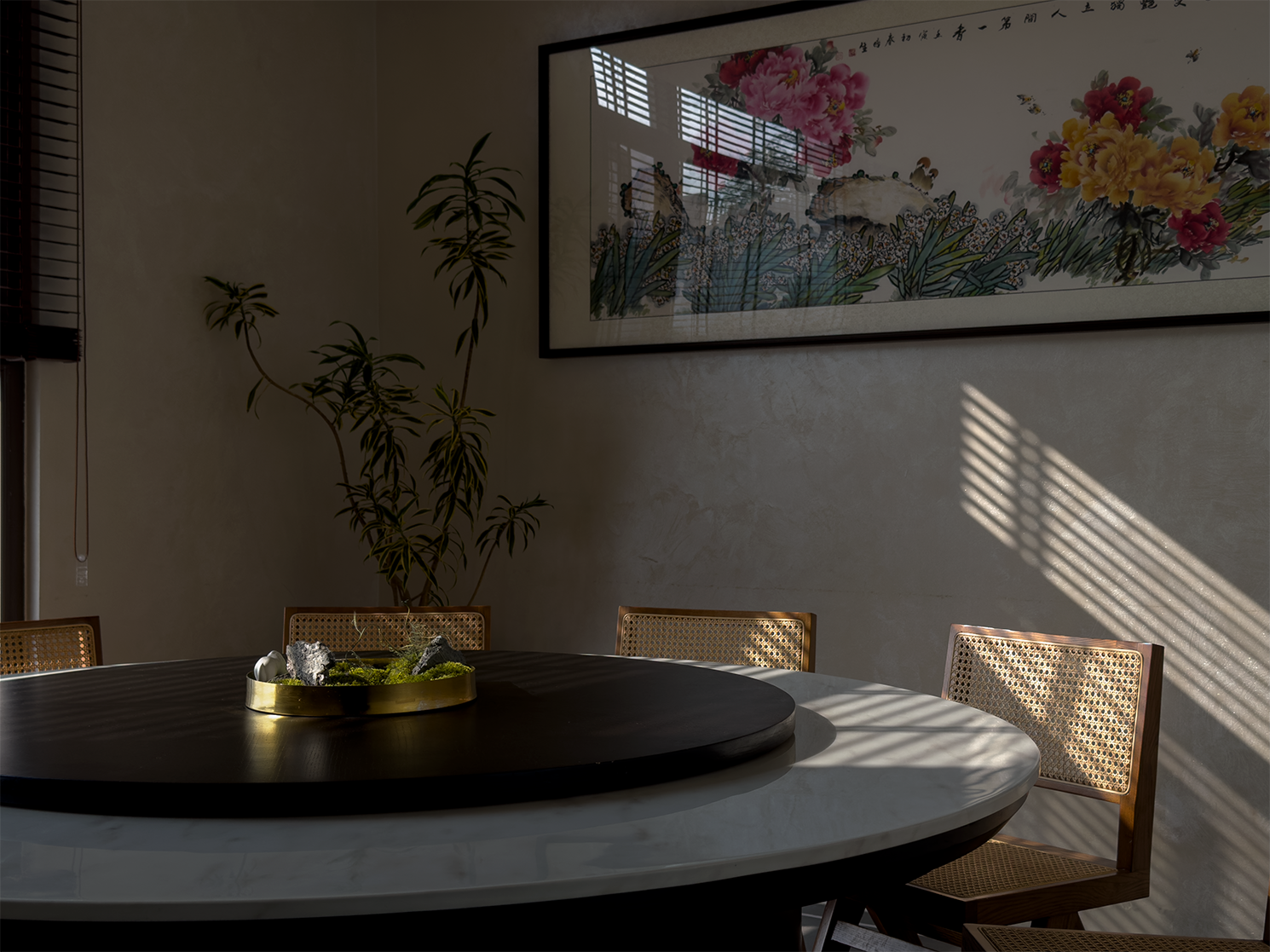 空间意境:本项目致力于实现功能需求与精神需求的和谐交融,在确保空间实用性的基础上,我们追求一种纯粹、素雅的氛围。我们摒弃了繁复华丽的纹样与图案,而是通过精心雕琢的形体体块、材料肌理,以及融入中式雅韵的家具摆设,来营造一个质朴、祥和的空间美感。