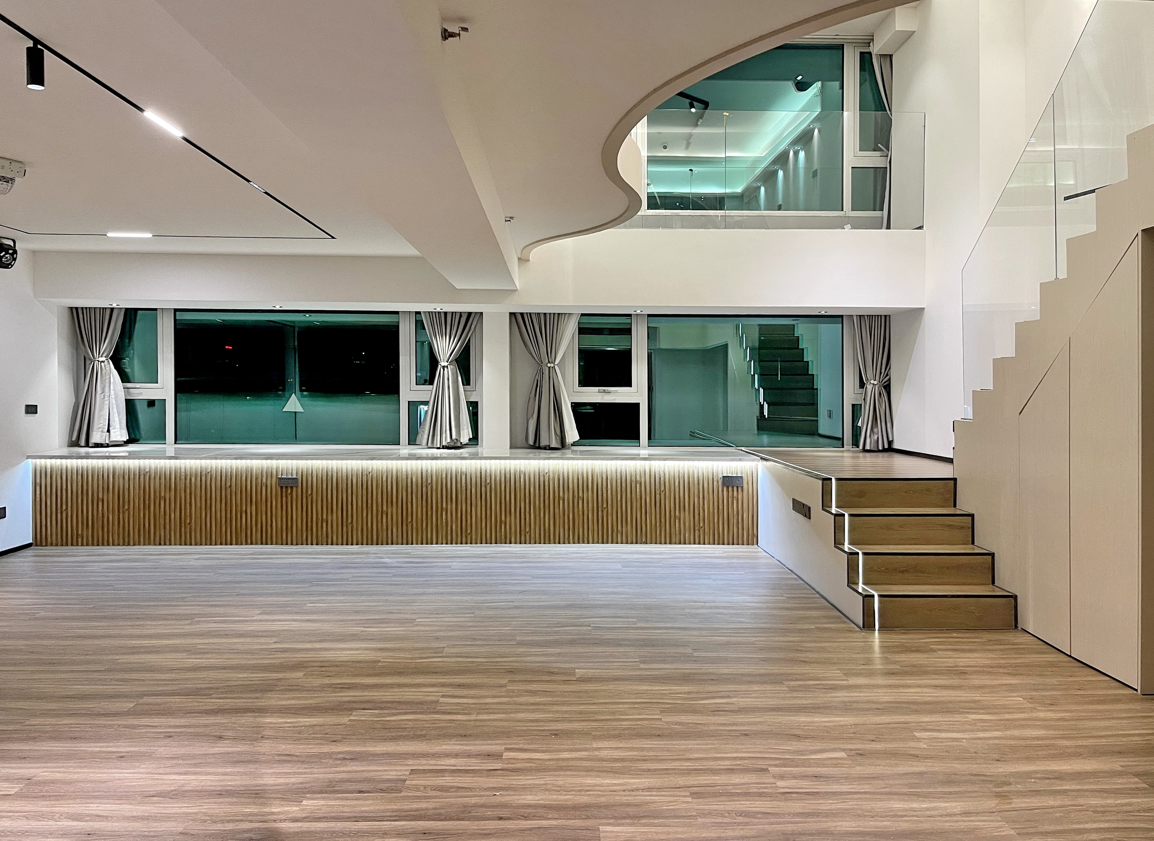 空间布局:在打造这个舞蹈空间时,我们首先考虑了舞者的需求。需要一个足够大的舞蹈空间,以便于舞者自由地发挥舞蹈技巧。同时,我们也为他们设计了专门的更衣室和休息区,以方便他们在演出前后的休息和放松。在空间布局上,我们采用了开放式的设计,使得整个空间通透明亮。同时,我们还巧妙地运用了镜面元素,让空间看起来更加宽敞。此外,我们还特别注重了色彩的搭配,以暖色调为主,营造出温馨、舒适的氛围。不仅如此,我们还选用了现代艺术风格的装饰品和画作,布置在空间的各个角落,不仅美化空间,更为舞者提供了创作灵感。最大限度地利用现有空间,创造出适合尊巴舞活动的空间区域。