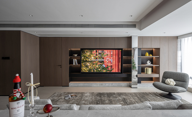 项目定位:以光线明暗对比、深浅变化表现空间层次,同时利用材质碰撞和联结秩序打造时尚感和空间力量。