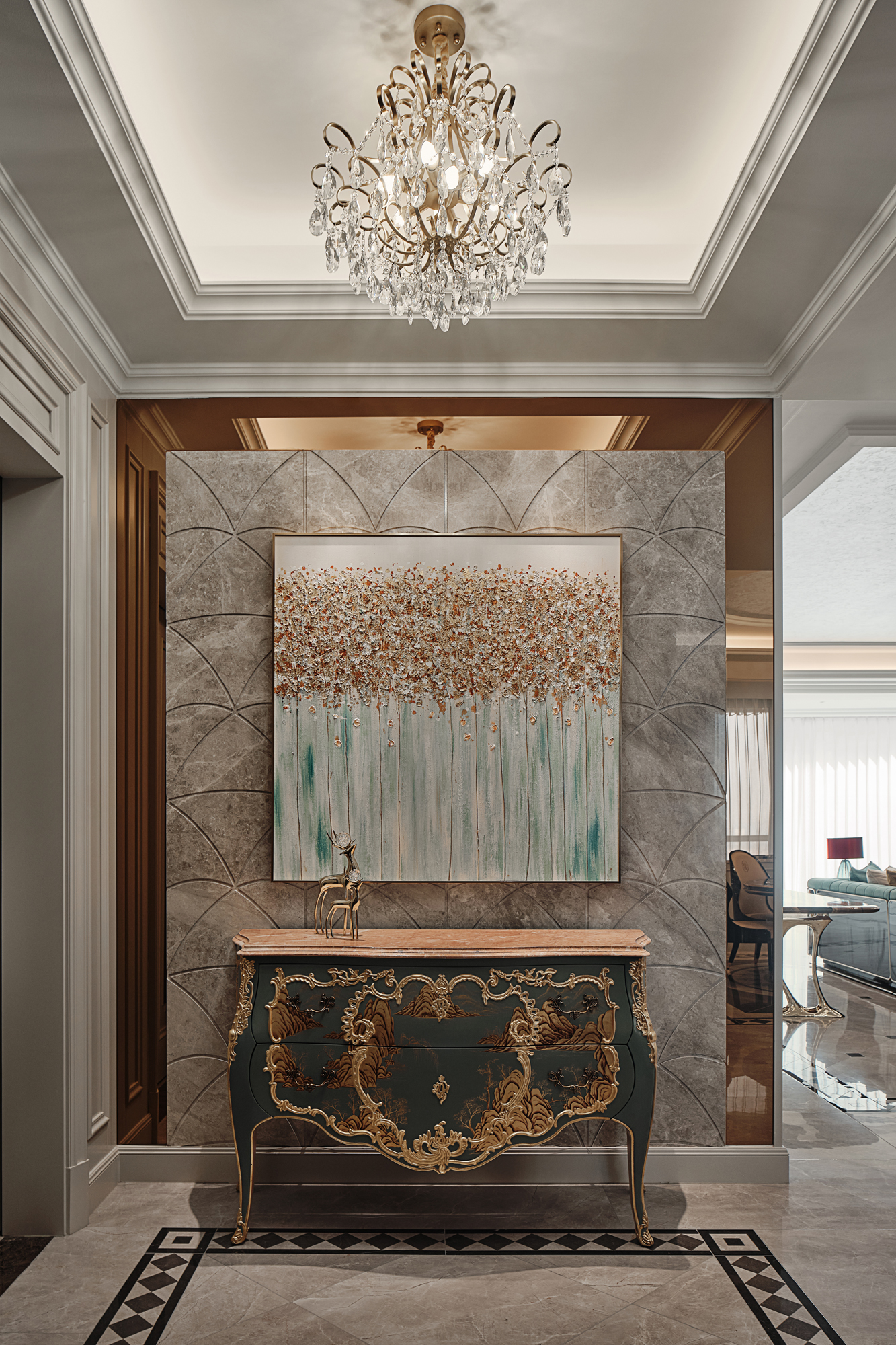 在现代生活空间中演绎新古典,想要浪漫的味道,当然要到艺术底蕴深厚的欧洲文化中打捞起装饰的元素。