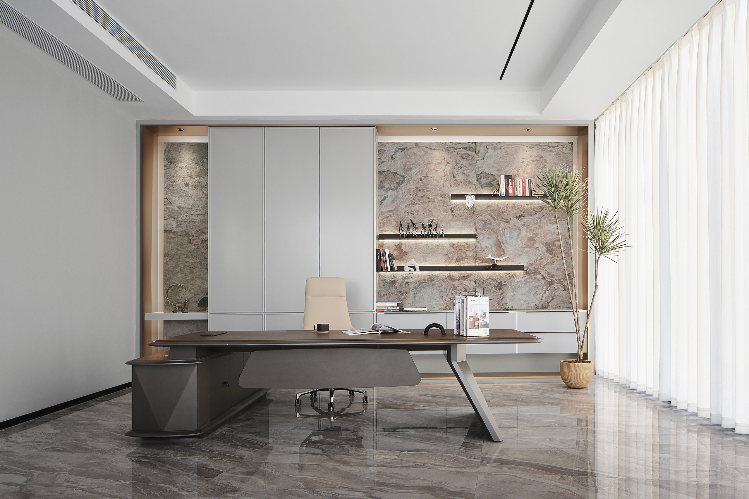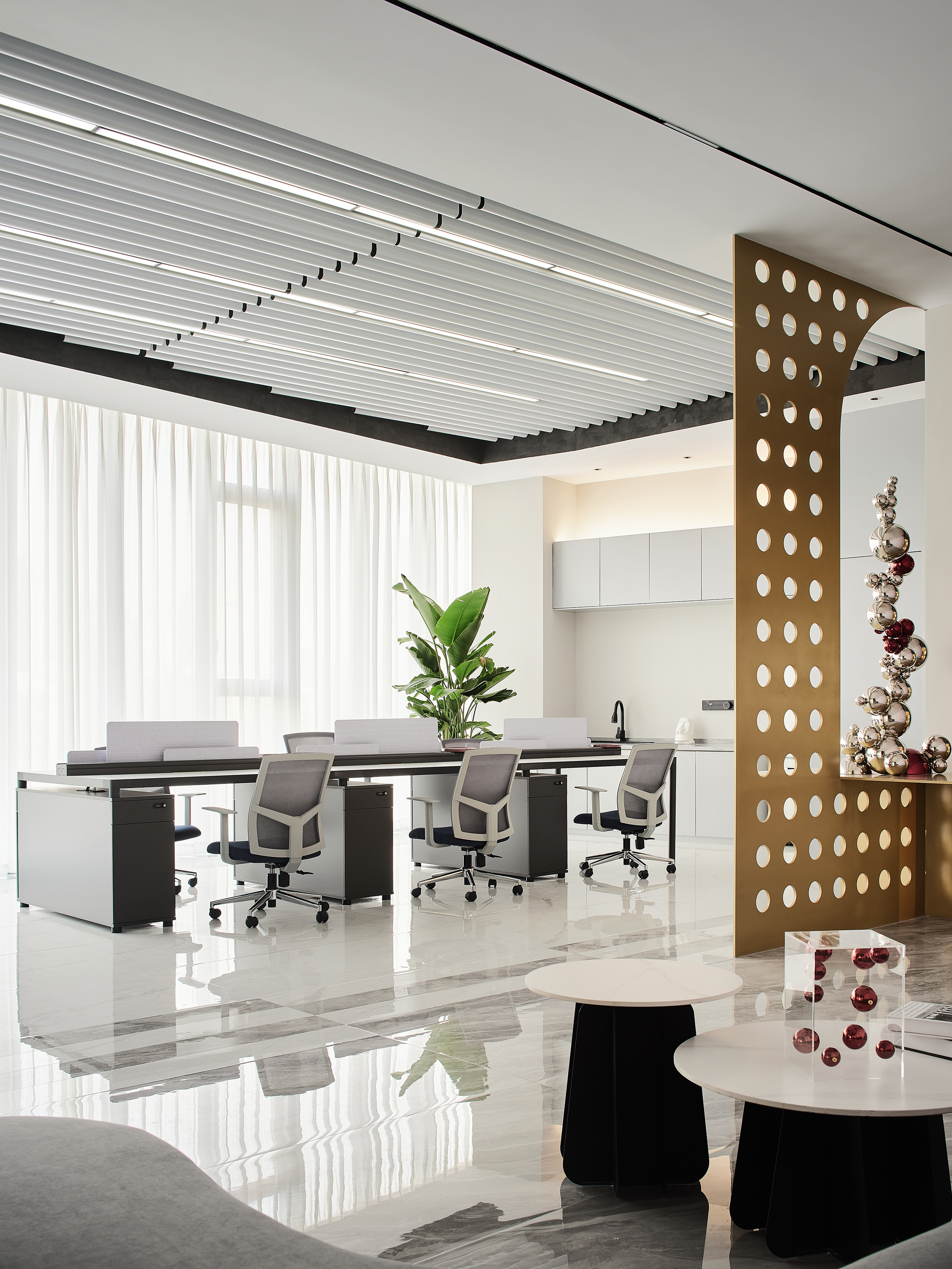 空间布局:大尺度的开阔空间,物件疏密有致,空旷舒适又不失丰富与层次感。
