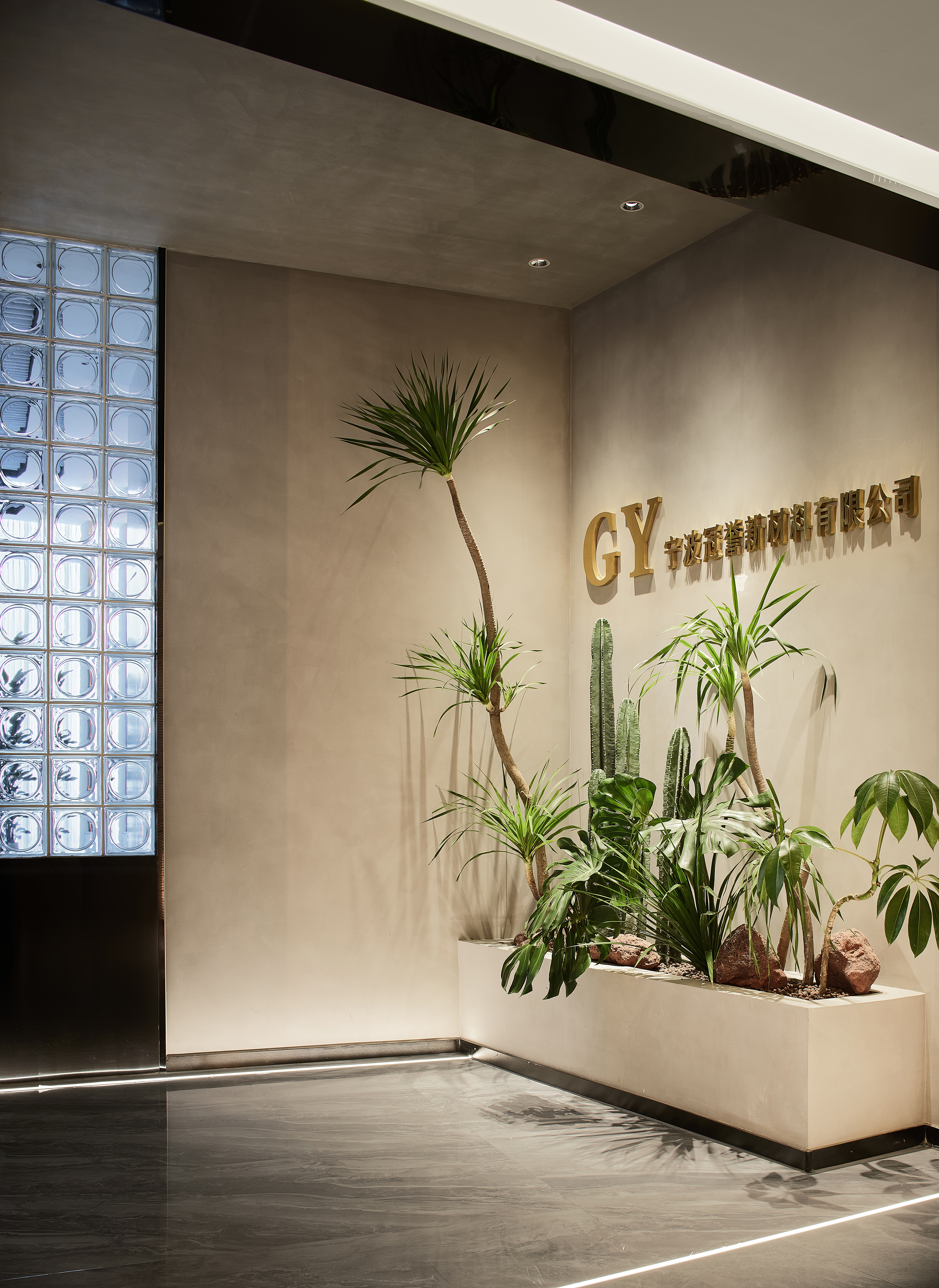 设计选材:通过使用高科技材料金属、玻璃以及植物表达出一种科学技术的气息。