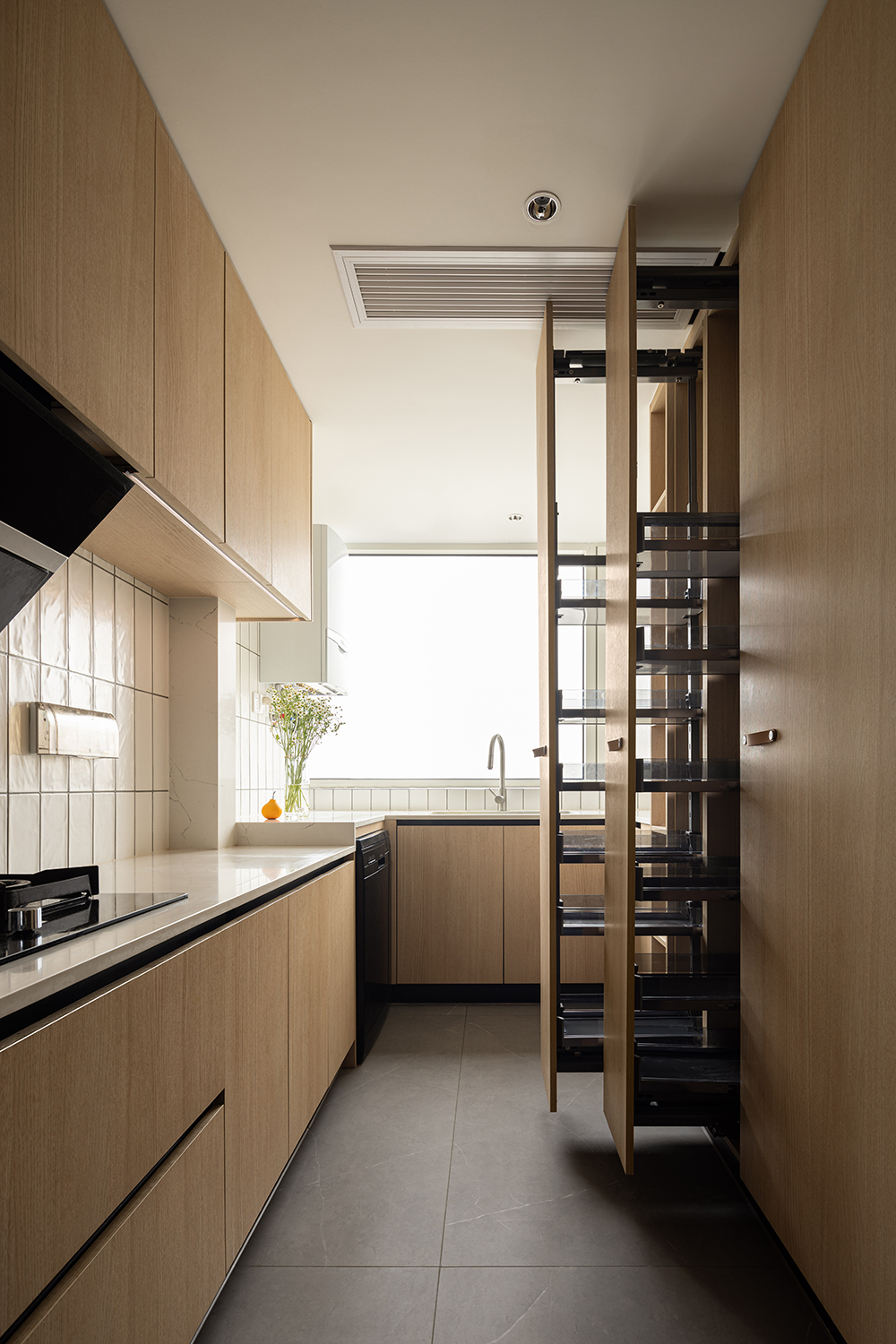用户体验:在有限的空间尺度中,尽可能设计出更多的收纳空间。清爽干净的操作区,会让居住的人拥有一份好心情,也是对热爱生活的人一种回应。