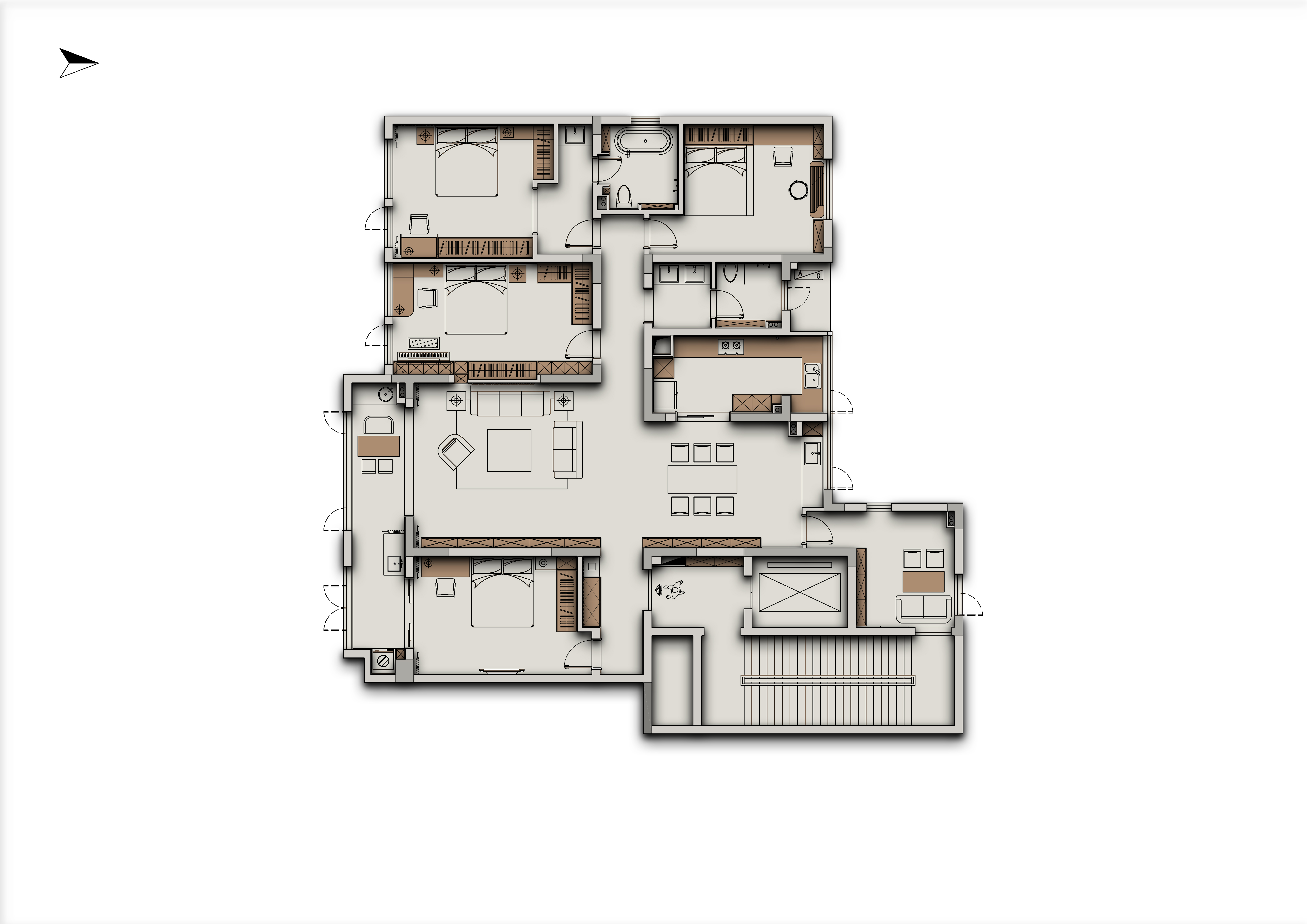 通过设计技法优化空间结构,将功能与个性需求融合在一起。作为相对公共的客厅区域,在与其它空间的连接、组合中,以丰富的功能性与强大的包容性,满足了居住者的空间诉求。