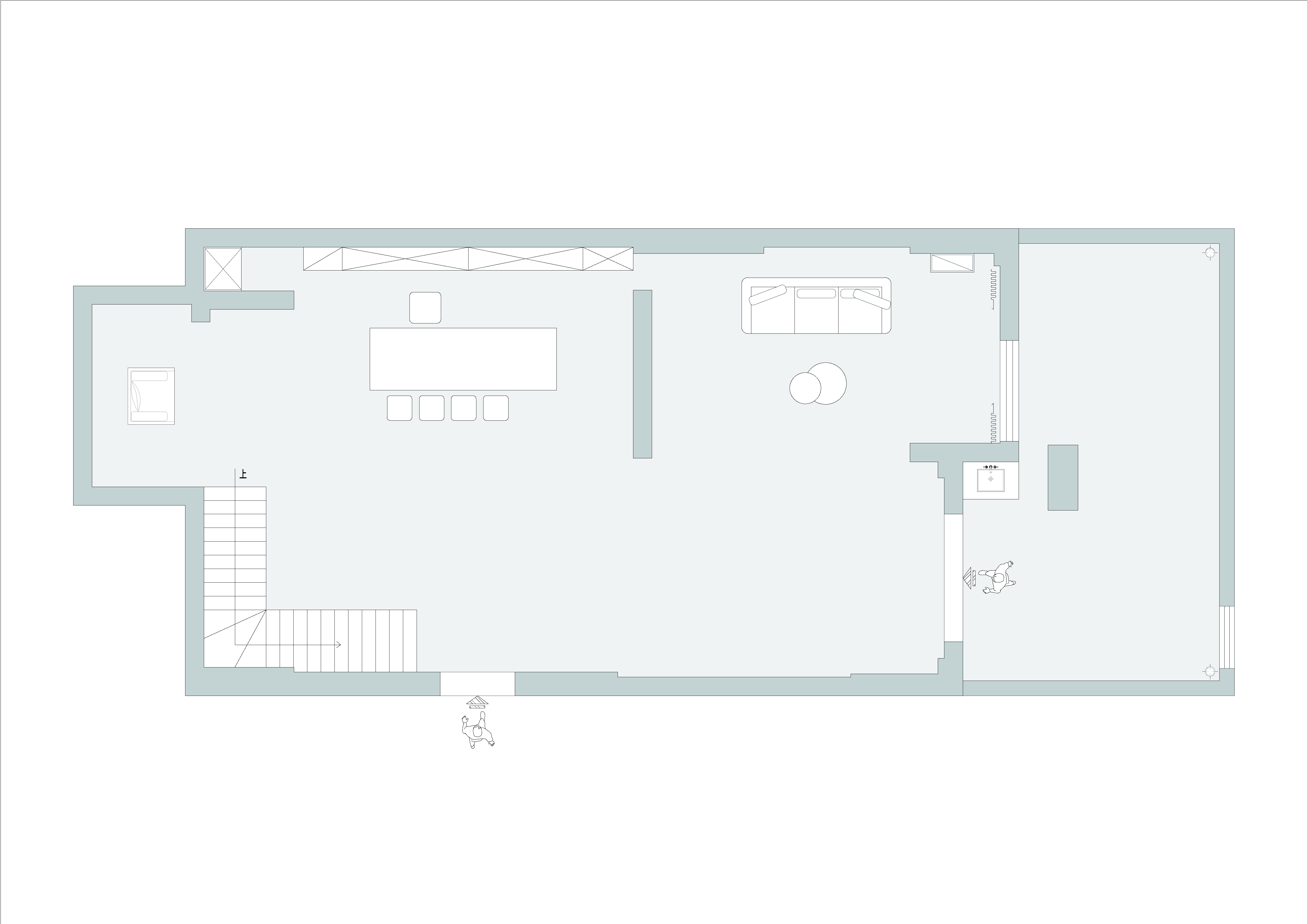 空间布局:相对自由的空间尺度,给了我们更大的创作空间。在功能的排布中,空间也会产生新的可能,动与静、开阔与私密被清晰划分。