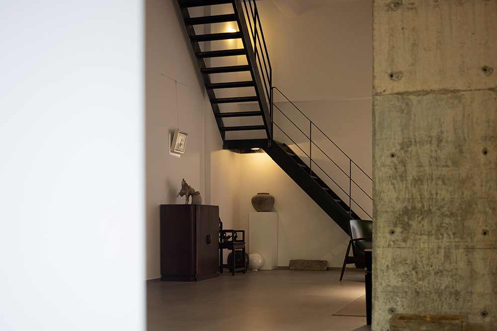 项目定位:业主从事艺术行业,与其进行设计沟通的过程中,确认了空间的设计走向。项目结构为两层:地面一层、地下一层。我们保留了空间结构的独立性,将两层作为相互独立存在的生活场景。通过路径的表达,居住者能够错位相遇。室内所陈列的艺术作品,有业主创作的作品,也有从国内外收集而来的佳作,在每一天的生活中,汲取丰富的内在。