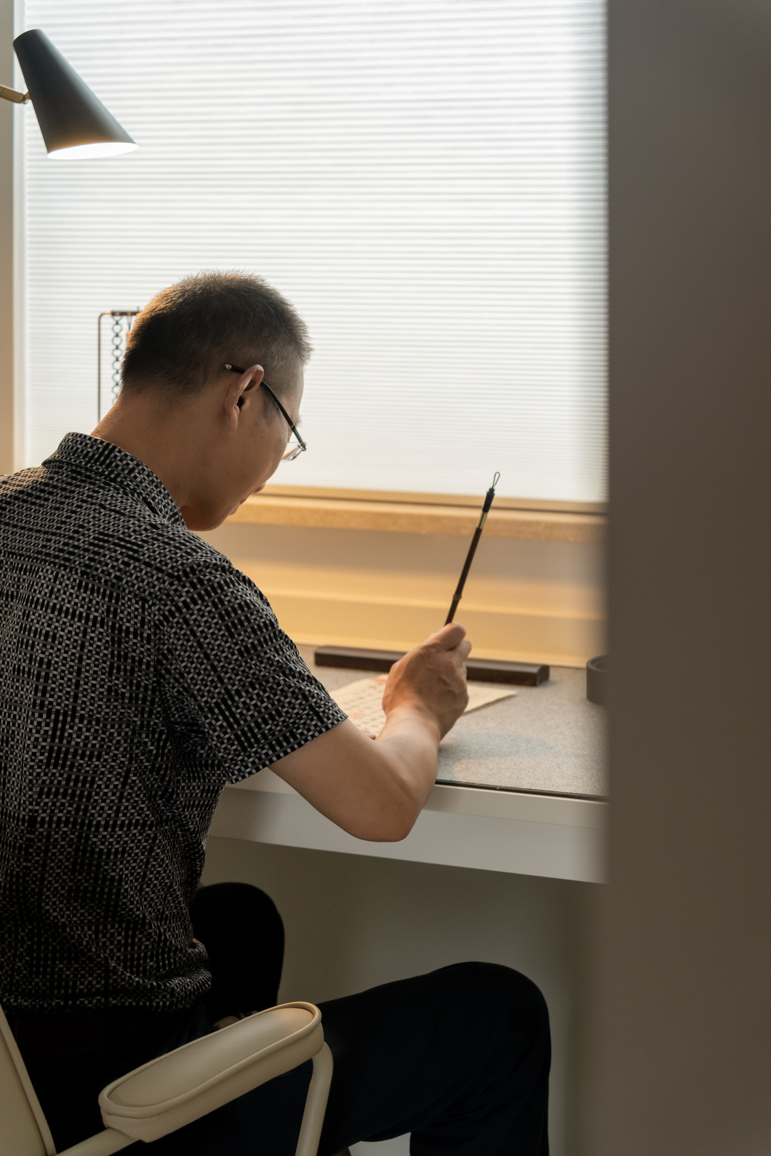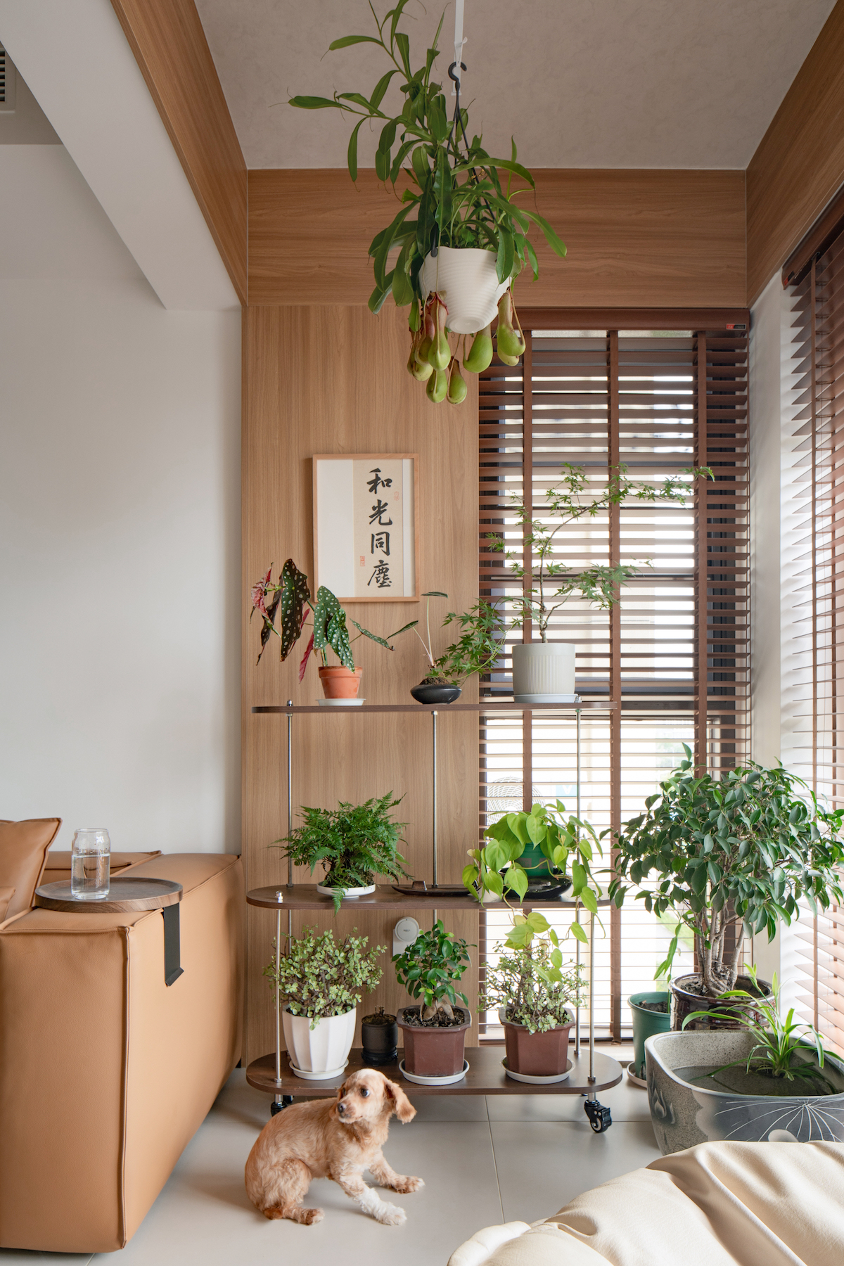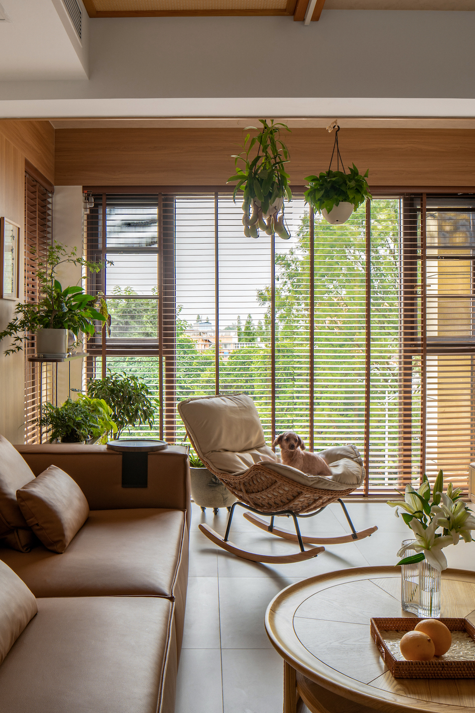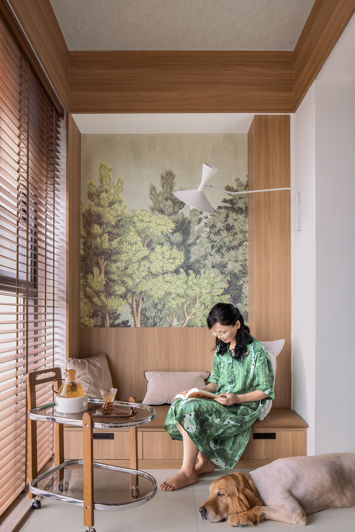 此案位于成都市郫都区 ,屋主夫妇是即将迎来退休的人民教师,男主人日常热爱书法、烹饪,女主人则喜欢读书、写作;两人也都喜欢在家种植绿色植物;此外,家里还有两个毛孩子,一只11岁泰迪“多多”,另一只8岁的金毛“Summer”因此这个住宅的设计需要充分考虑到“适老性”与“宠物共生”的问题。