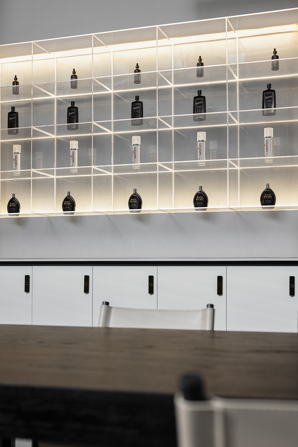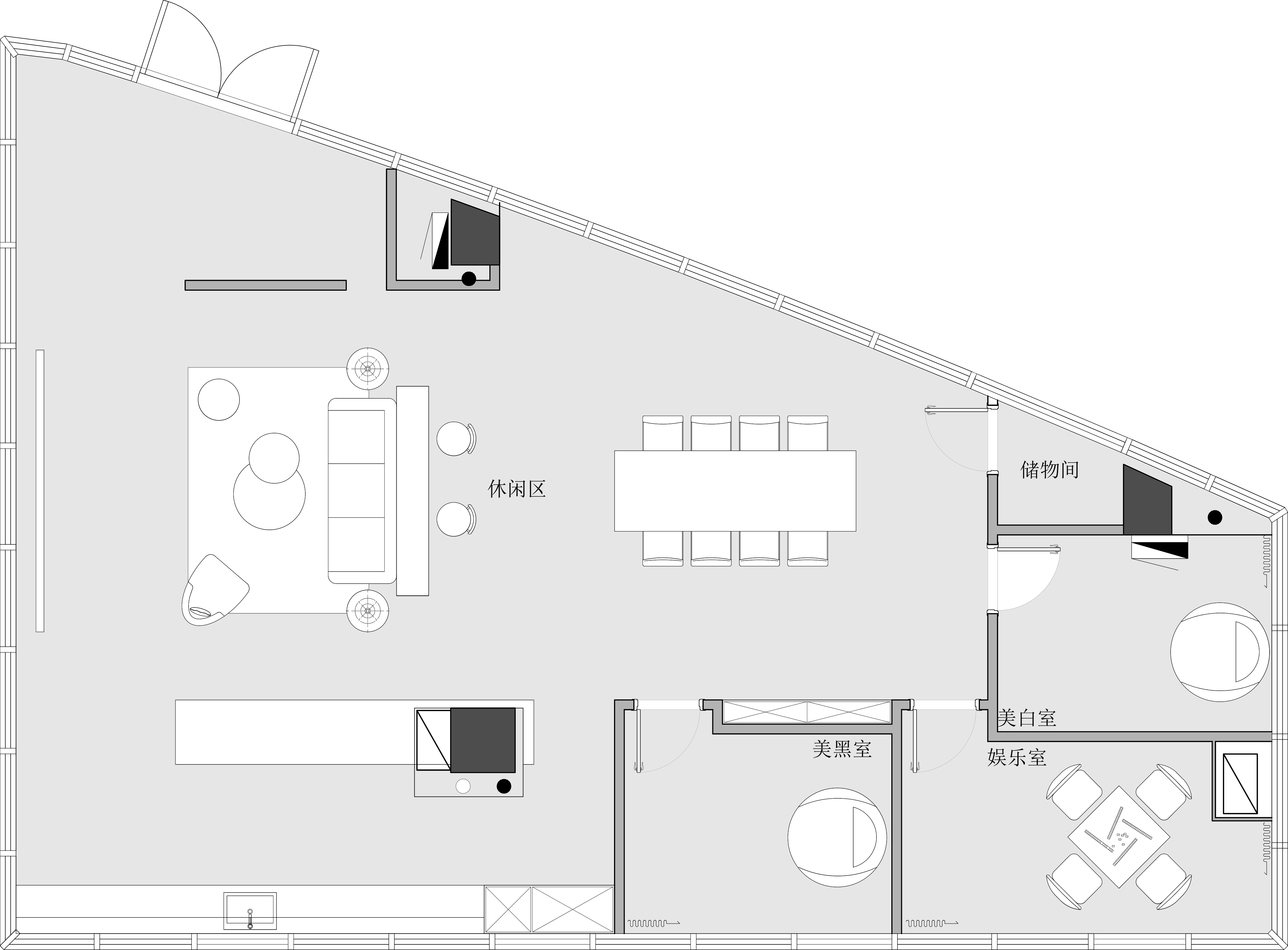 独立于一隅的娱乐区、美黑区及美白区,延续了休闲区的简洁明朗,以沉静的色彩氛围展开空间叙事。柔软与硬朗、自然与工业,各种碰撞中,让感官跳脱出城市生活中,与三两好友享受当下的愉悦放松,或是在科技仪器的体验中,感知身体发肤的变化。 -