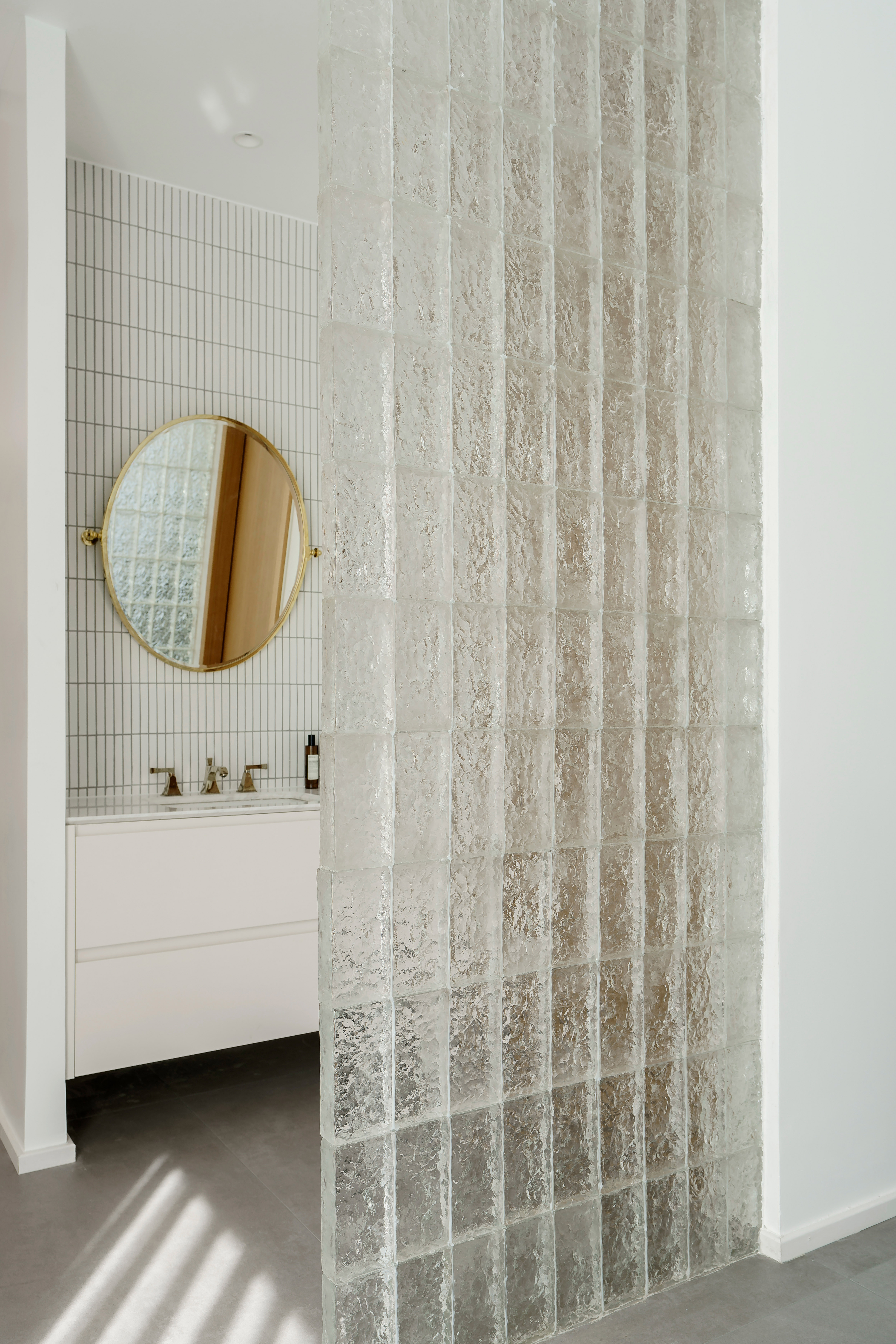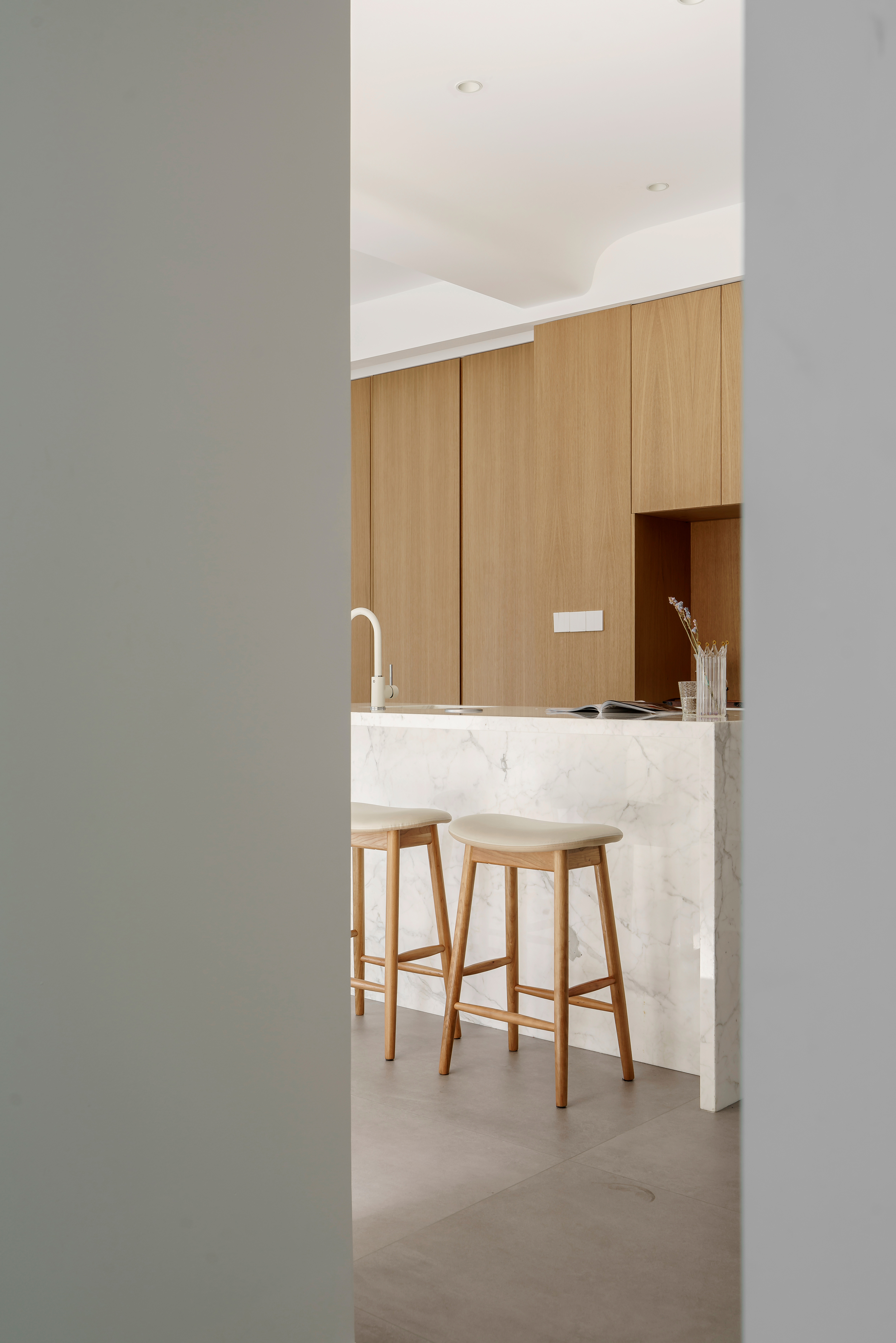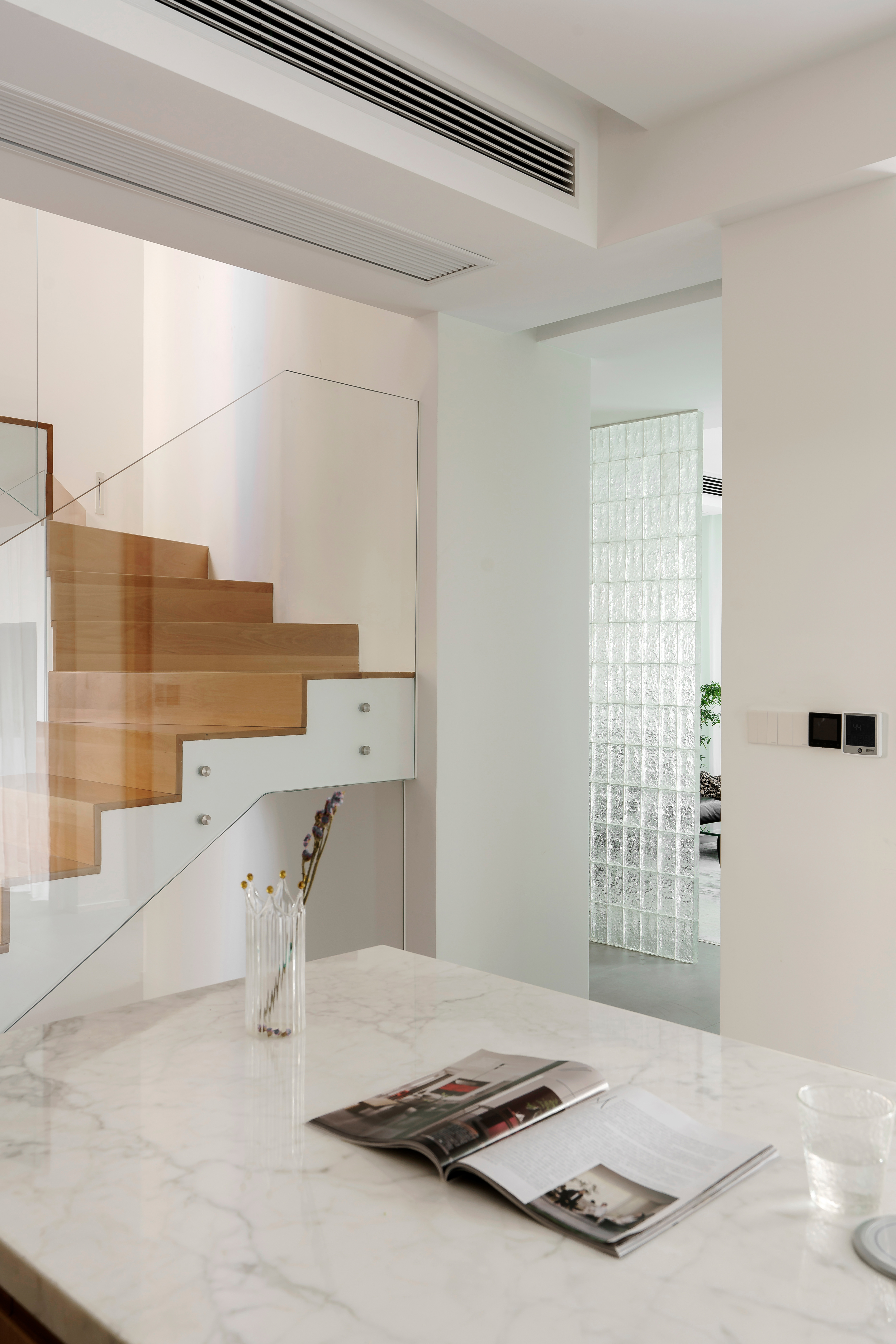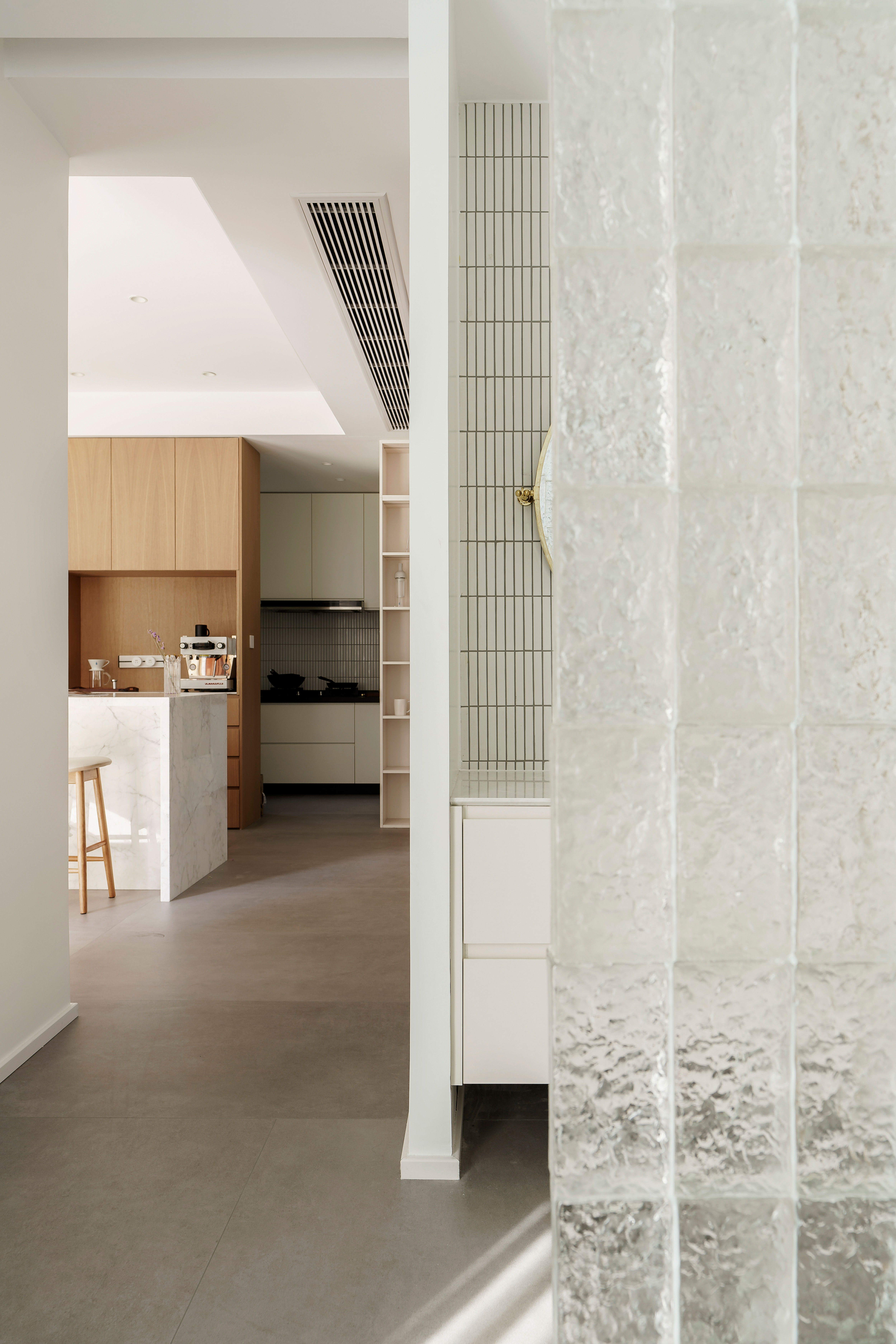 大量水晶砖刻意阻隔原本的空间,让室内有曲径通幽的意趣,原木阶梯的设计将空间分割,由于原木元素大量的出现,空间在错落有致中仍保持和谐统一,蕴含着无穷的意蕴,整体呈现出钟灵毓秀的精致与和谐。