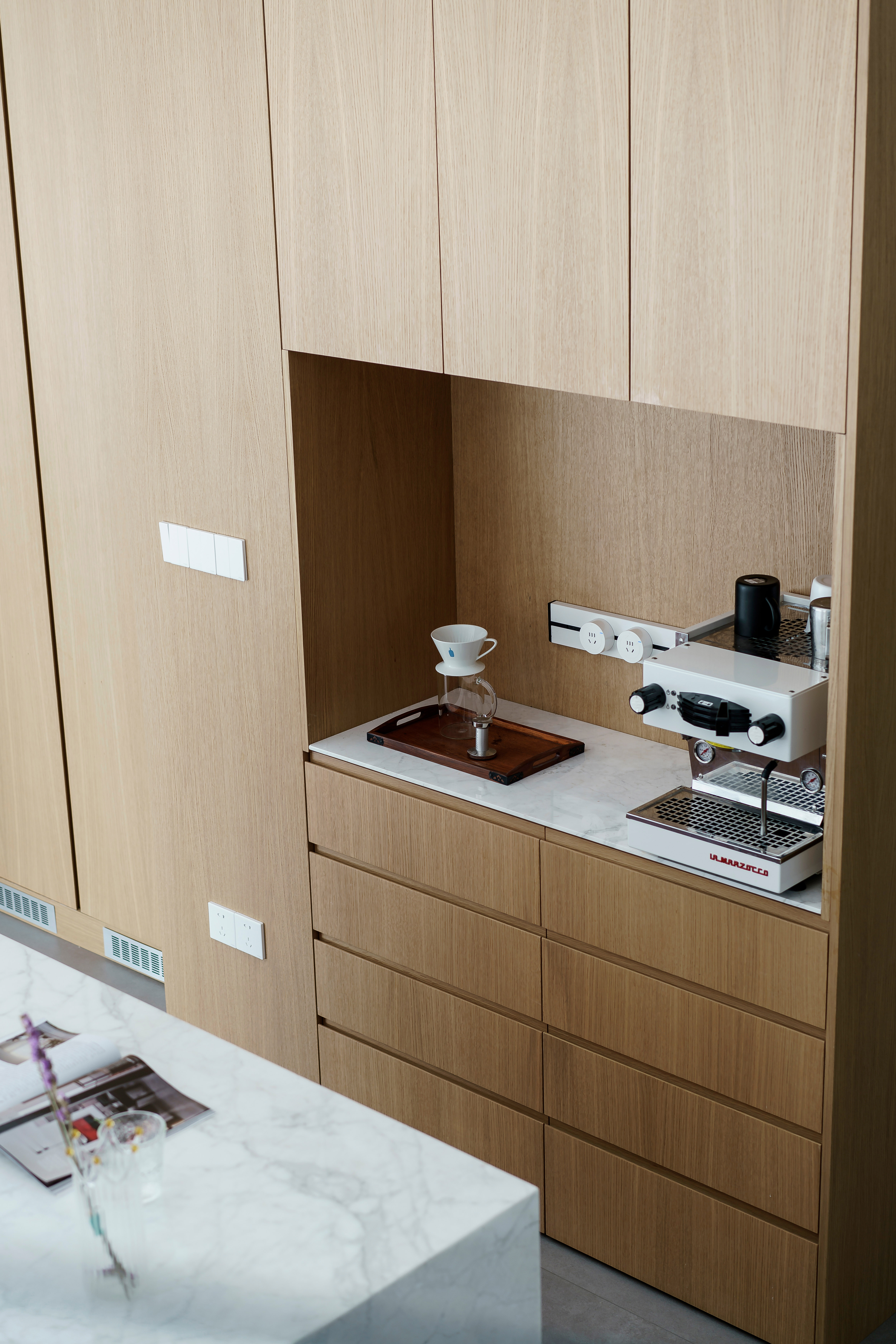 设计选材:大面积使用艺术漆饰面,整个空间轻快放松。