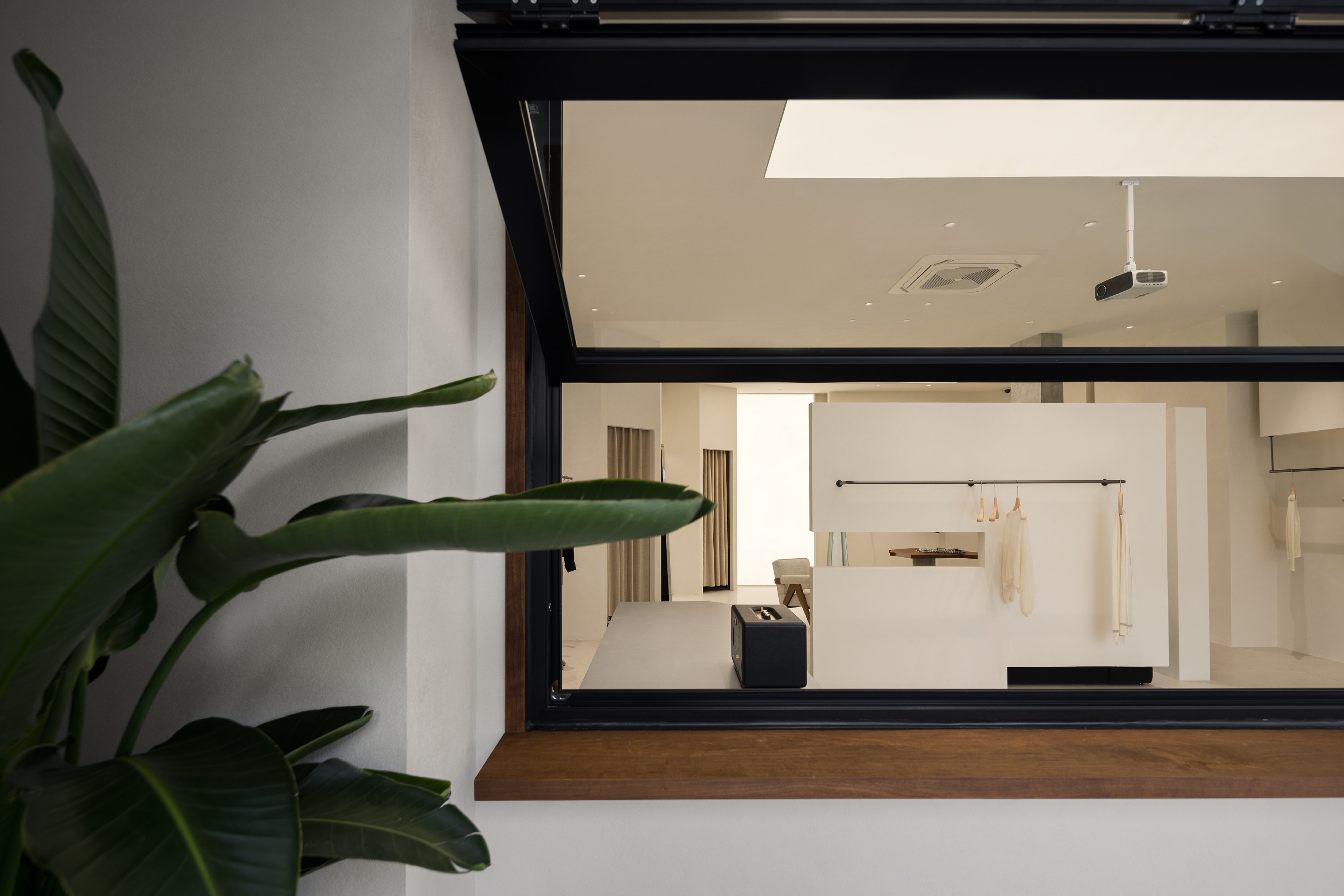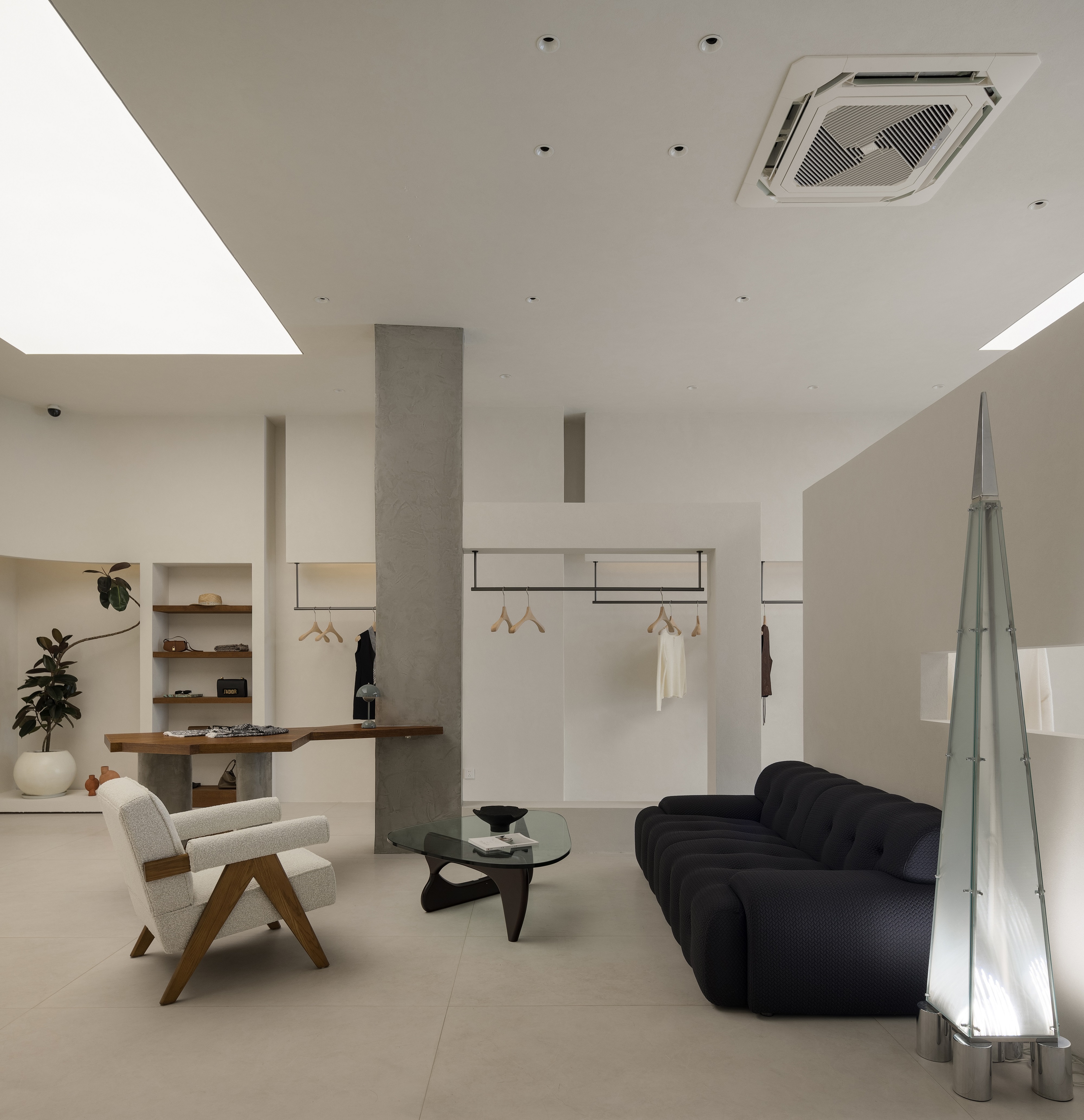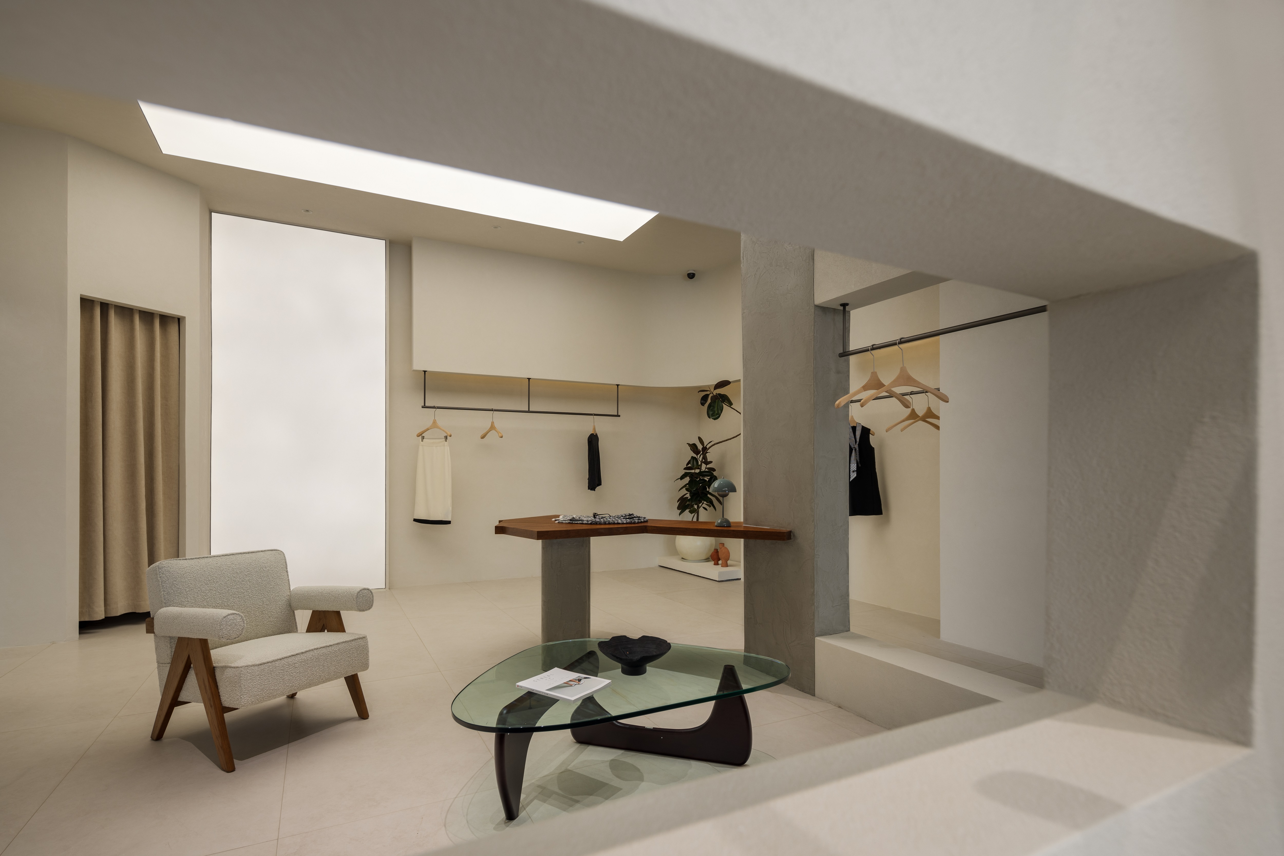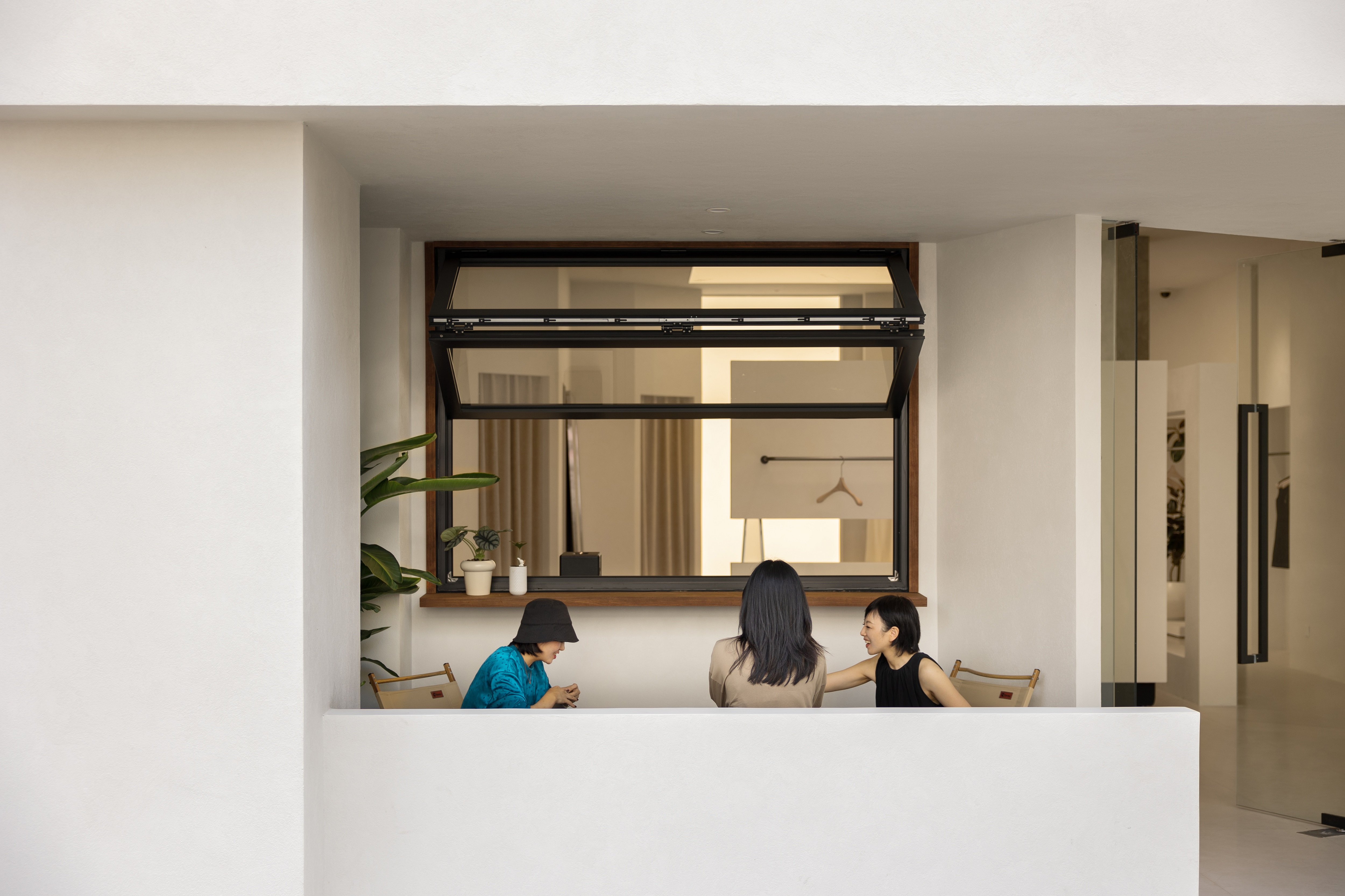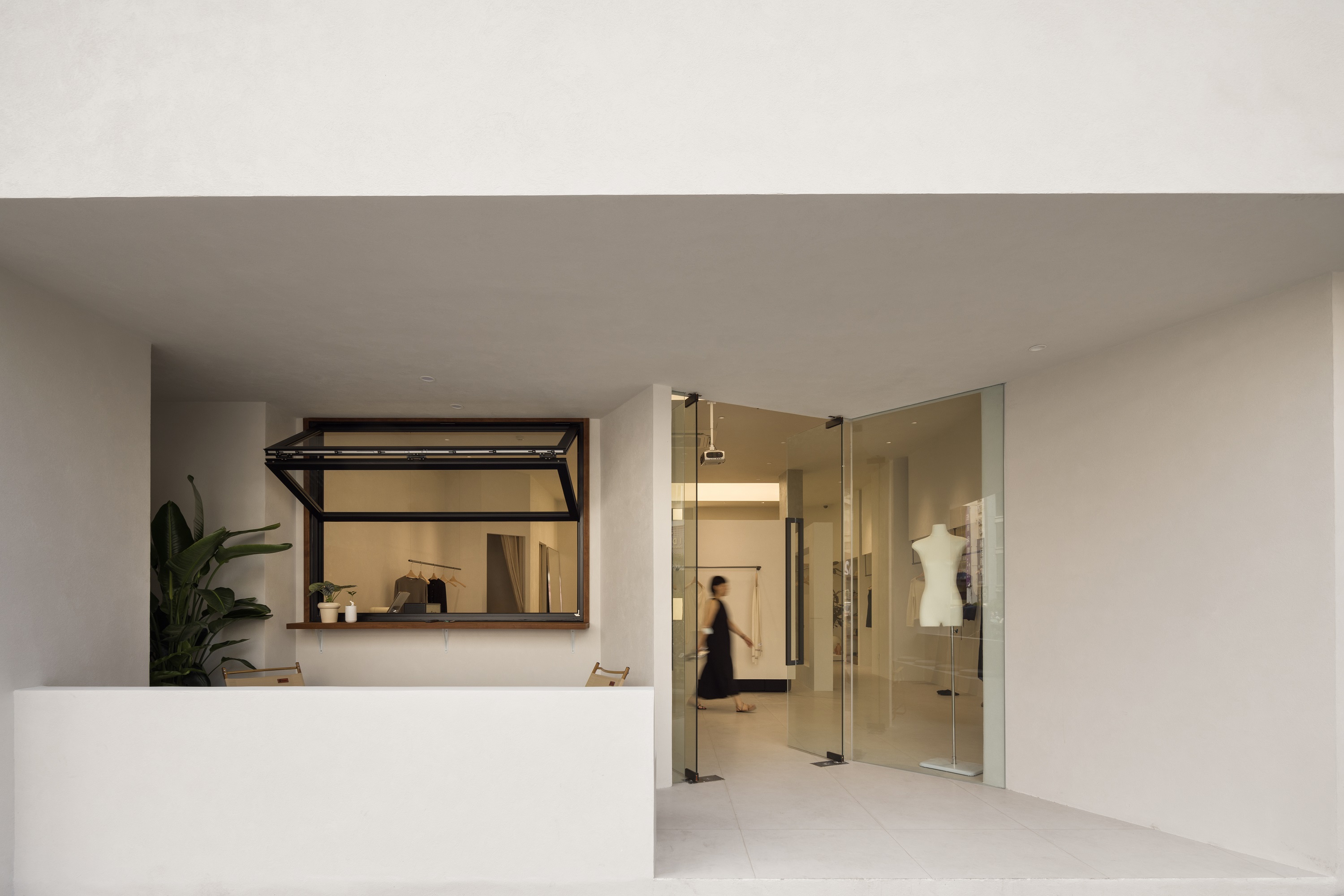 用户体验:本案最大的亮点是打破了传统服装门店展示形式,“牺牲”一部分室内面积给室外,打造休闲区。这样的好处有两点:一、增加商业产品模糊感,让消费者更加轻松购物,降低消费者的消费界线;二、把空间留给“路人”,路人累了也可以随时停下脚步小憩,想象一下,悠闲的午后,店主透过窗户递来亲手调制的咖啡,三两好友闲坐于此,甚是惬意。这种形式使得该店可以呈现更多的包容性,开放性,给未来多业态的发展提供了空间,它不仅仅只是一家单纯的女装店。