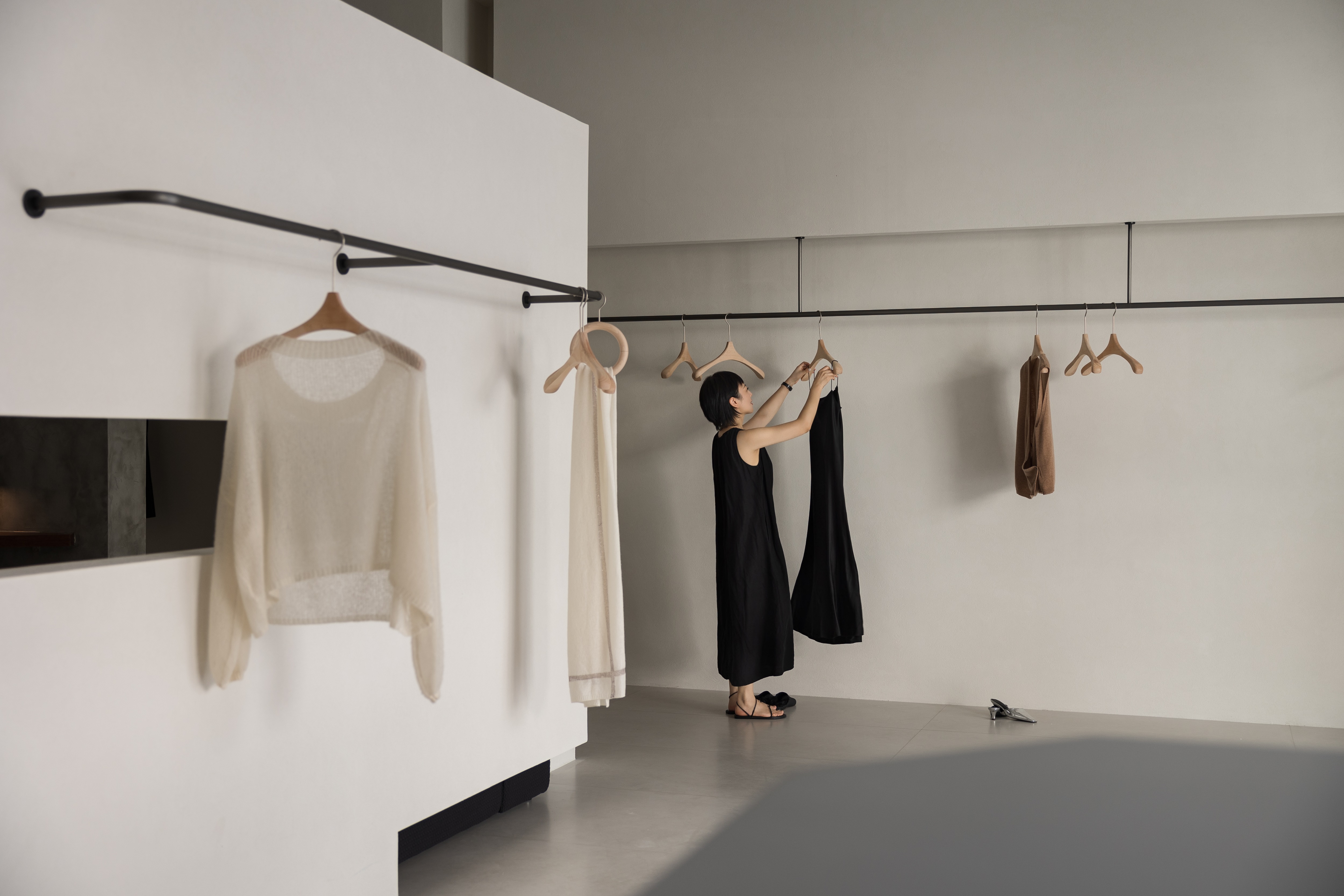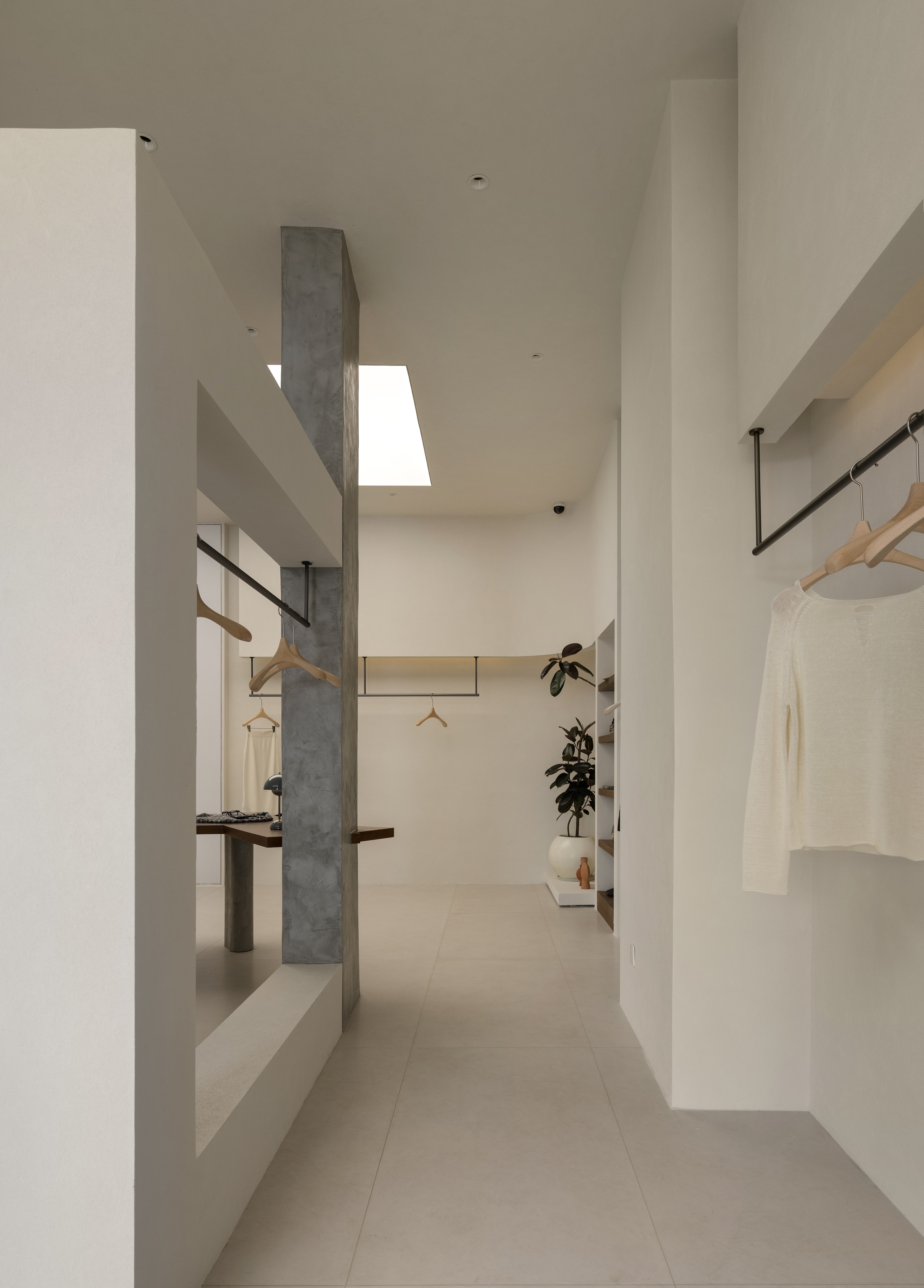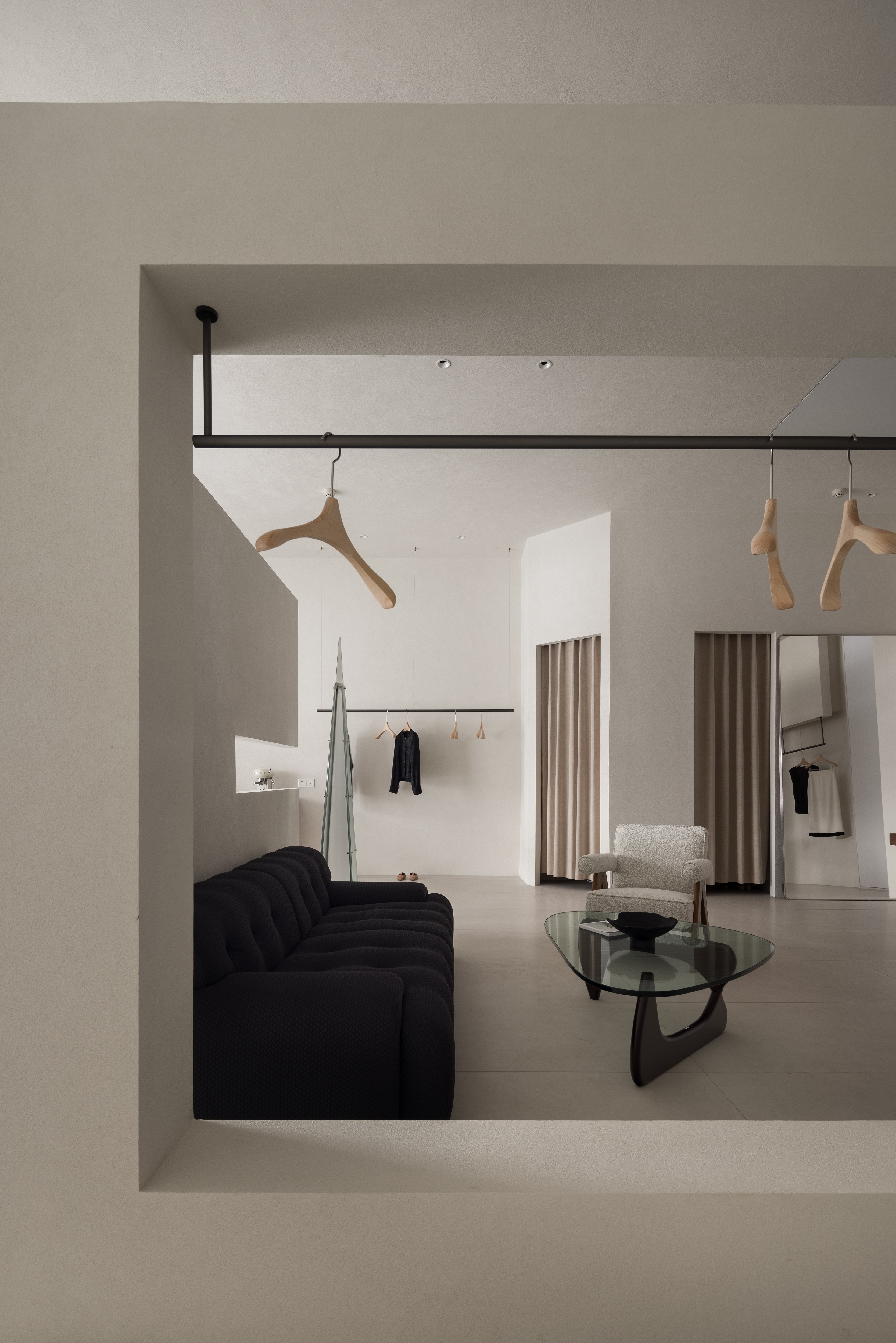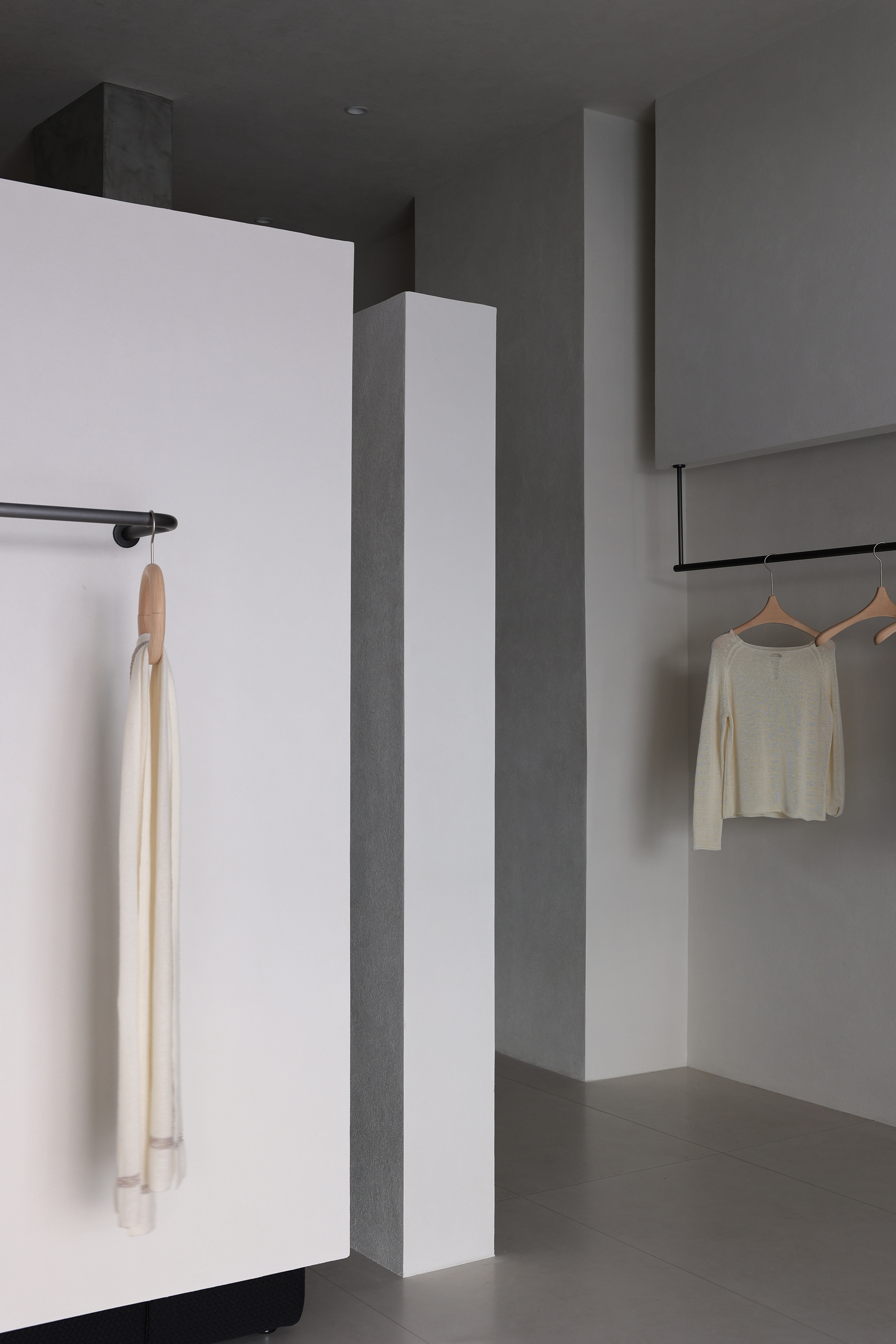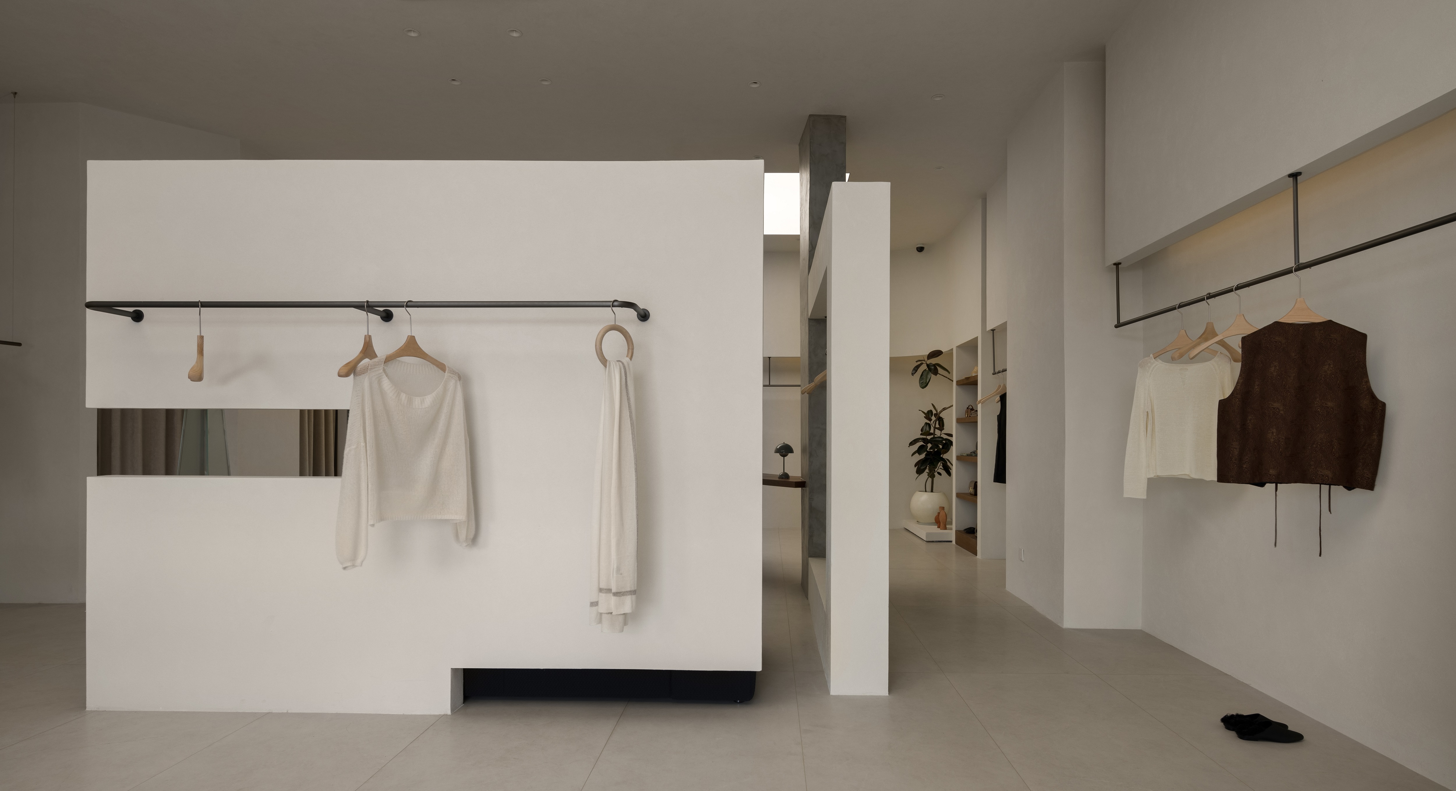 项目定位:小白的店是一家以女装为主的专卖店,以素雅和简洁的风格来塑造空间。其服装产品透露出中性而富有女人独有的气质。该项目合理的动线和巧妙的结构塑造,在这个商业空间中得到了很好的体现,本案的最大亮点是打破传统服装门店展示形式,把空间留给“路人”。