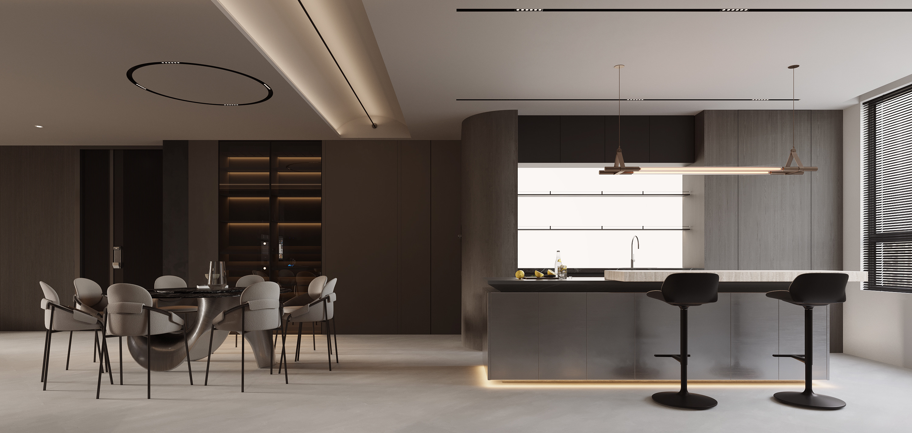 空间意境:在环境风格上我们融入了一些咖色调,做出了当下年轻人喜欢的意式极简的感觉