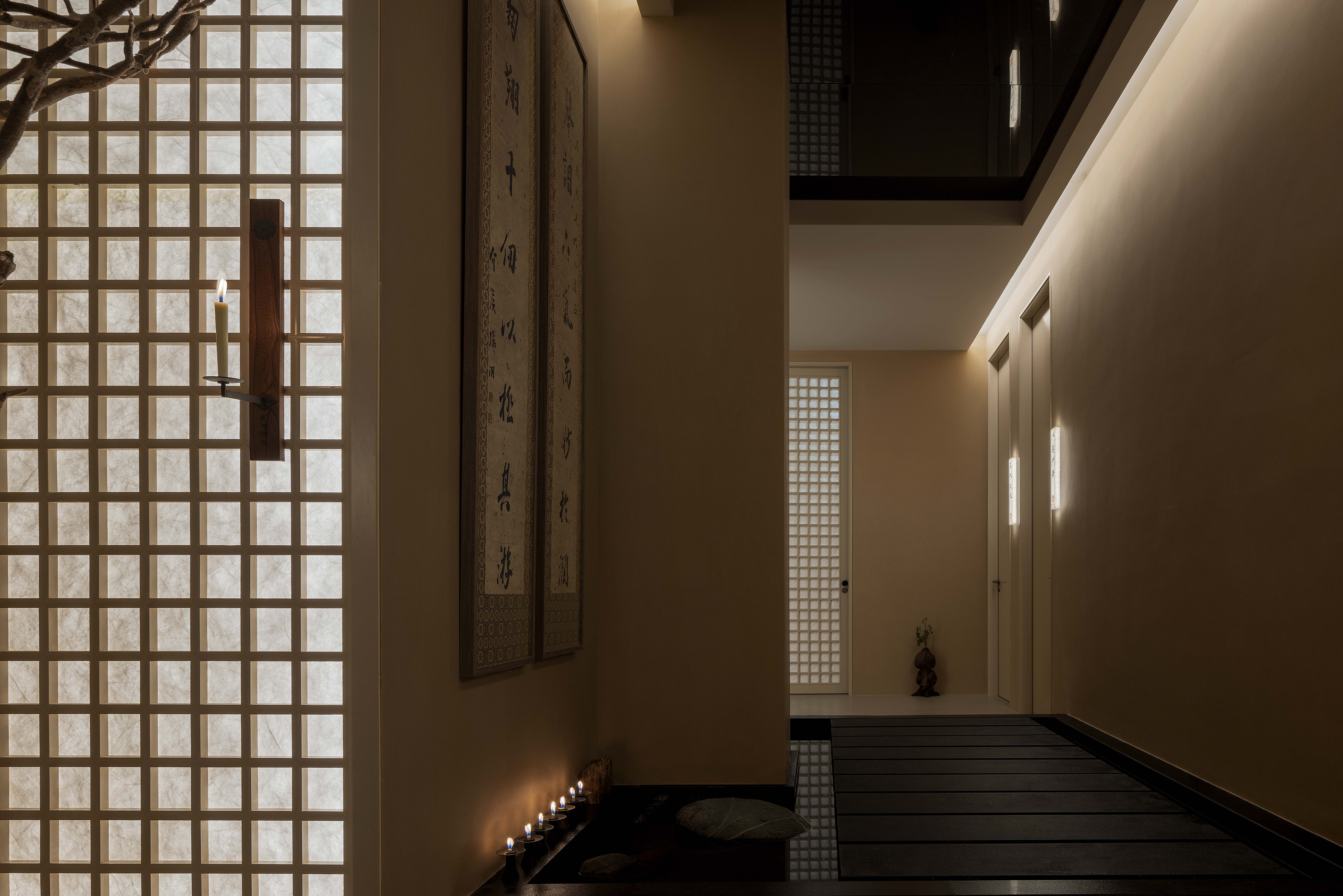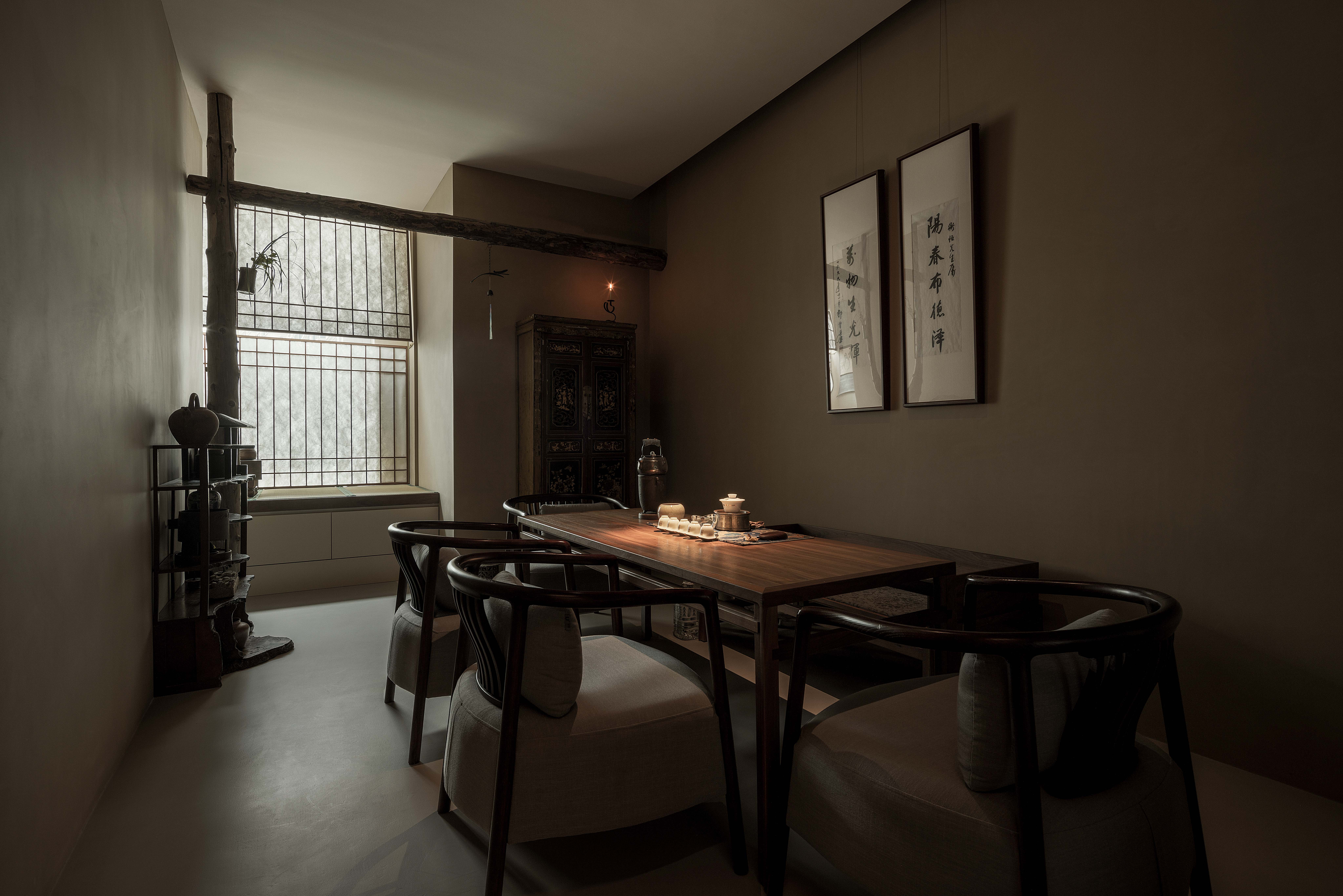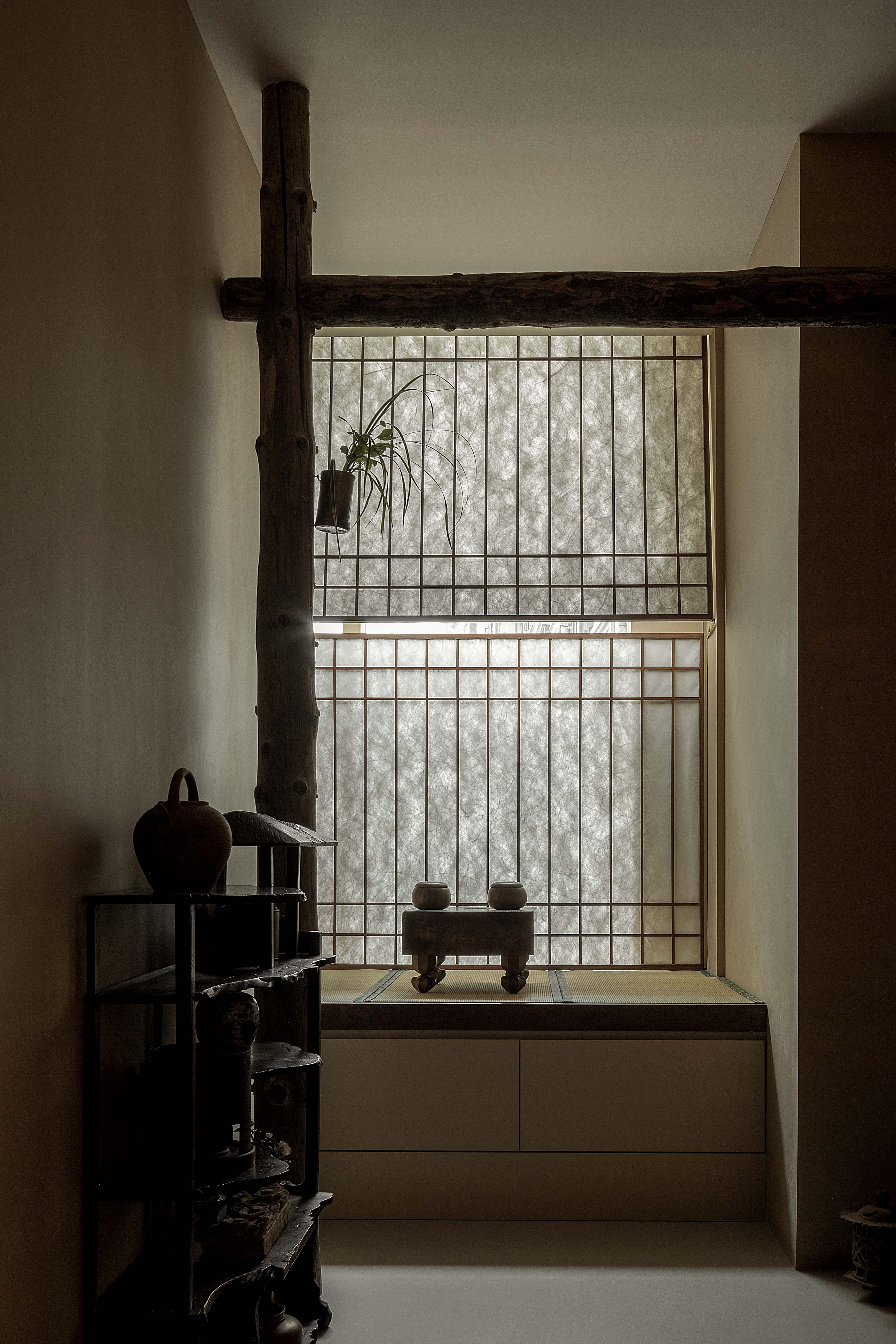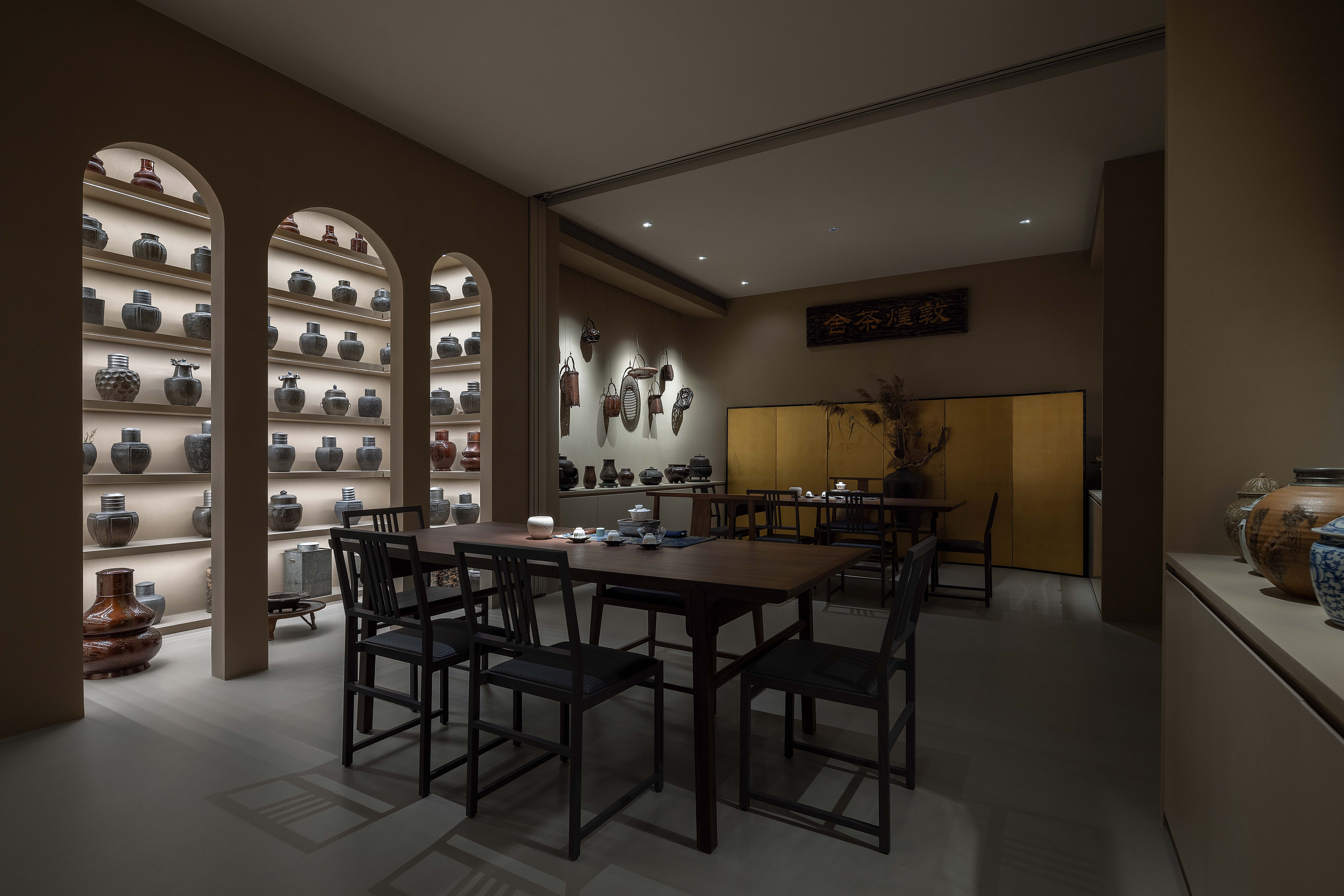 器物是有温度的,随着岁月的流逝,每个老物件都有自己的独有的温度与时间的痕迹,创造一个合适的空间,把甲方的收藏器物放置其中,展现出器物之美,当看到这些老物件的时候,对于设计师而言,设计师打造空间的初心是应该退设计化,尽可能的去弱化空间本身存在的结构落差,而是让整个空间更连贯、自然。让器物在合适的空间中体现本身的美感。器、物与环境的相融合,营造整体的寂静美感。在整体的色调寻找能代表西北的在地色彩--大地色,也是莫高窟里的壁画里的颜色,整个场域的色调是个暖色的基调,让来到这个空间的客人能感受到场域的温度,加上各个老器物的年代感所散发出来的温度,二者