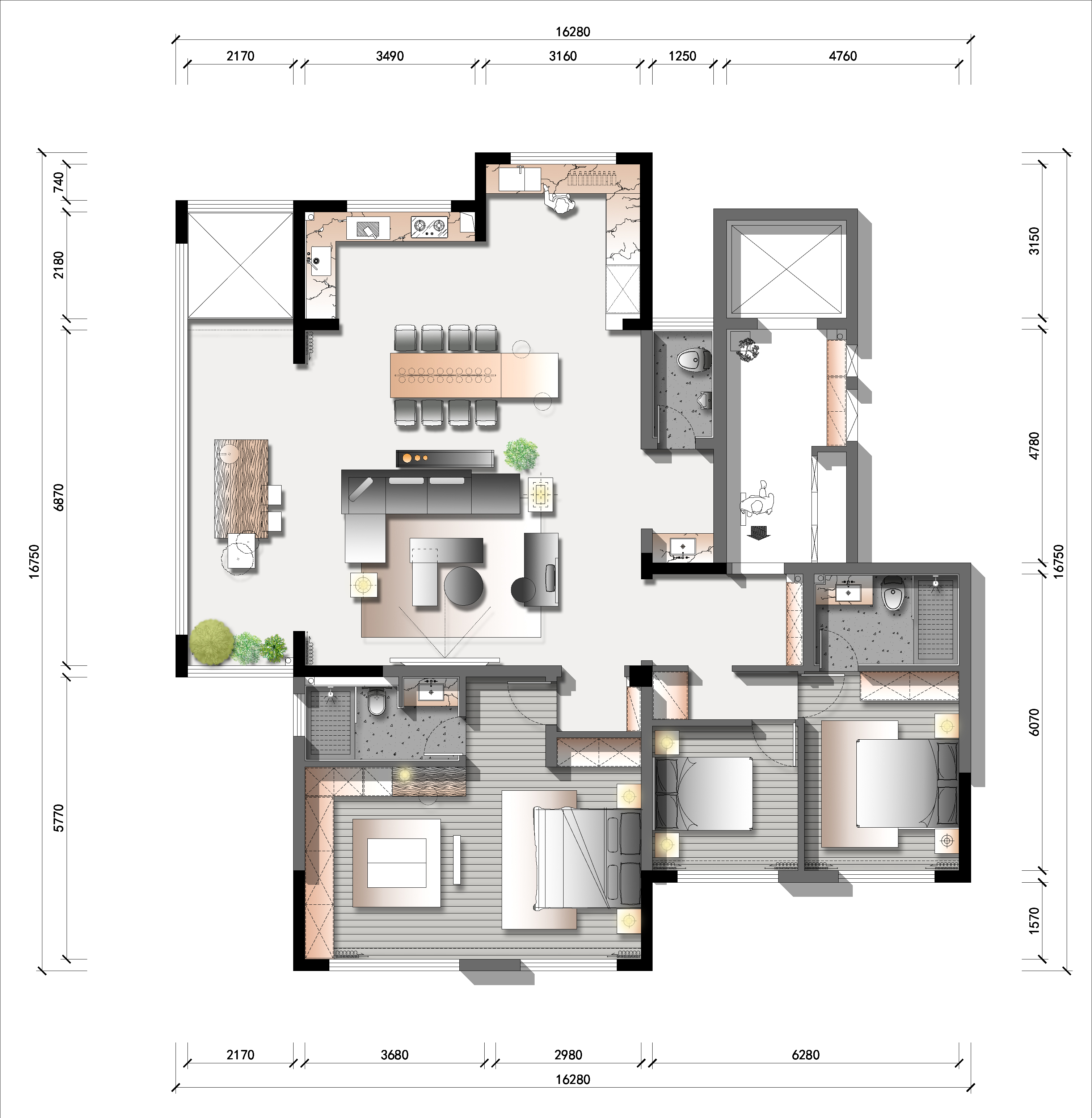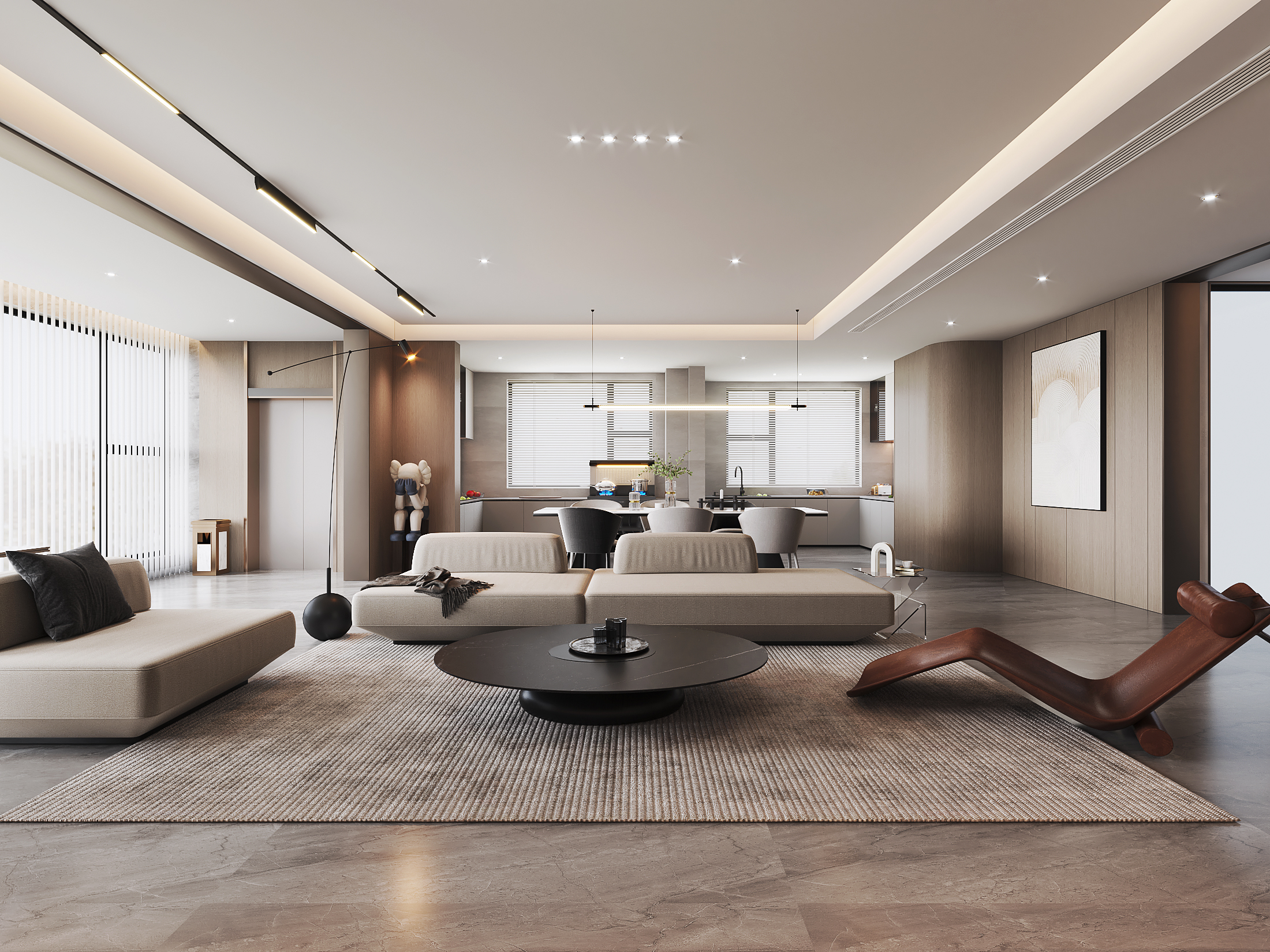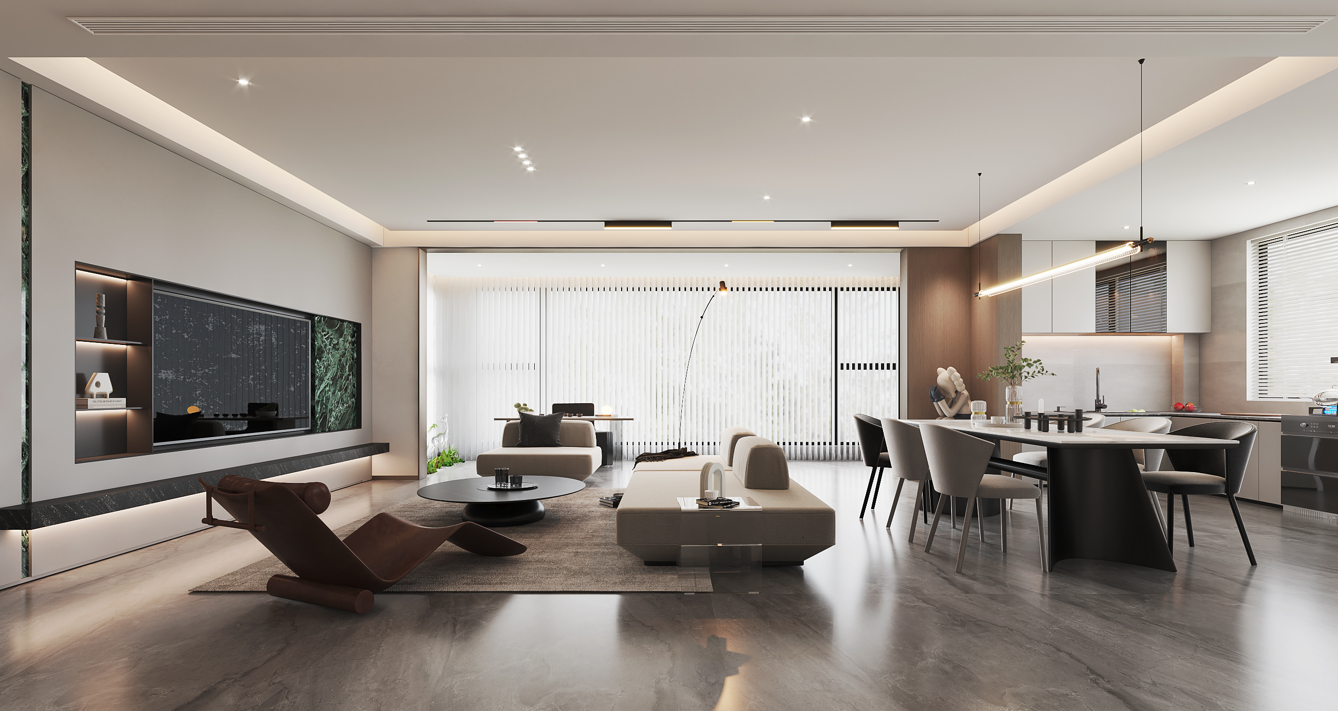 开放式设计打破了传统空间的界限,通过开放式的布局,使空间更加通透、流畅。利用玻璃、镜面和透明材料,创造视觉上的连续感,使空间显得更加宽敞和明亮。将客厅与餐厅、书房与工作间、厨房与餐厅等空间进行整合,提高空间的利用率,同时也增强了空间的互动性和趣味性。将传统的单一功能空间转变为多功能空间,以满足现代生活的多样化需求。