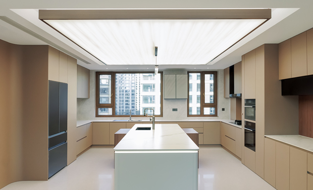 去掉传统客厅布局 增大视觉空间跨度 使客厅与餐厅一体化