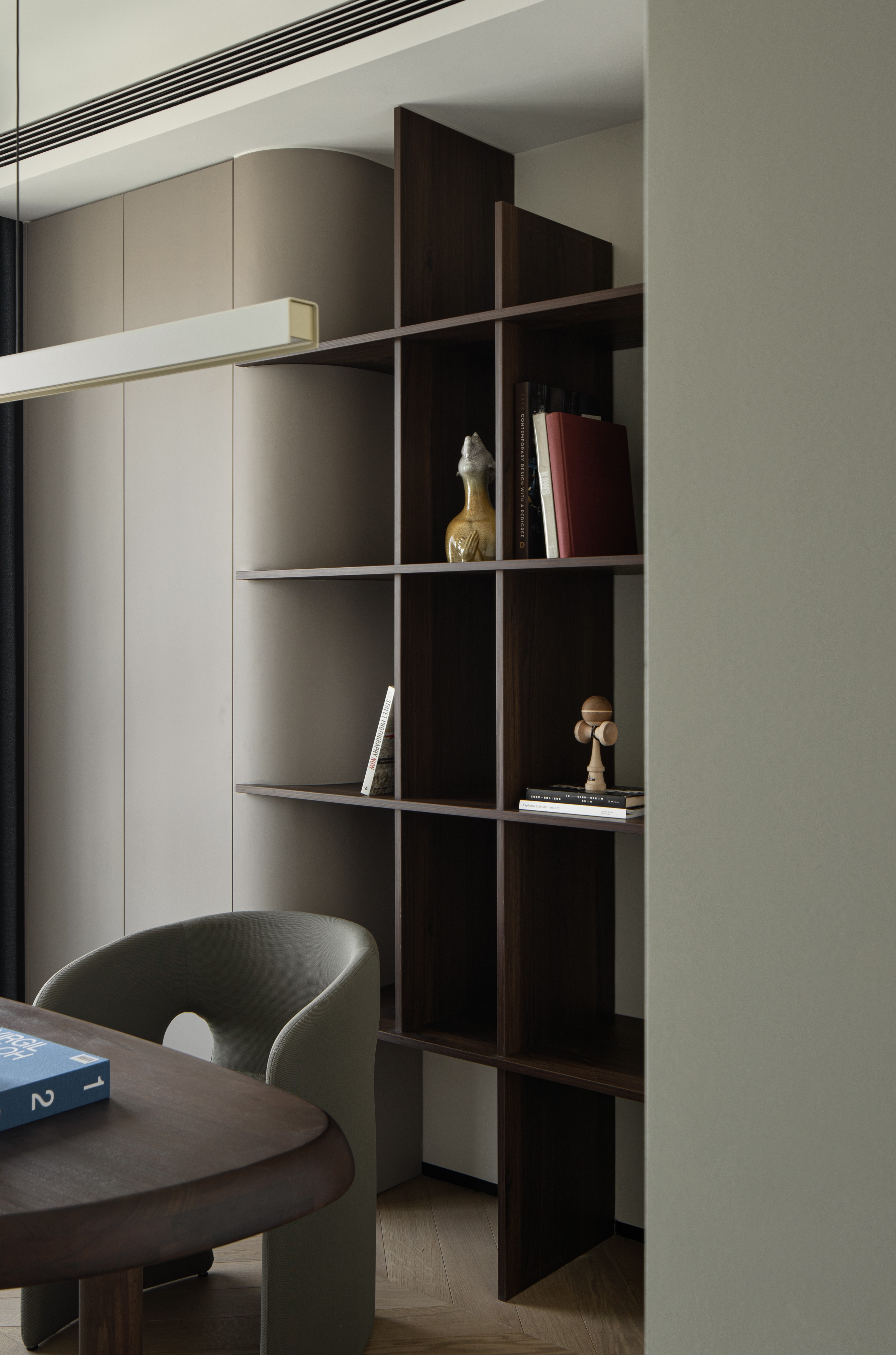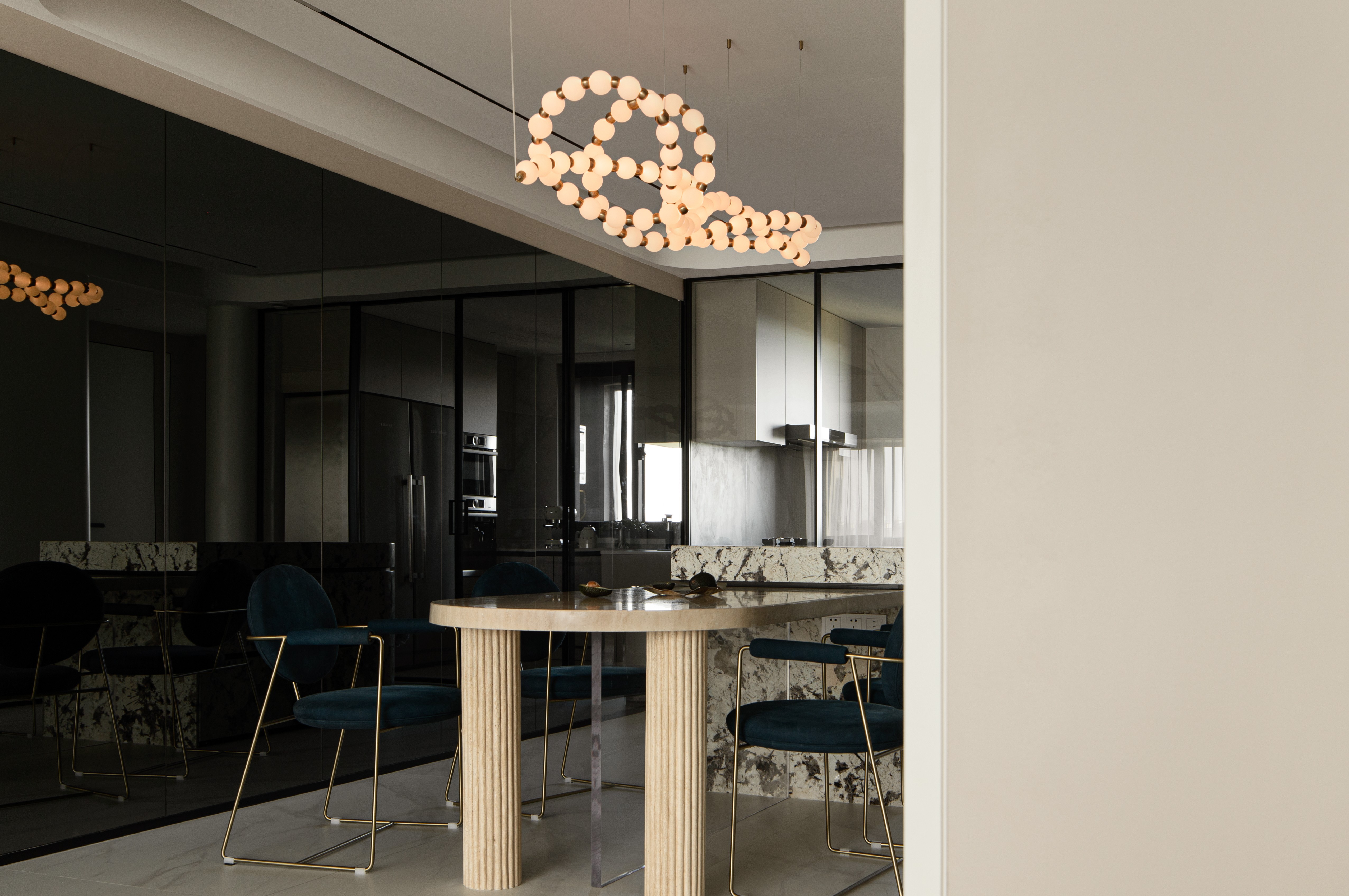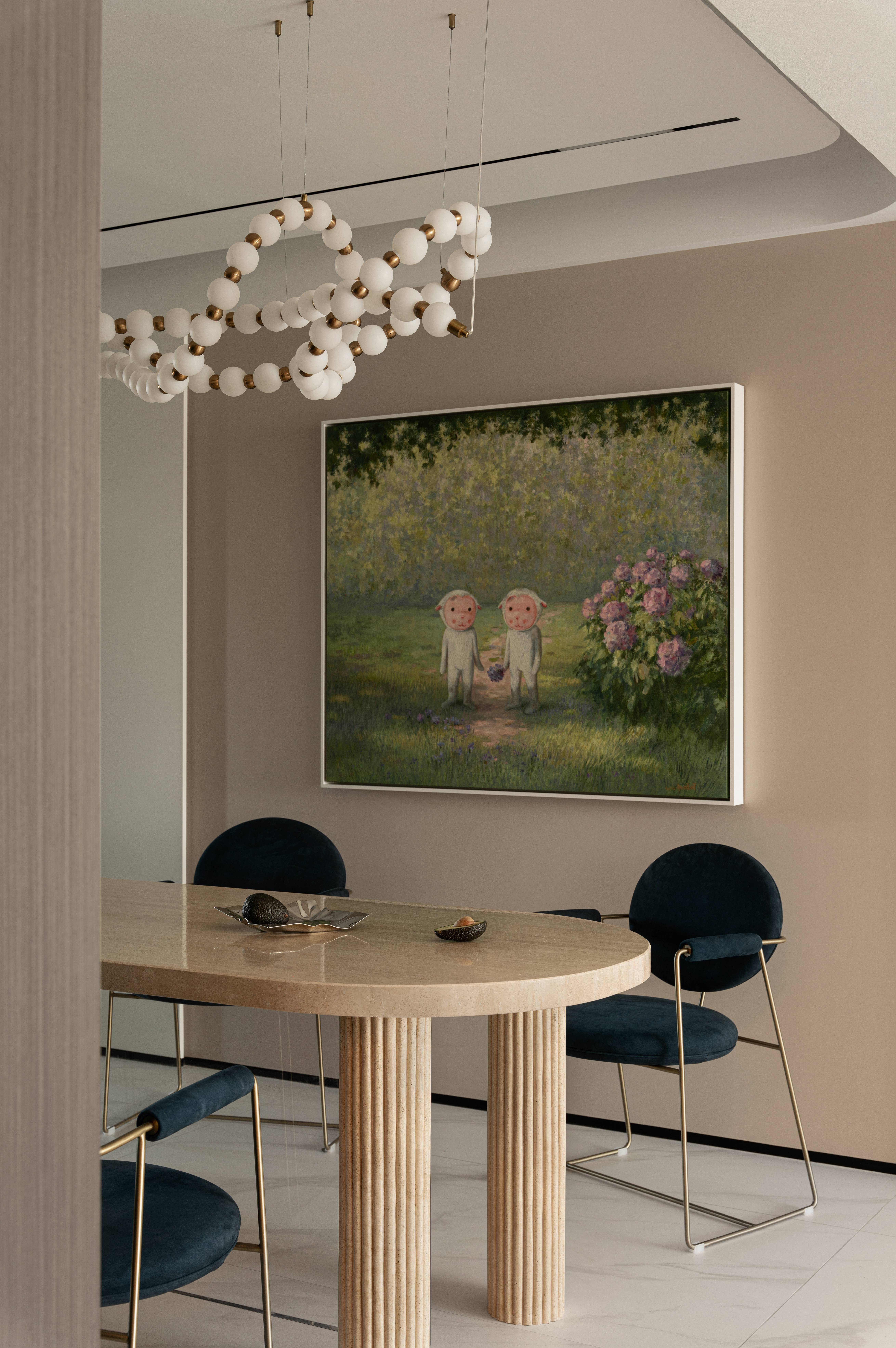 空间布局:在空间原有四叶草的规整布局基础上,设计师以自由松弛的线条搭配多样的材质为空间赋予法式温柔浪漫的的趣味。重新梳理着人与物,人与光影,人与空间,人与时间的美好关系。