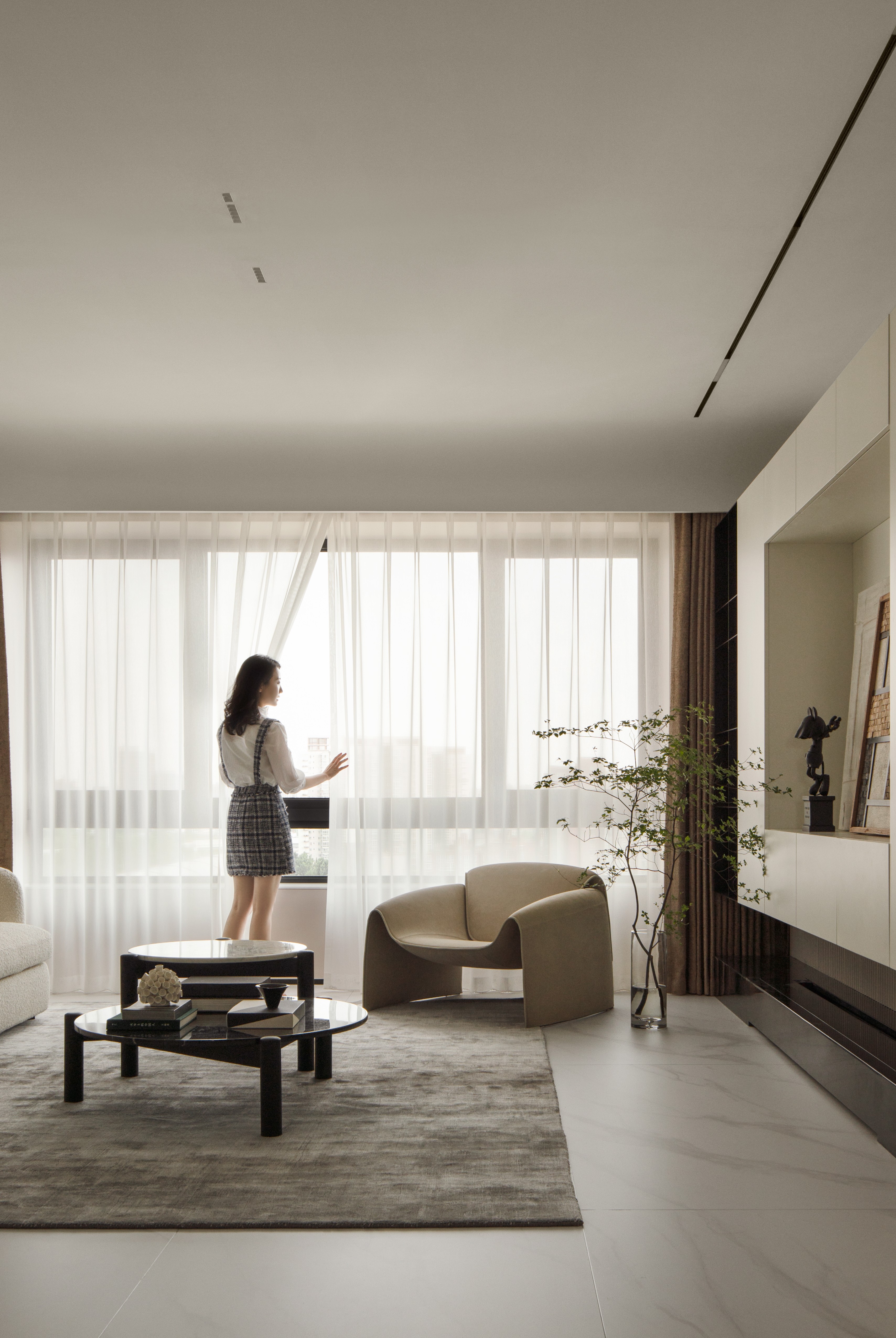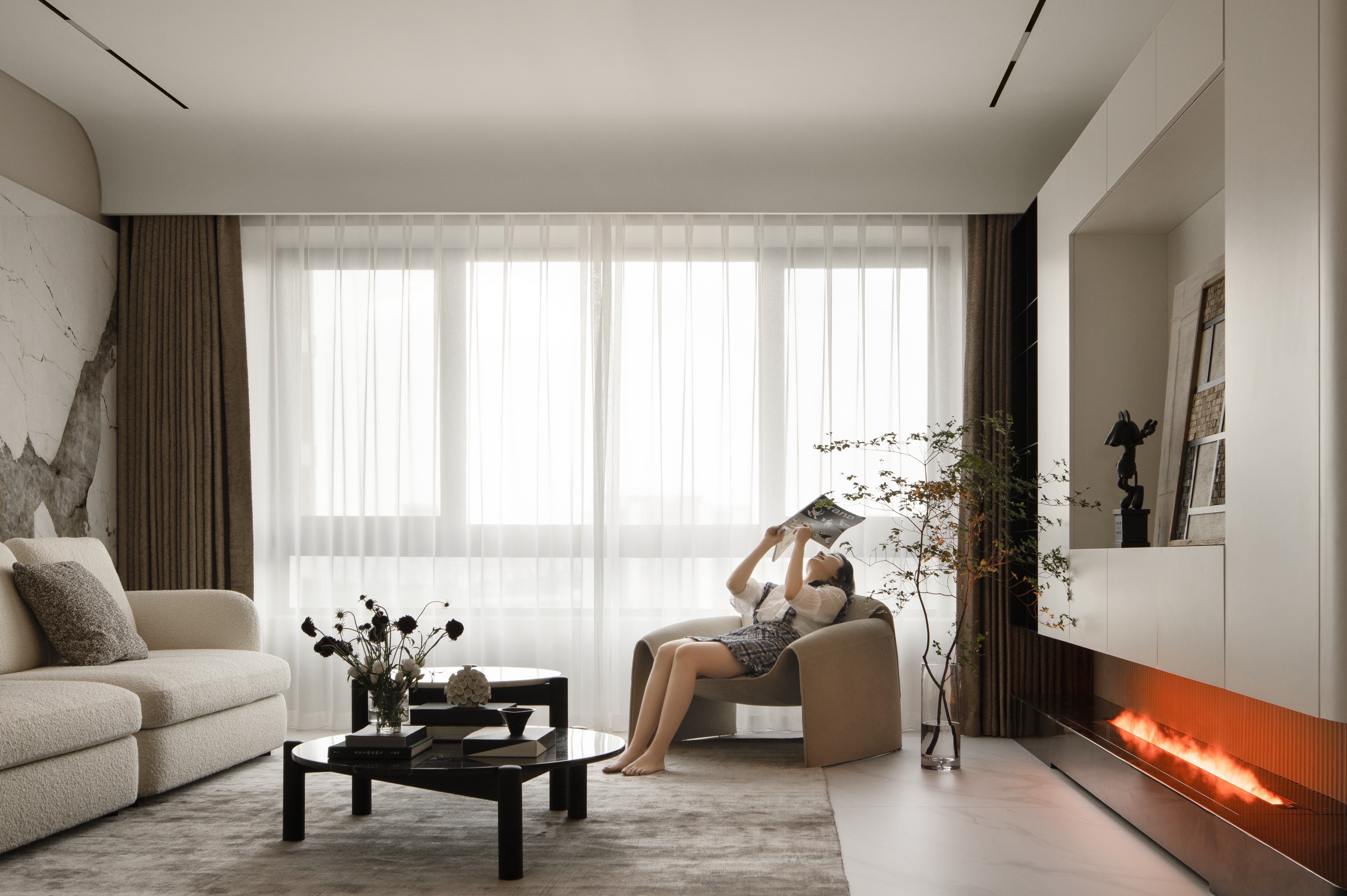 项目定位:纯粹,空灵,光明,自然,现代,简洁的心灵归属之地。诧寂风作为近年来美学中最具影响力的理念之一,延伸至设计中的表达大致可以理解为,经得住时光考验的本质之美。结合现代的,自然的元素,着重表达空间的生命力与自然的疗愈功能,浸润于阳光之下,被包裹在匆匆绿意之中,空灵,纯粹,充满光明,仿佛超凡脱俗的温柔乡。细细品味, 你会感受到生活的温度和品质。结合现代法式的浪漫慵懒,整个空间沐浴在浑然一体的的自然柔美之中,淳朴而细腻,简洁而精致。