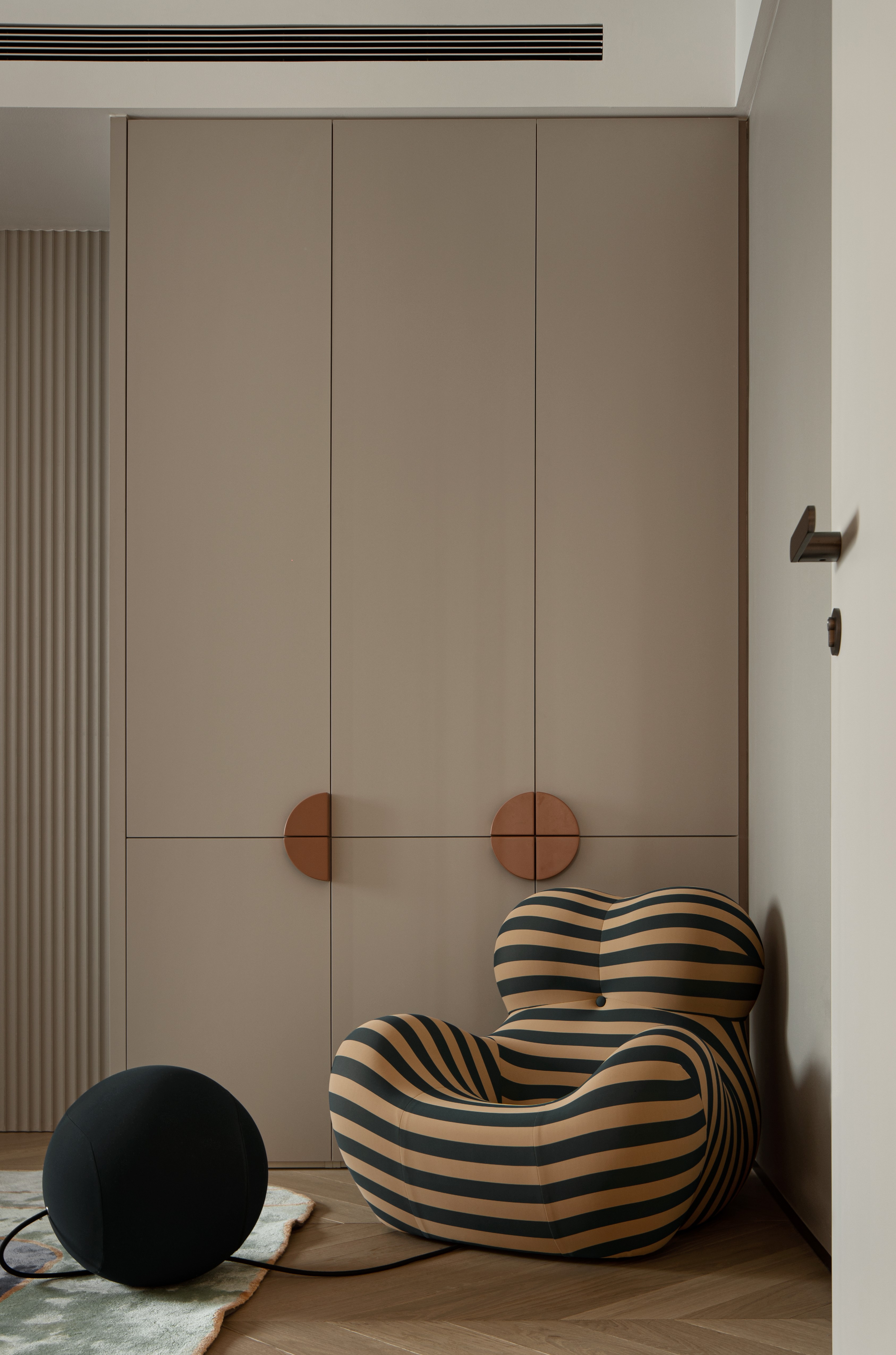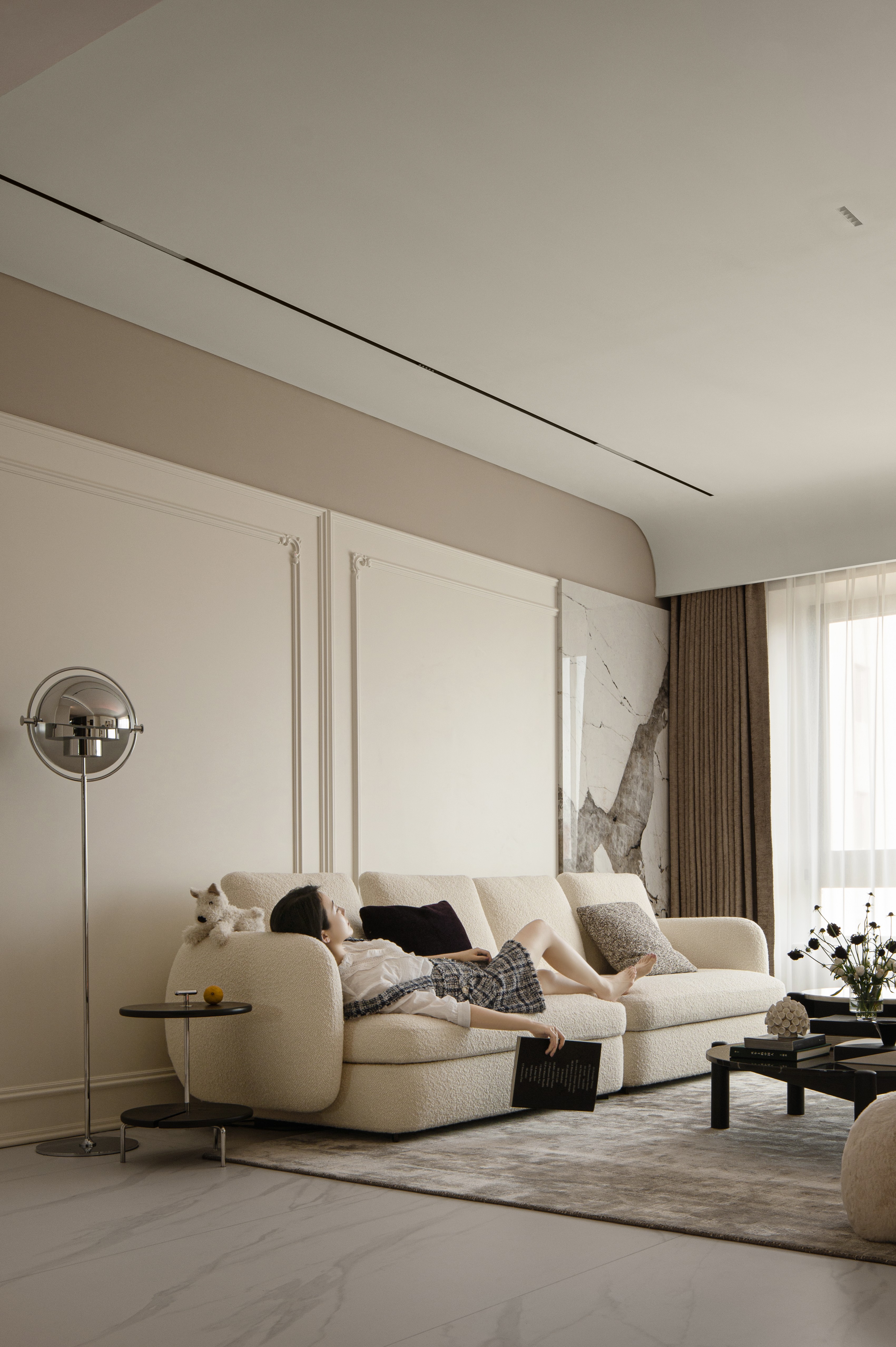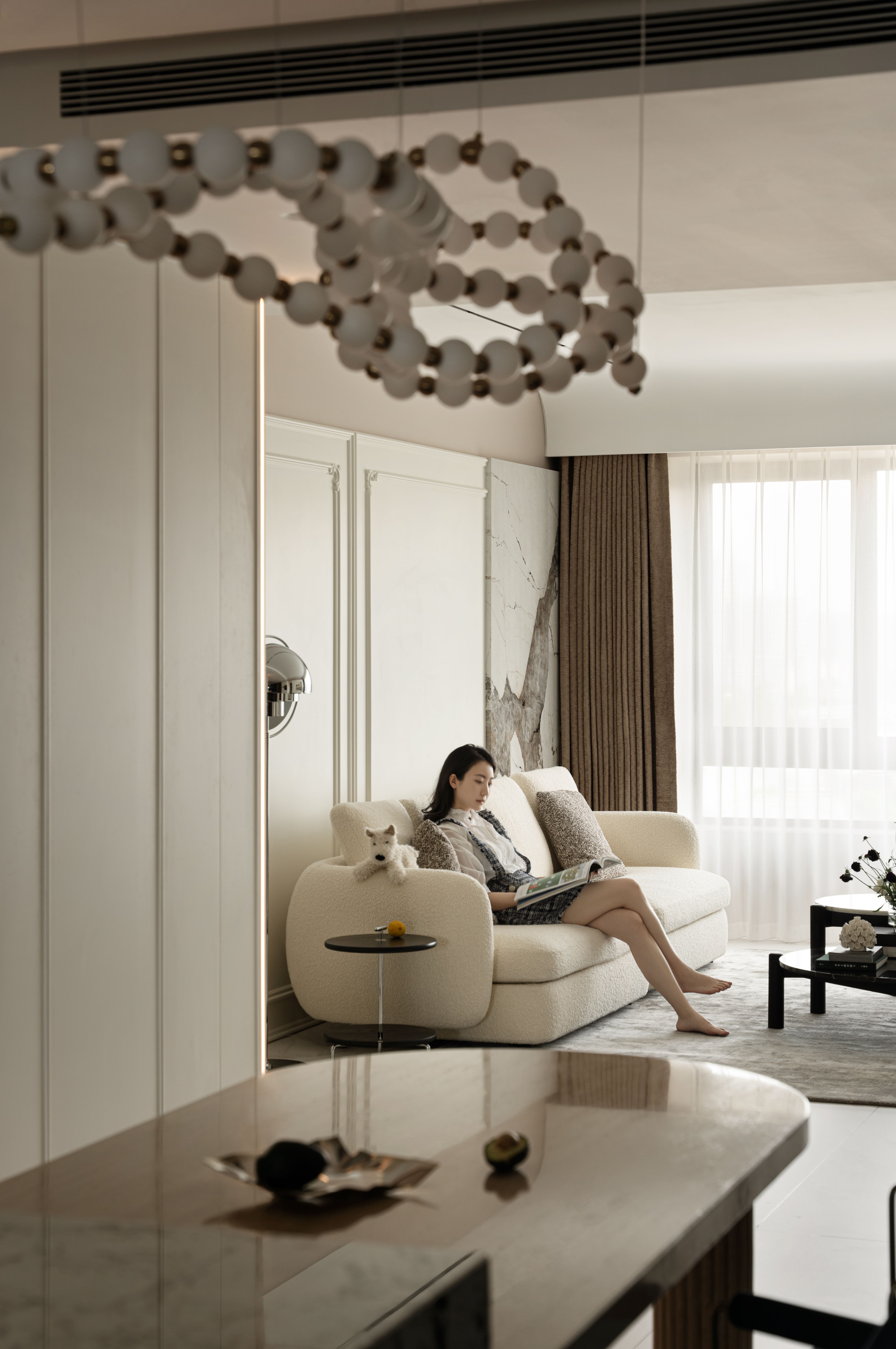 用户体验:本案业主是一双年轻夫妻,刚接触时就表达了对于家的清晰喜好。产品设计出身的男主人对工艺和细节有着自己的考量,女主人偏爱自由浪漫的法式风格。该空间是他们的新家,位于北京市壹·亮马。设计师希望赋予这个家自由的空间,无拘无束的感觉,有着诗一般的纯粹与洁白。淡淡的暖调中透着清爽,带给人治愈与放松,透过精致细腻的细节,优雅浪漫的氛围给予业主宁静,惬意,充满爱意的居所。