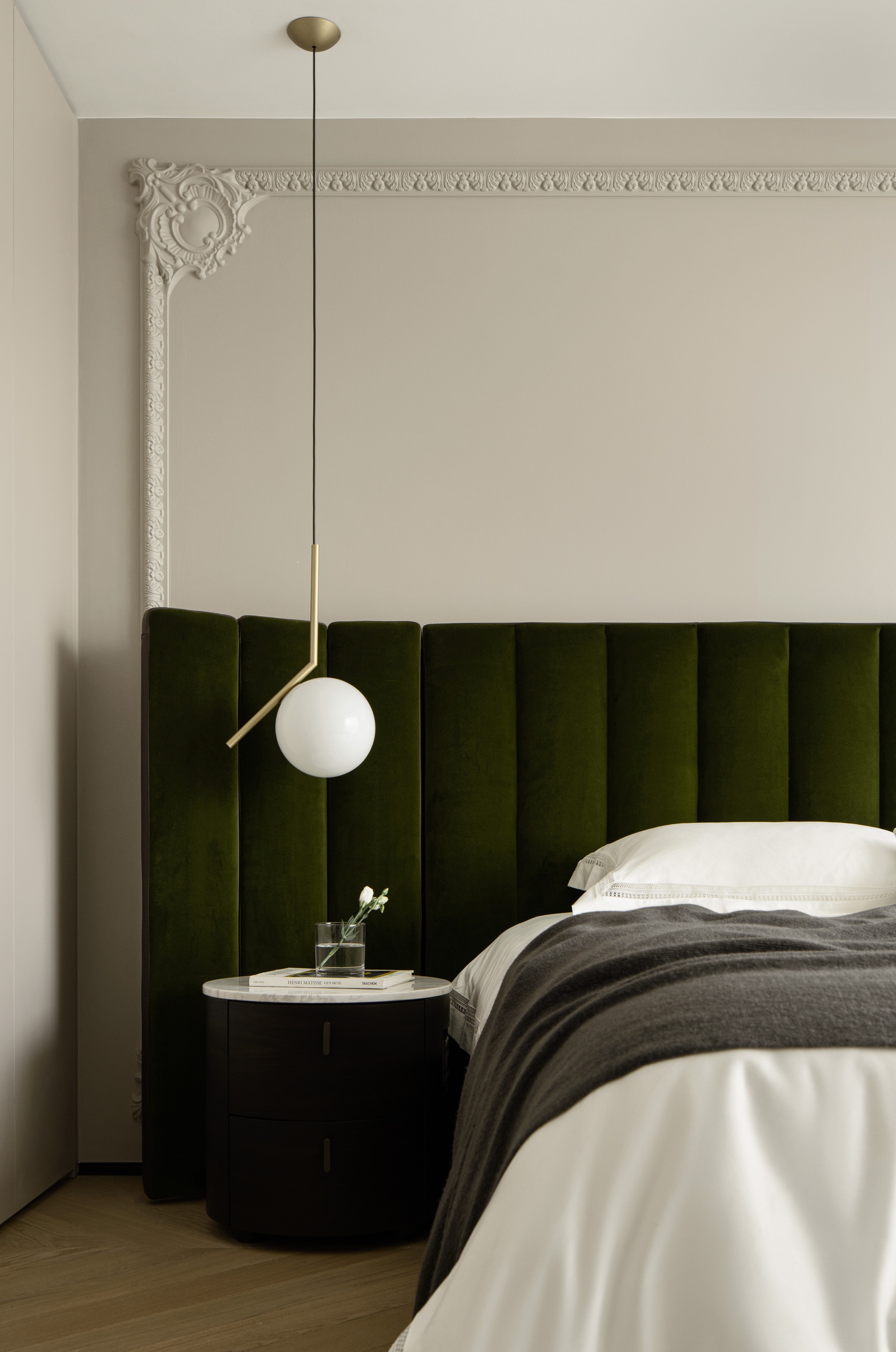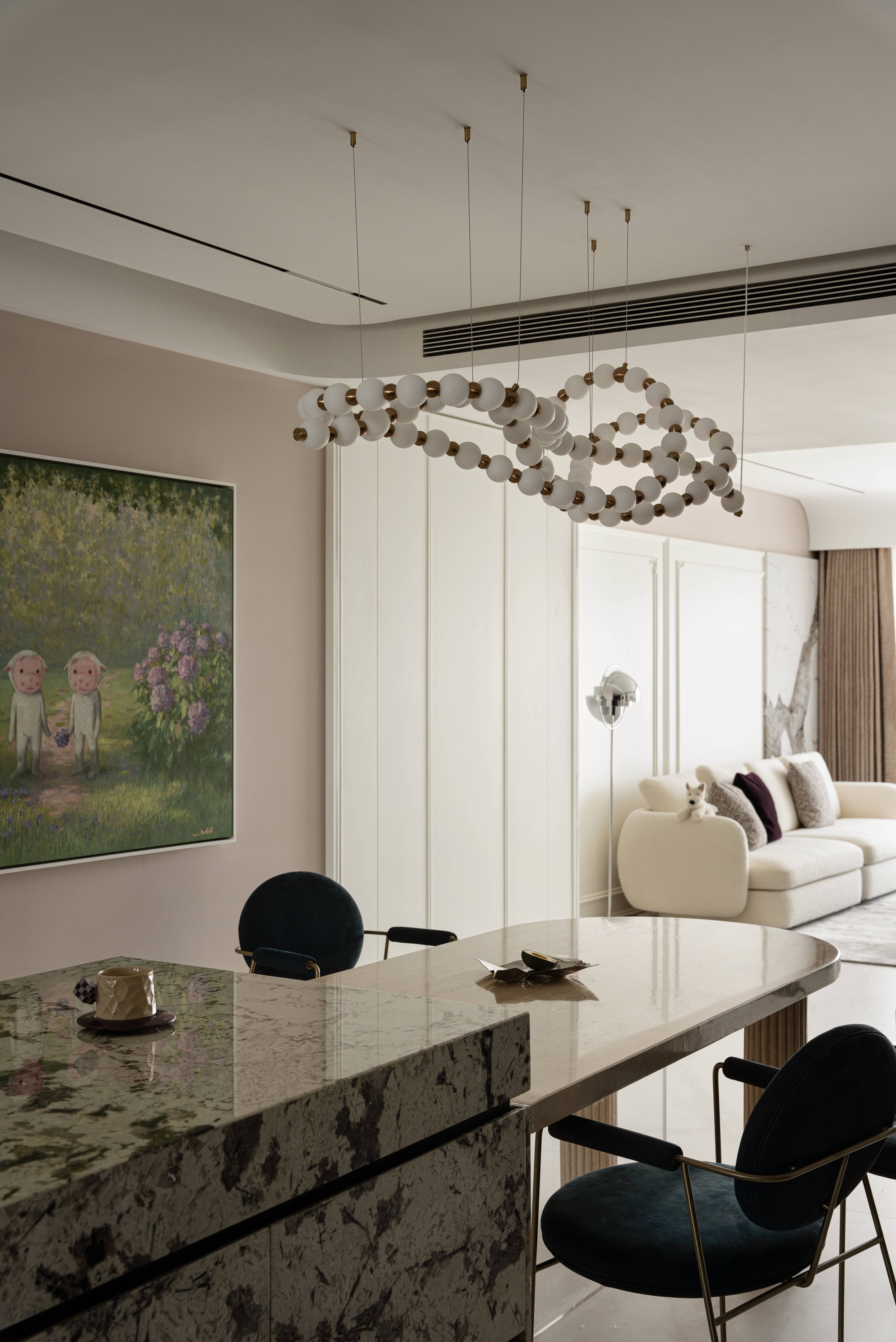 空间意境:本案业主是一双年轻夫妻,刚接触时就表达了对于家的清晰喜好。产品设计出身的男主人对工艺和细节有着自己的考量,女主人偏爱自由浪漫的法式风格。该空间是他们的新家,位于北京市壹·亮马。设计师希望赋予这个家自由的空间,无拘无束的感觉,有着诗一般的纯粹与洁白。淡淡的暖调中透着清爽,带给人治愈与放松,透过精致细腻的细节,优雅浪漫的氛围给予业主宁静,惬意,充满爱意的居所。