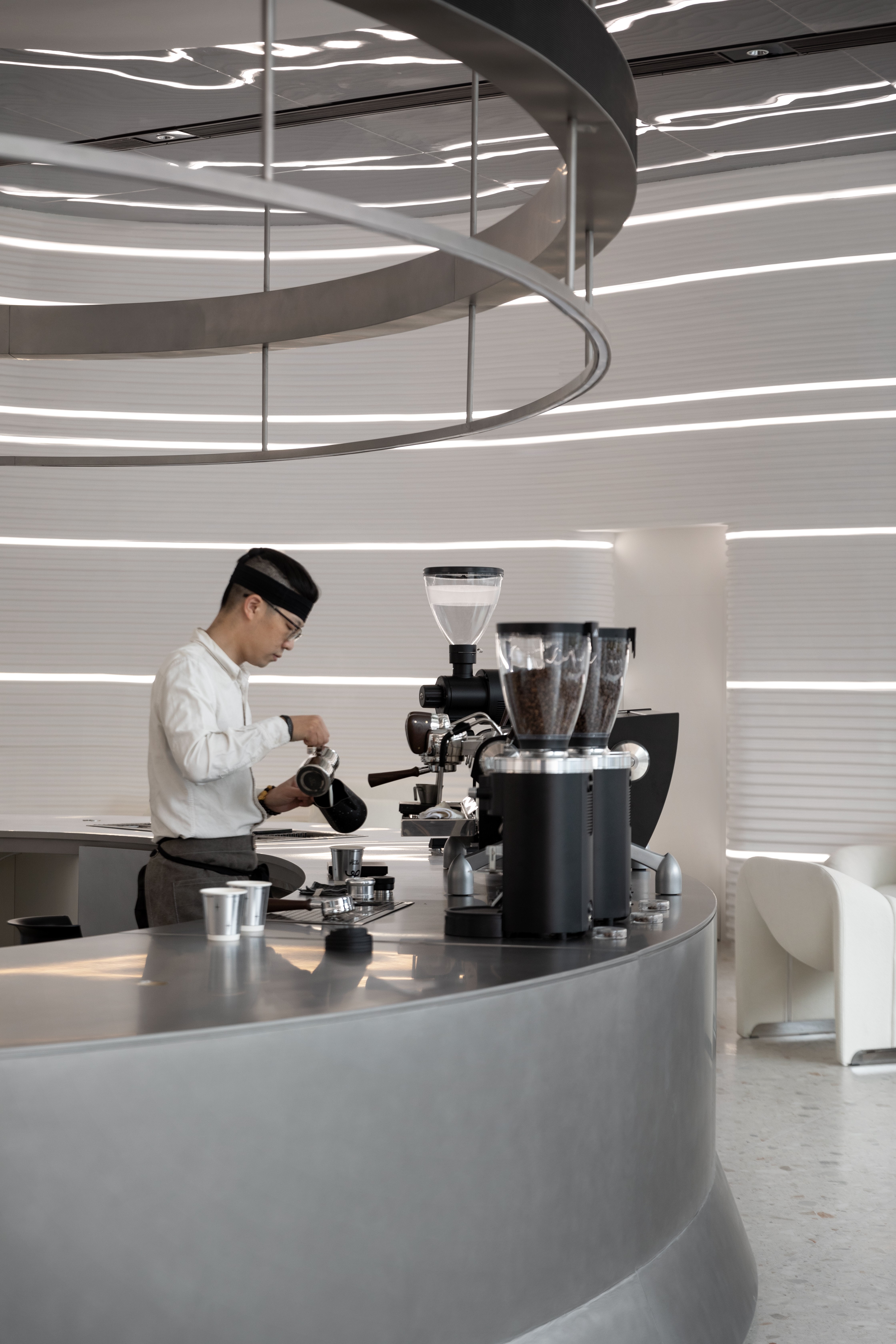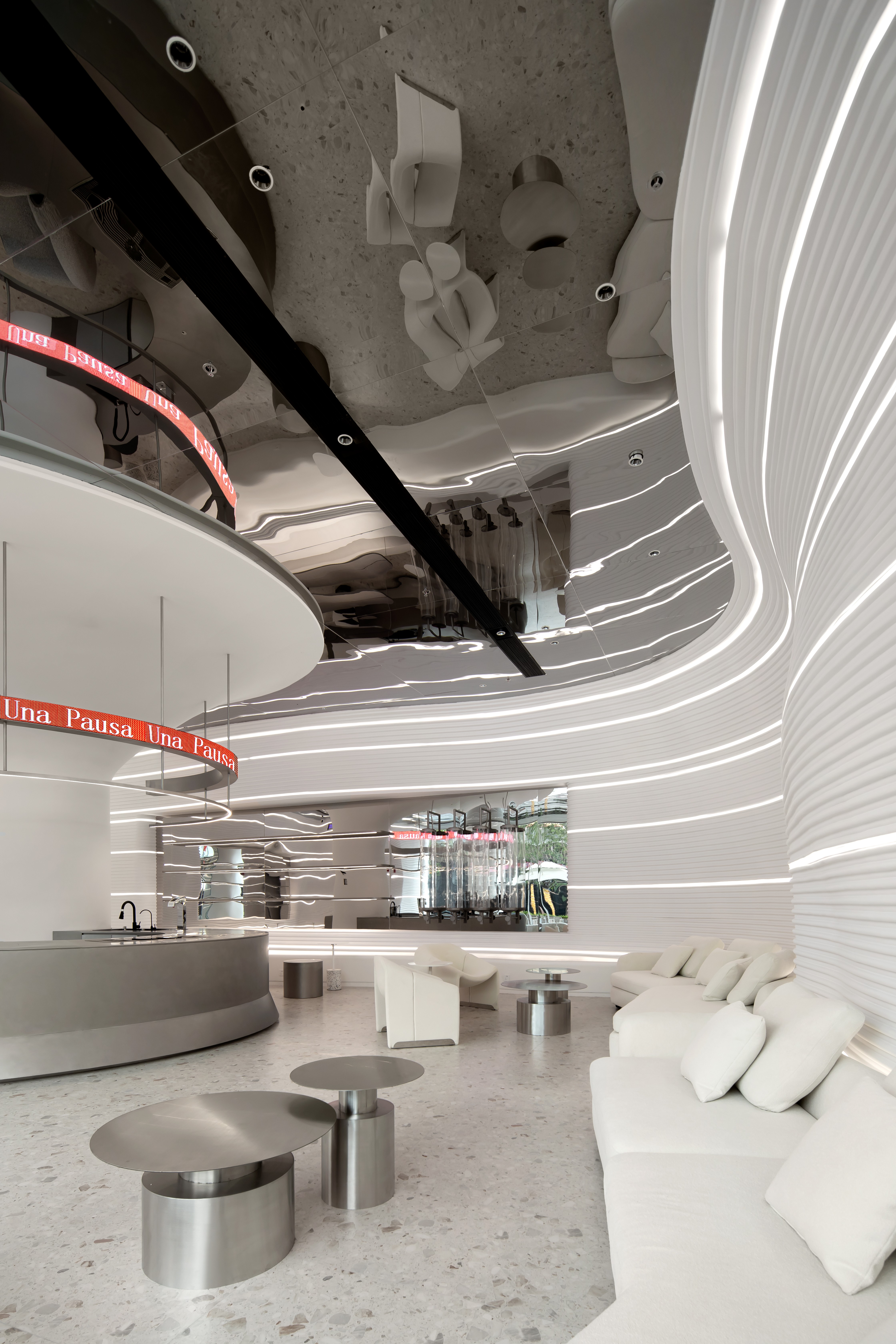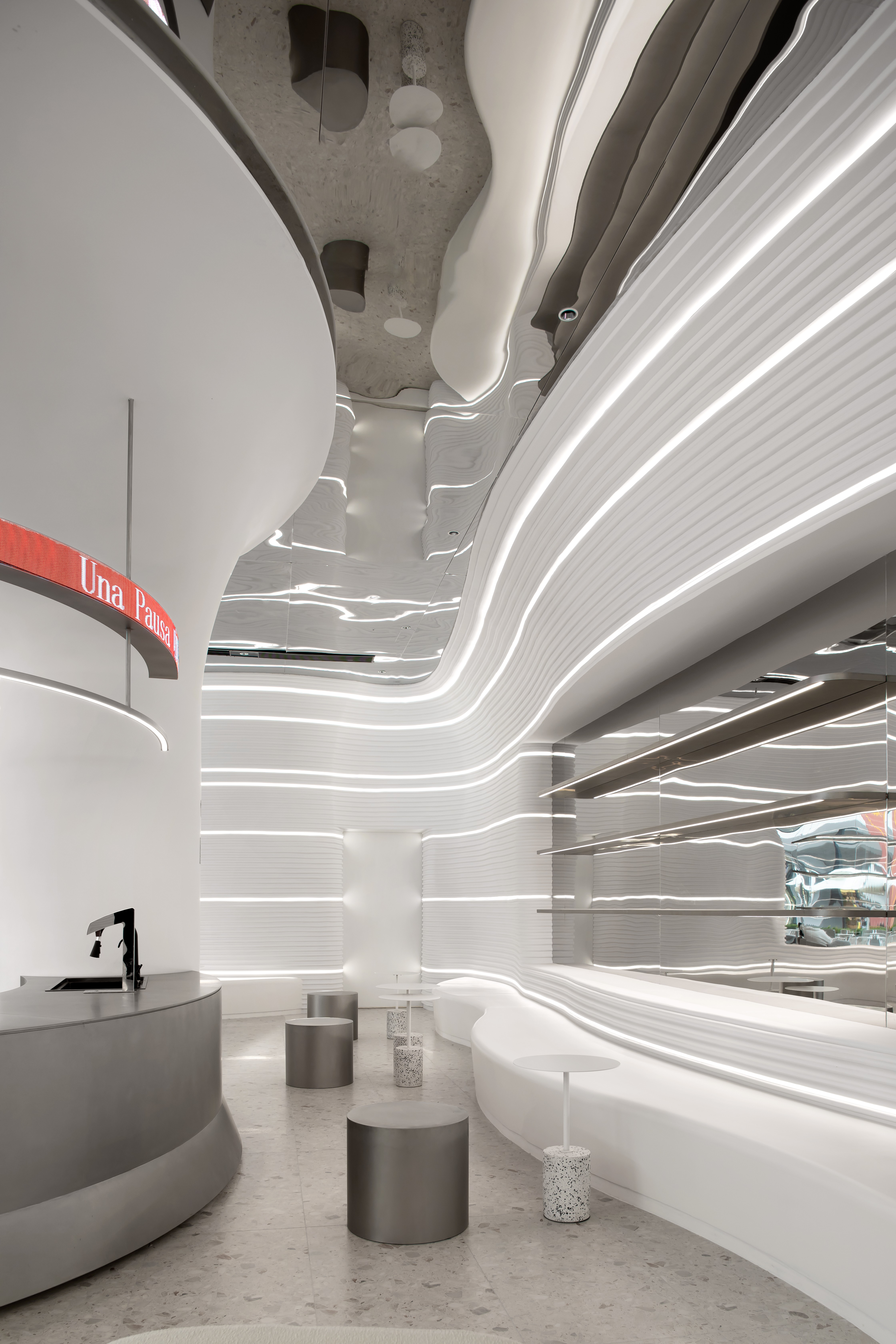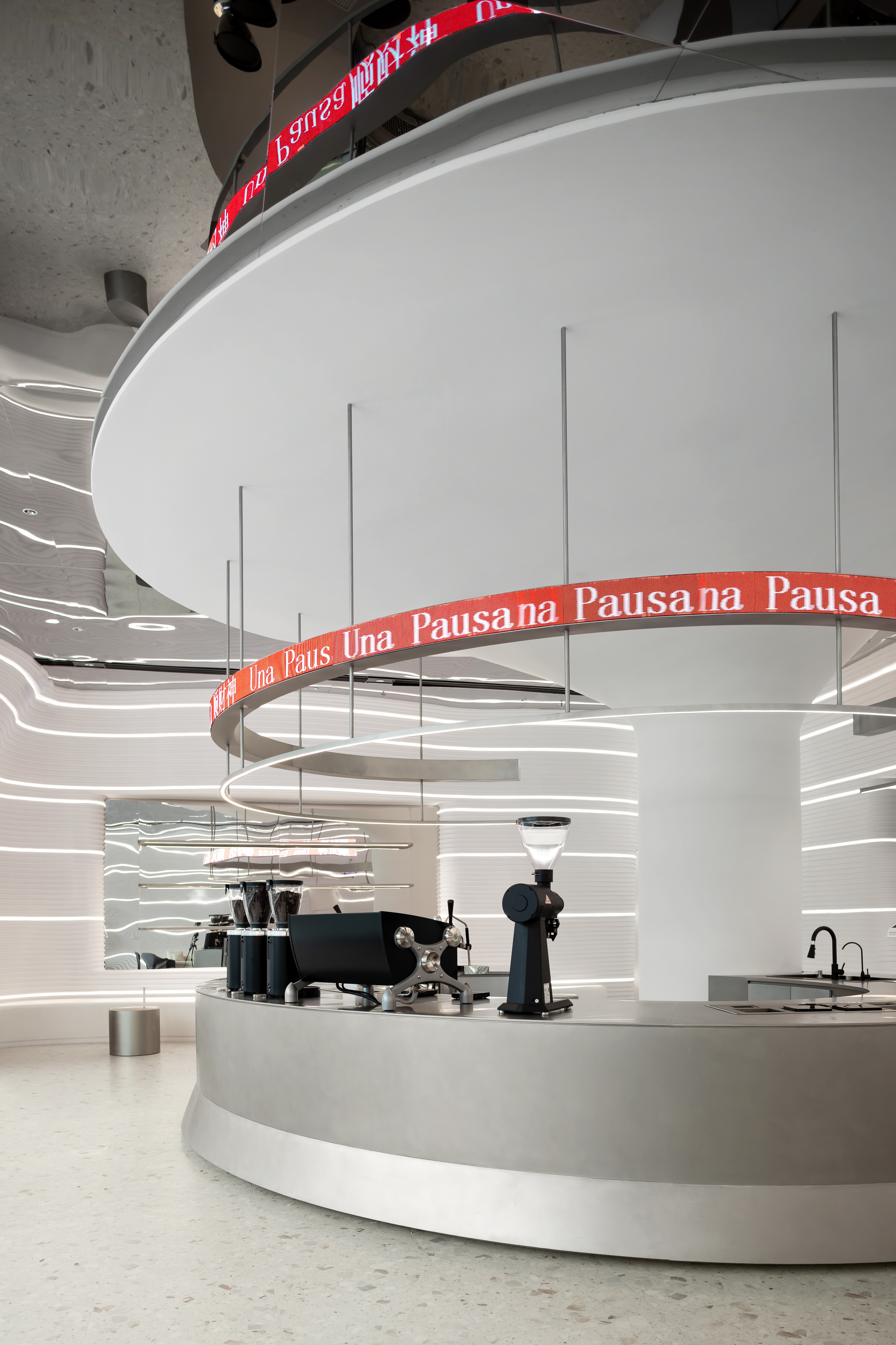 在满足空间整体视觉基调上,让咖啡厅更具科技感与沉浸感。