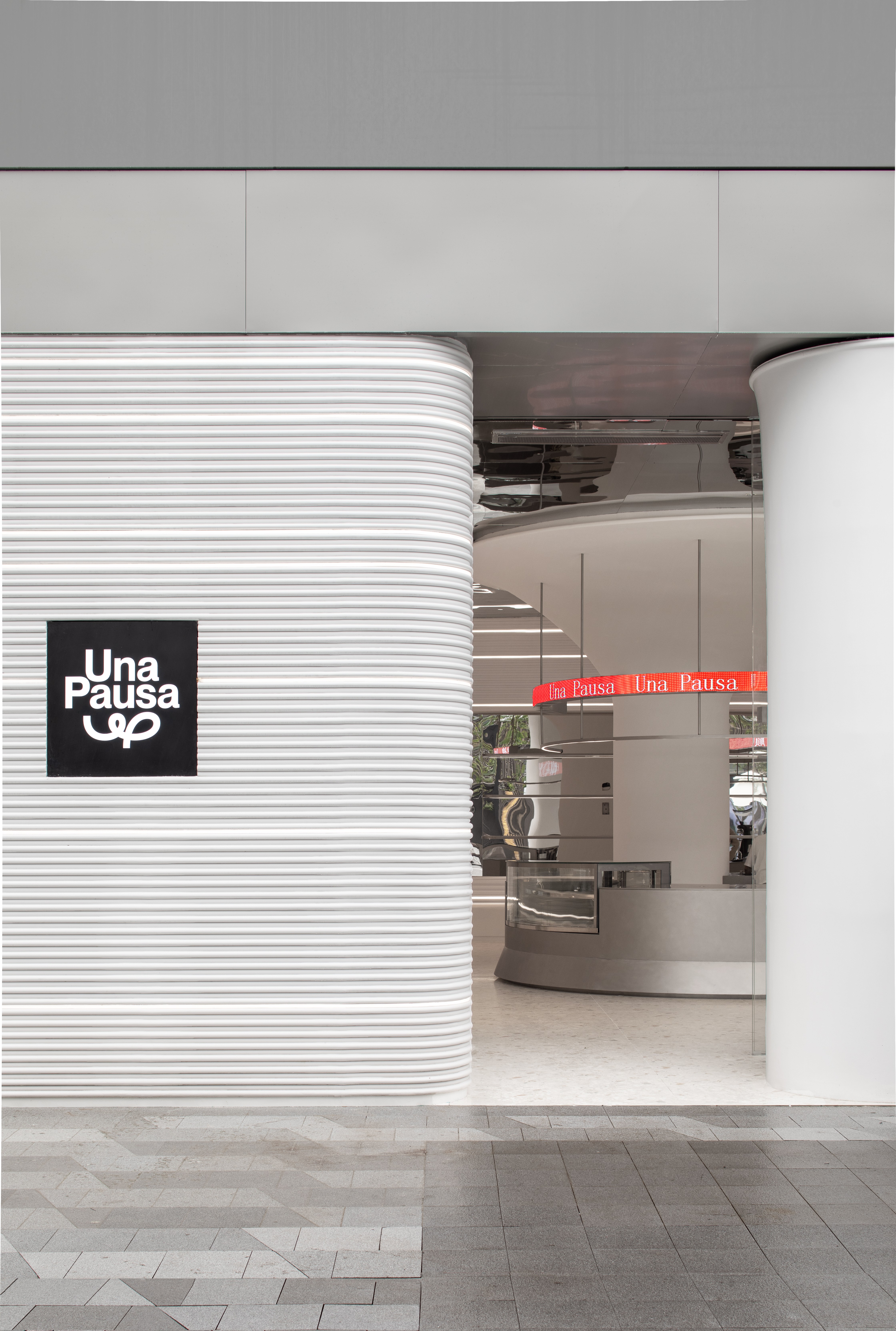 从门头开始发光GRG材质延伸至空间内部,四面环壁,强化视觉印象。