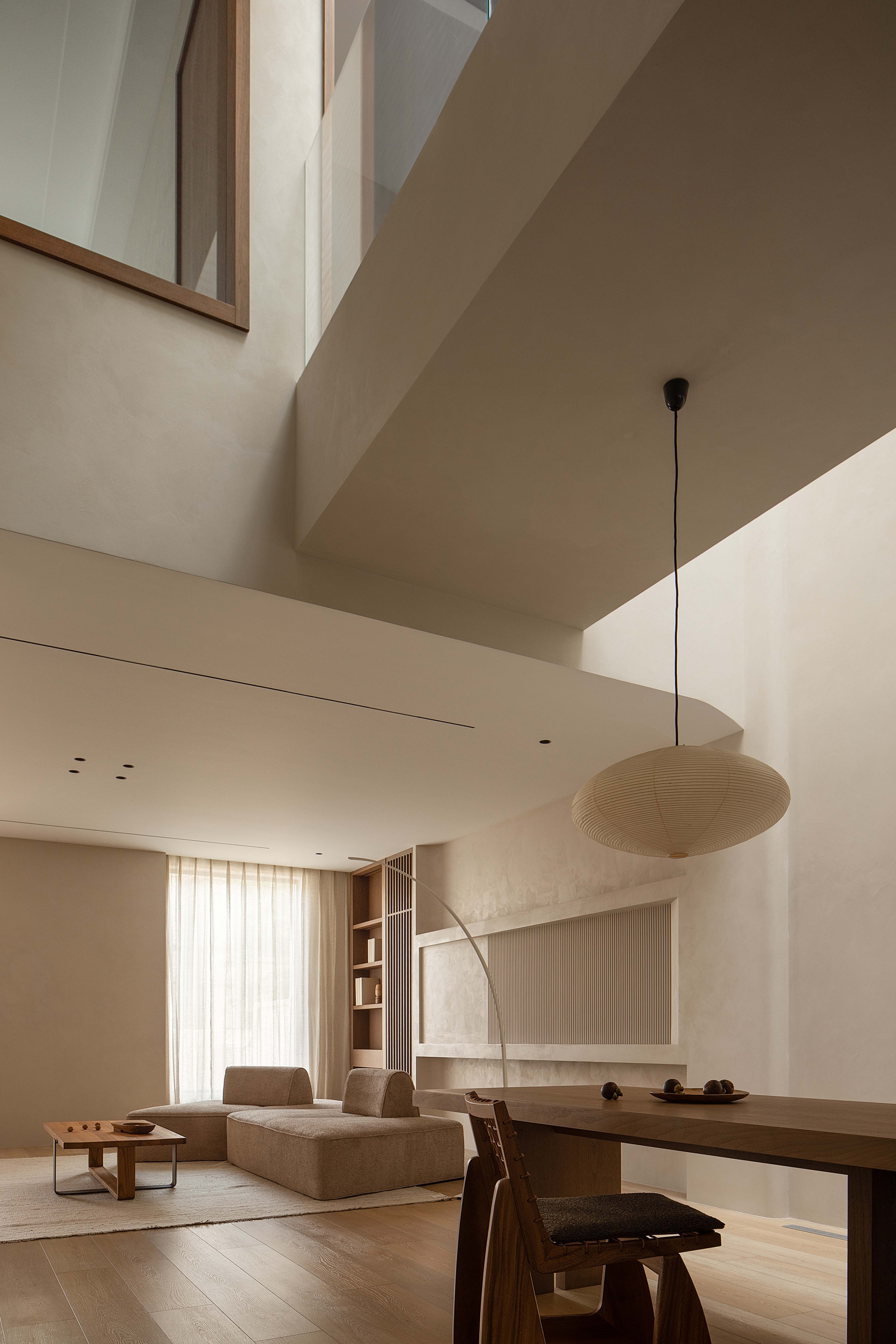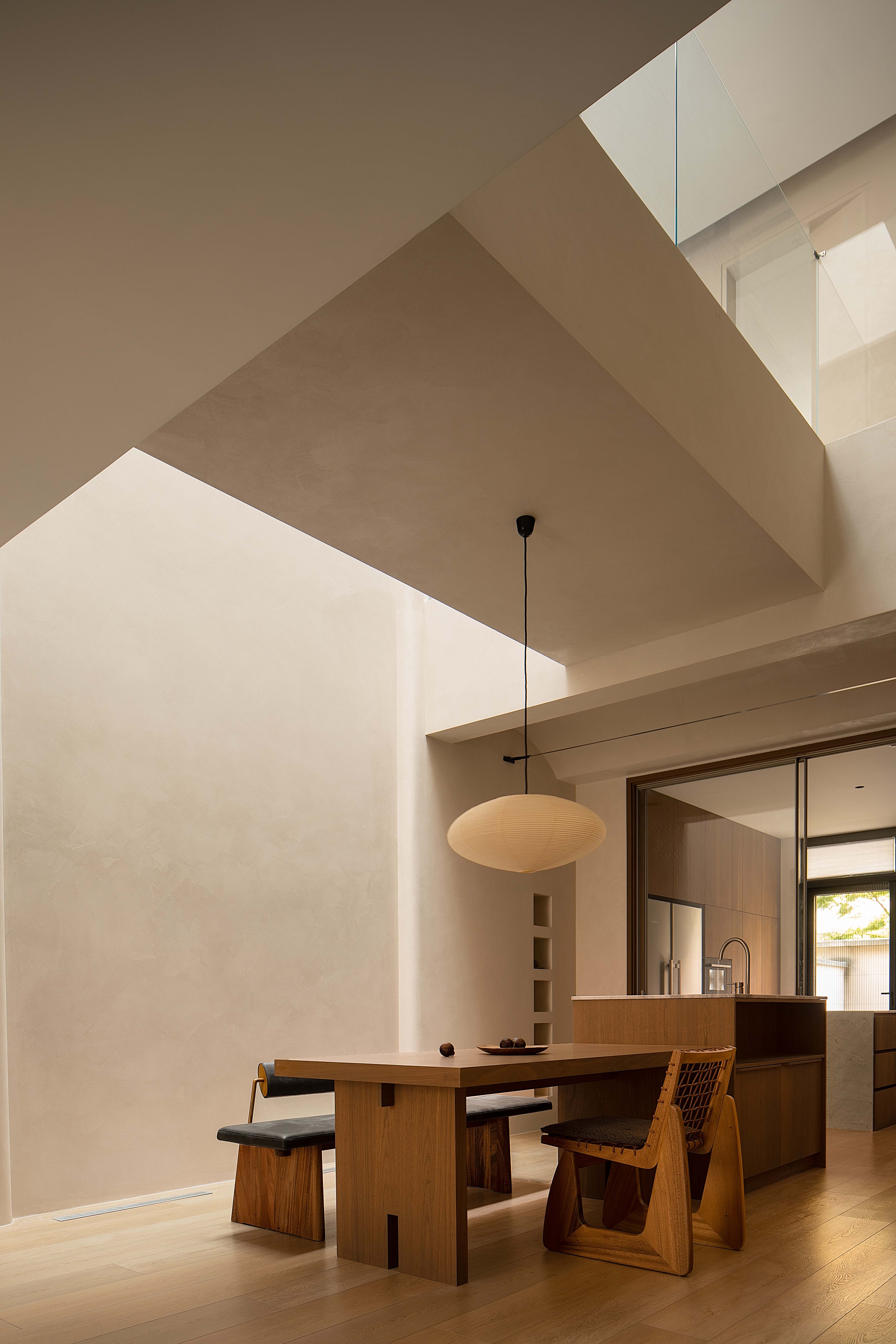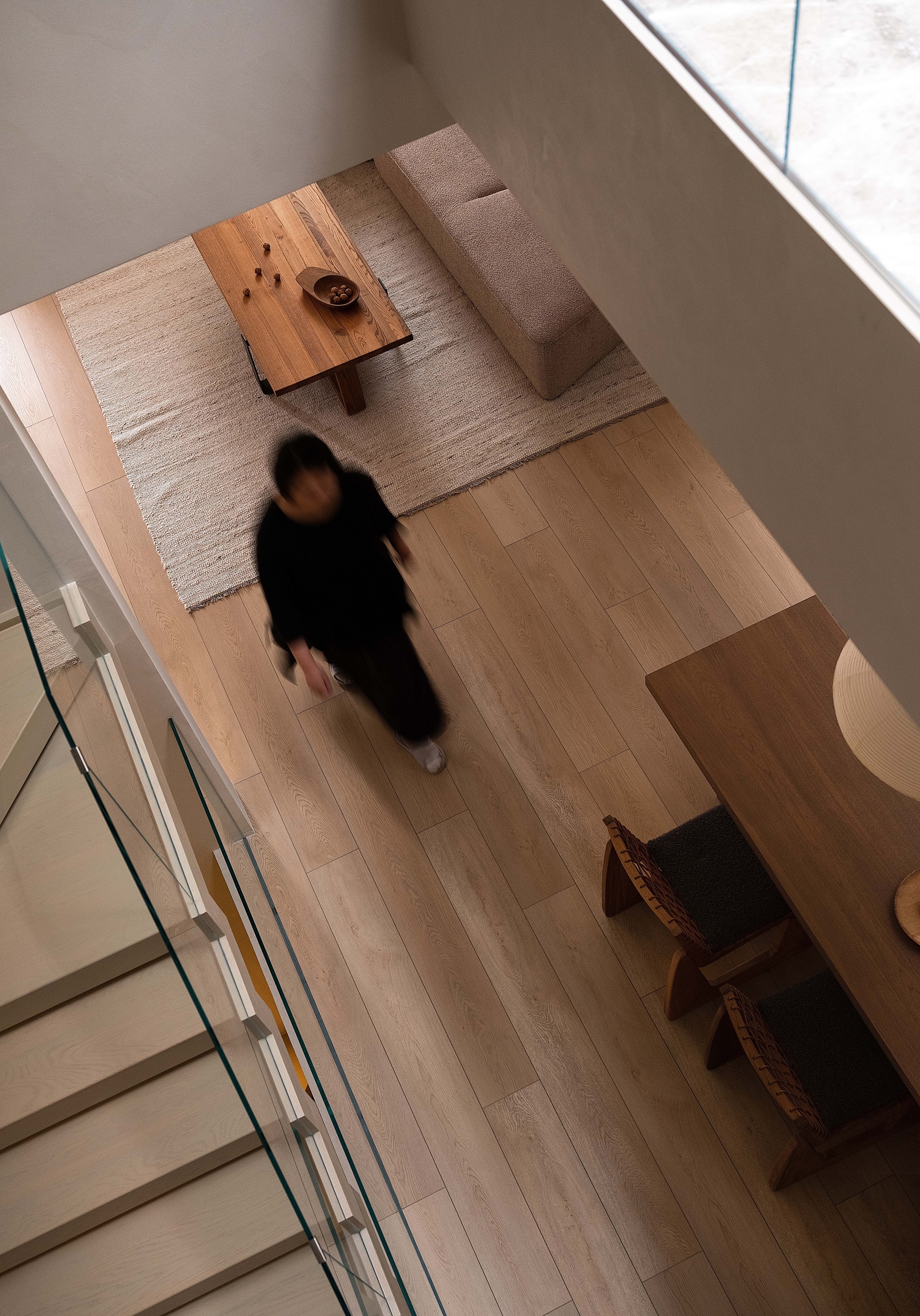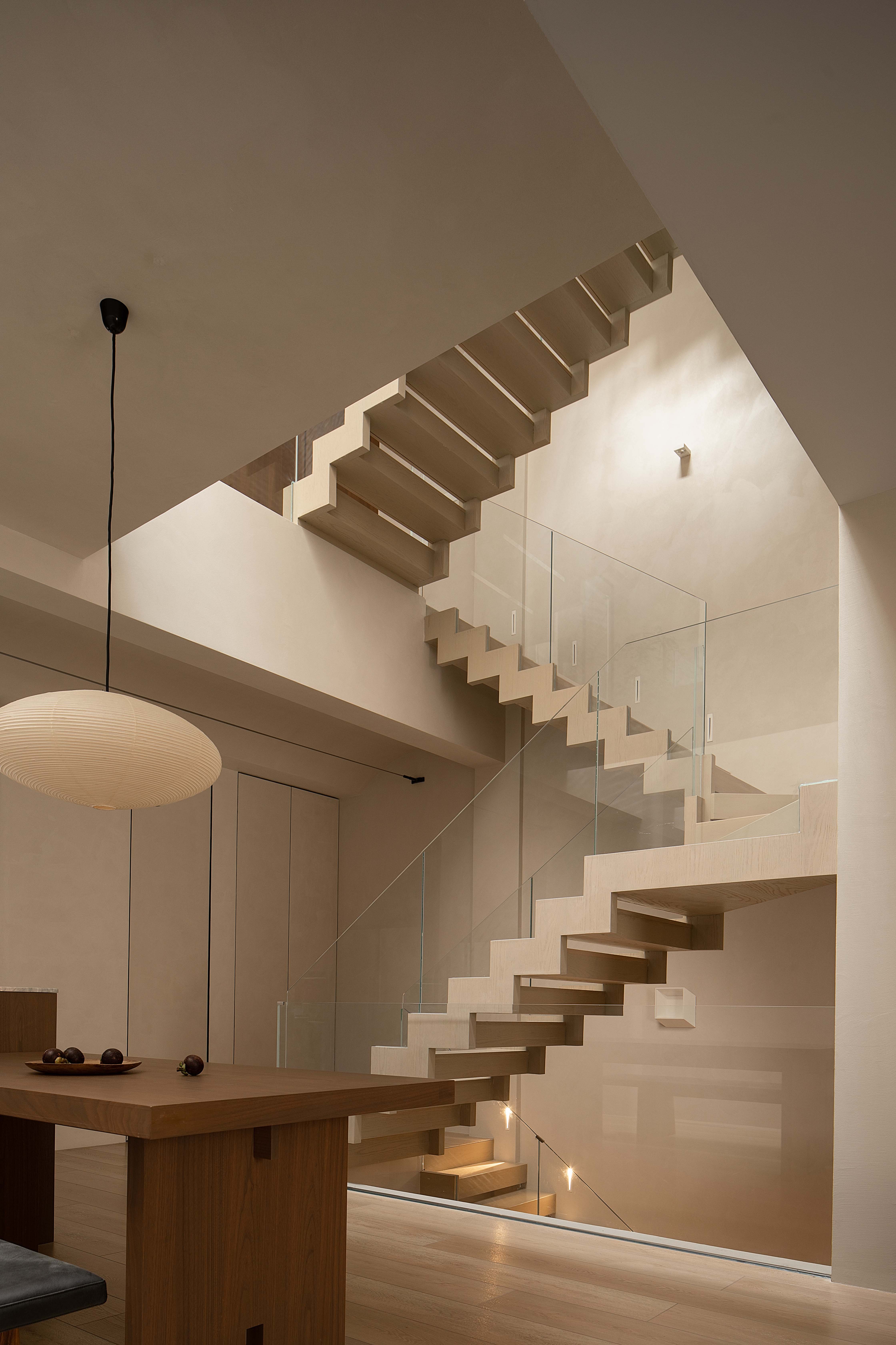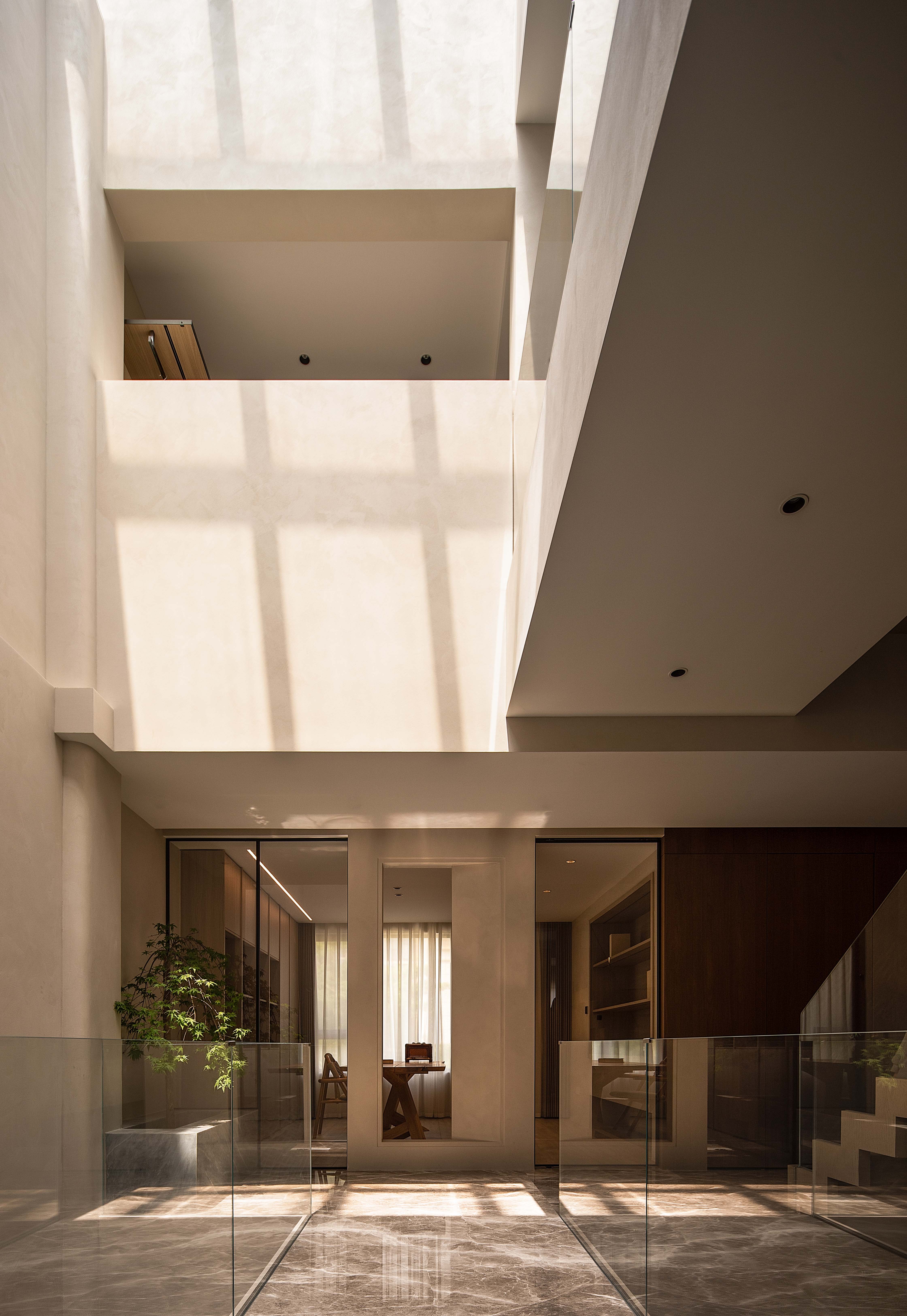 空间布局:在空间布局上重置了天井的位置,同时通过连廊链接南北空间,让楼梯的侧面可以更好地展示出来,同时让进入室内的光线更加柔远均匀。