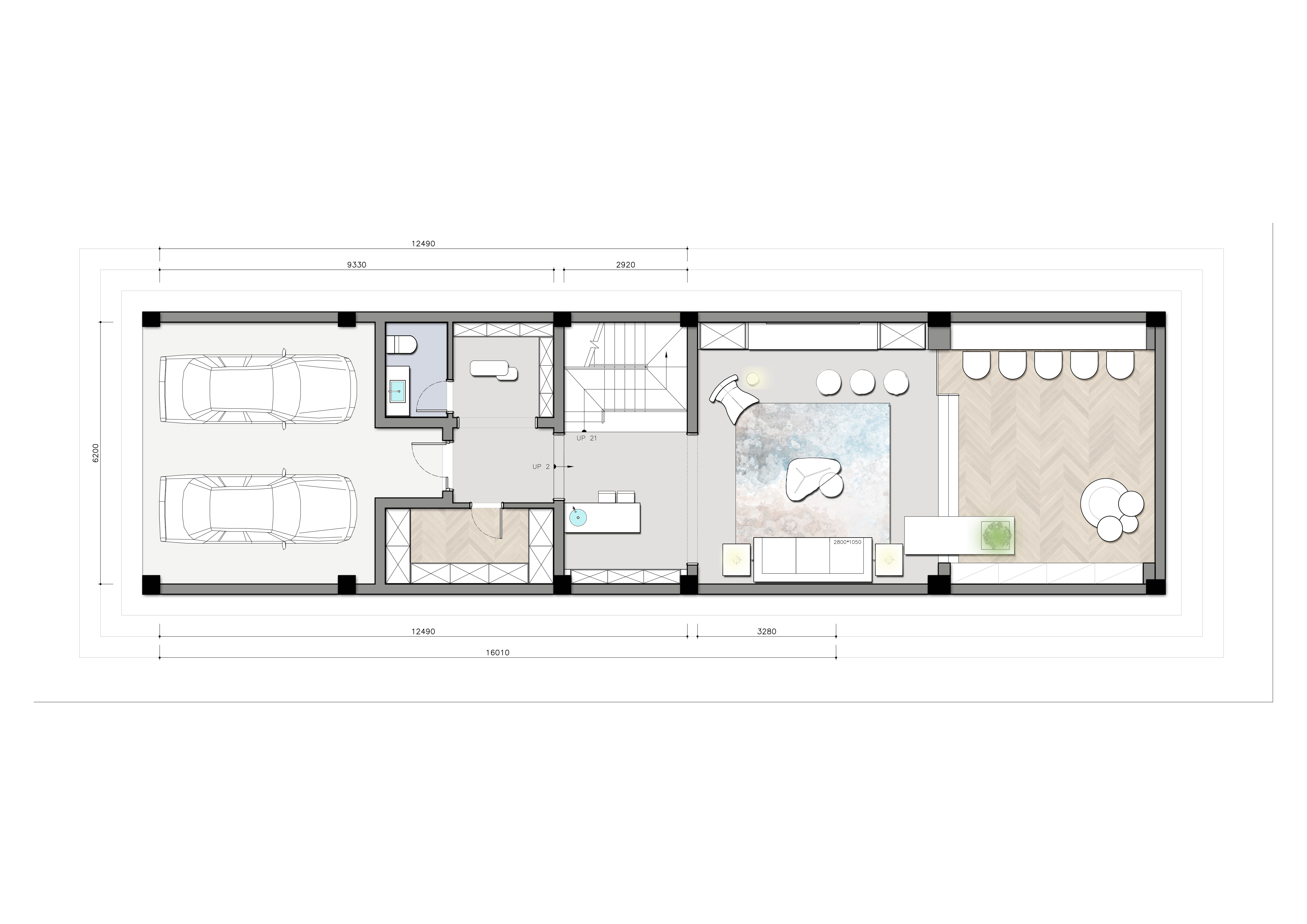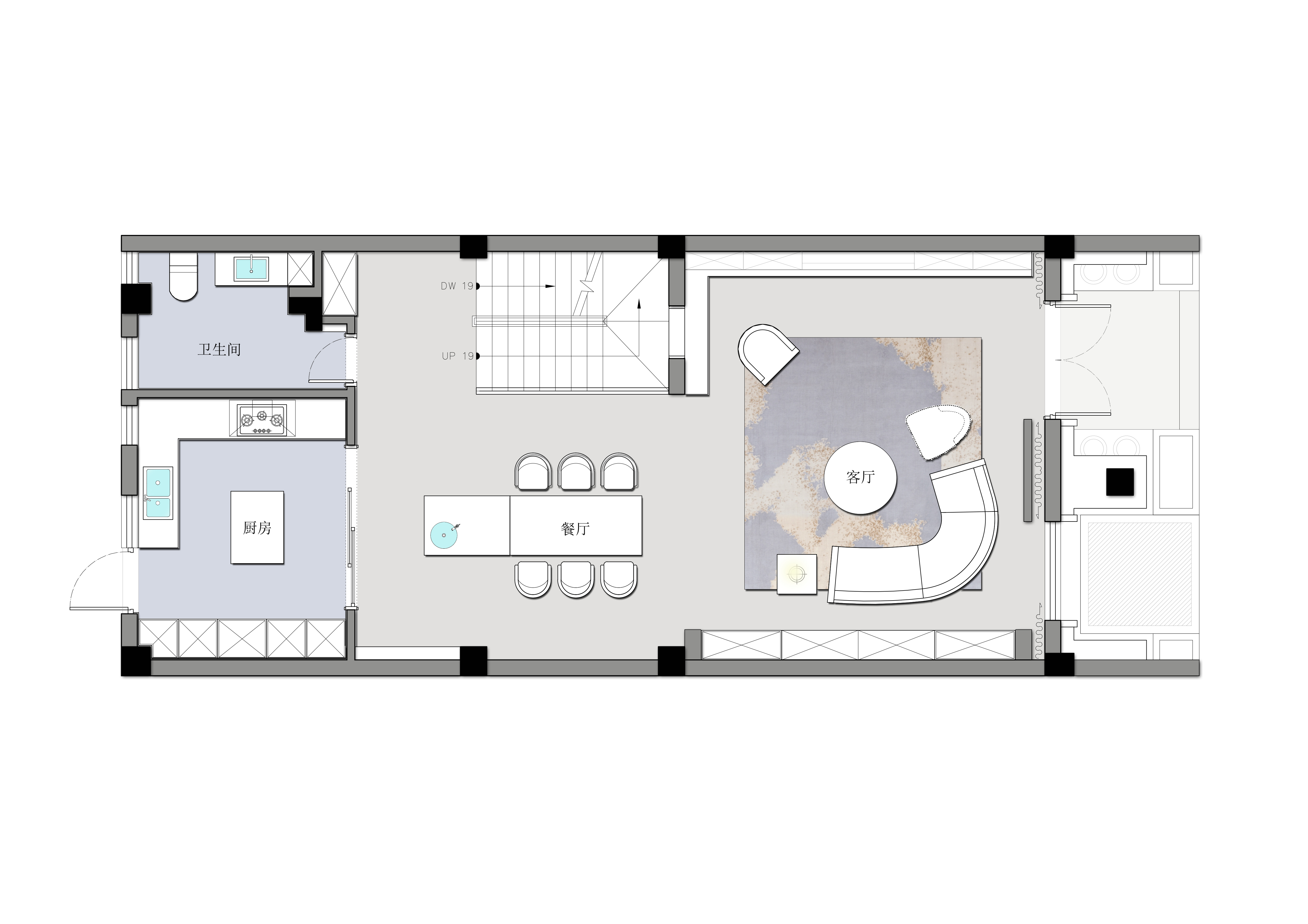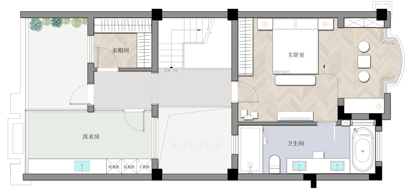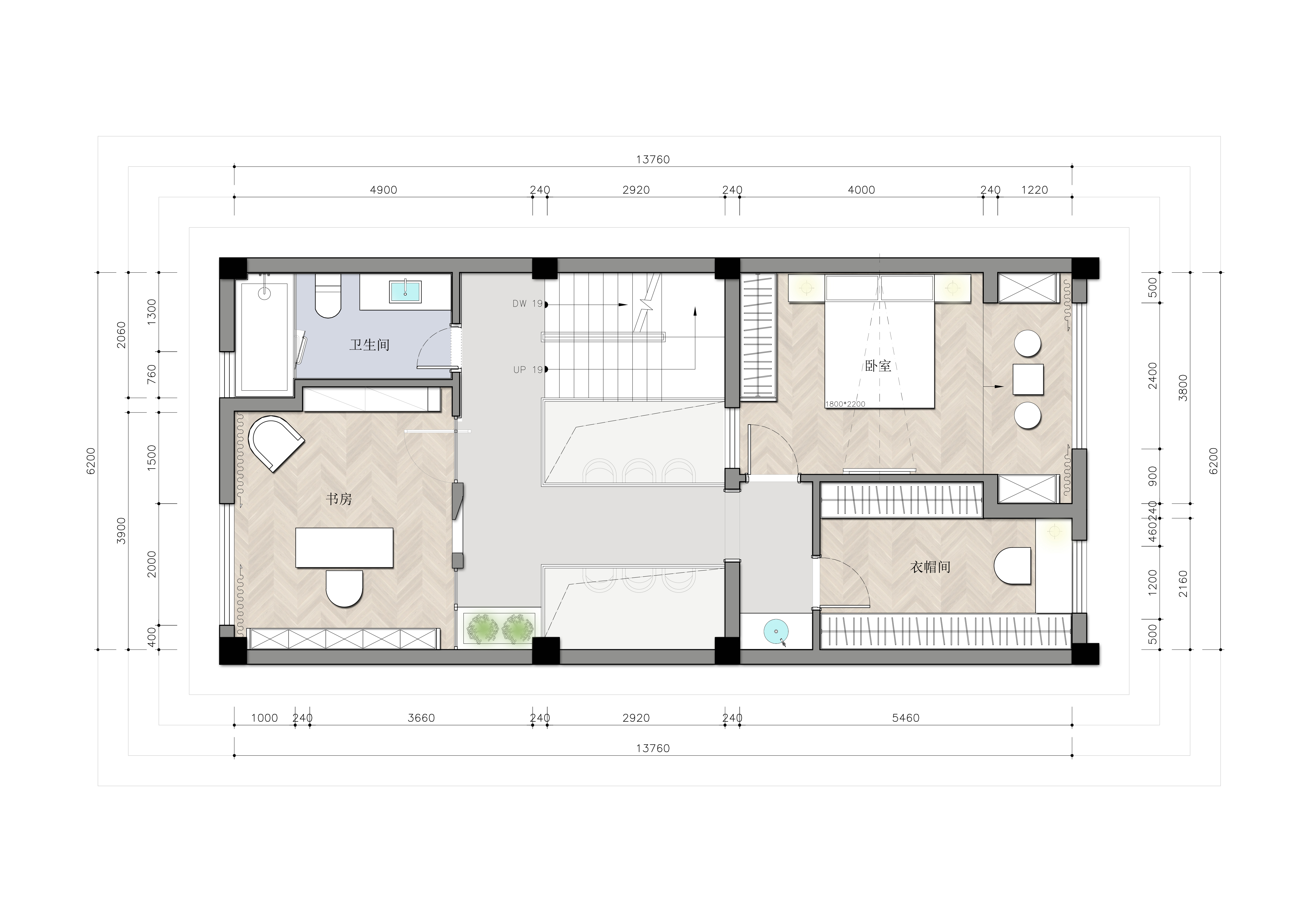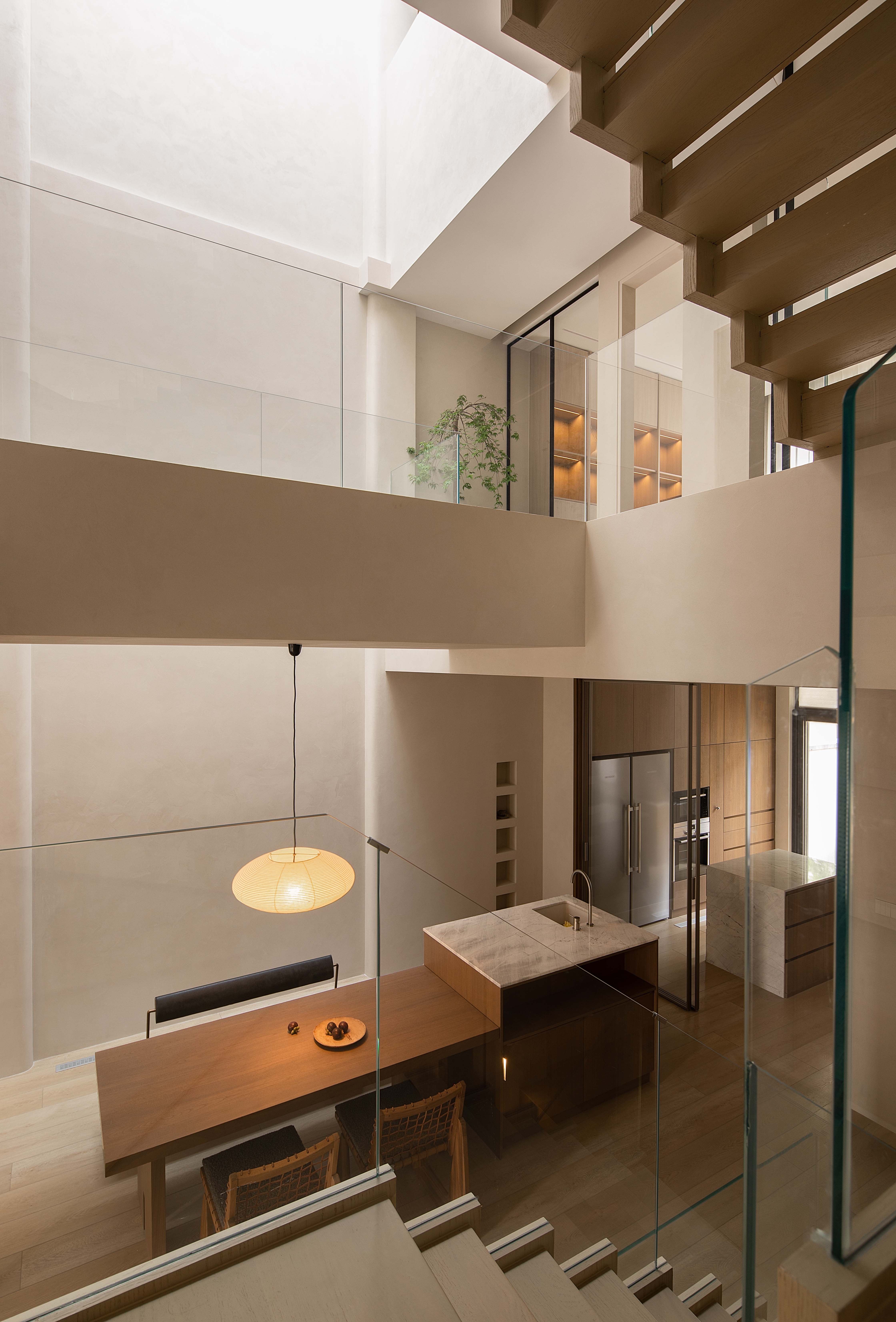 空间布局:在空间布局上重置了天井的位置,同时通过连廊链接南北空间,让楼梯的侧面可以更好地展示出来,同时让进入室内的光线更加柔远均匀。