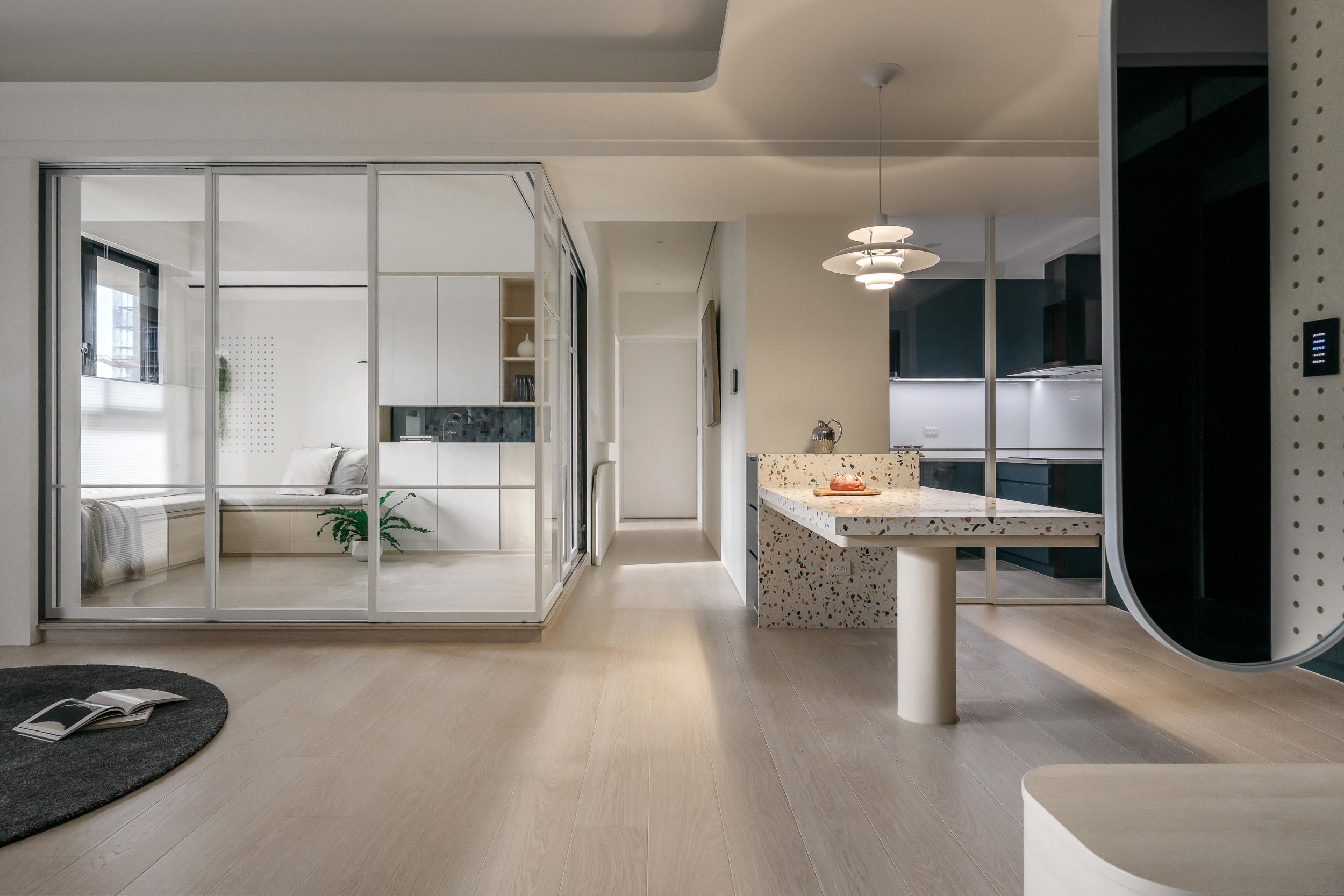 空间意境:以美術館為靈感,打造無障礙主體的空間。白色作為整體基調,是平靜的底色,搭配輕松舒適的元素作為調味料。將每個區域視為獨特的展示空間,巧妙運用材質賦予各自特色,同時又能和諧統一成一體。