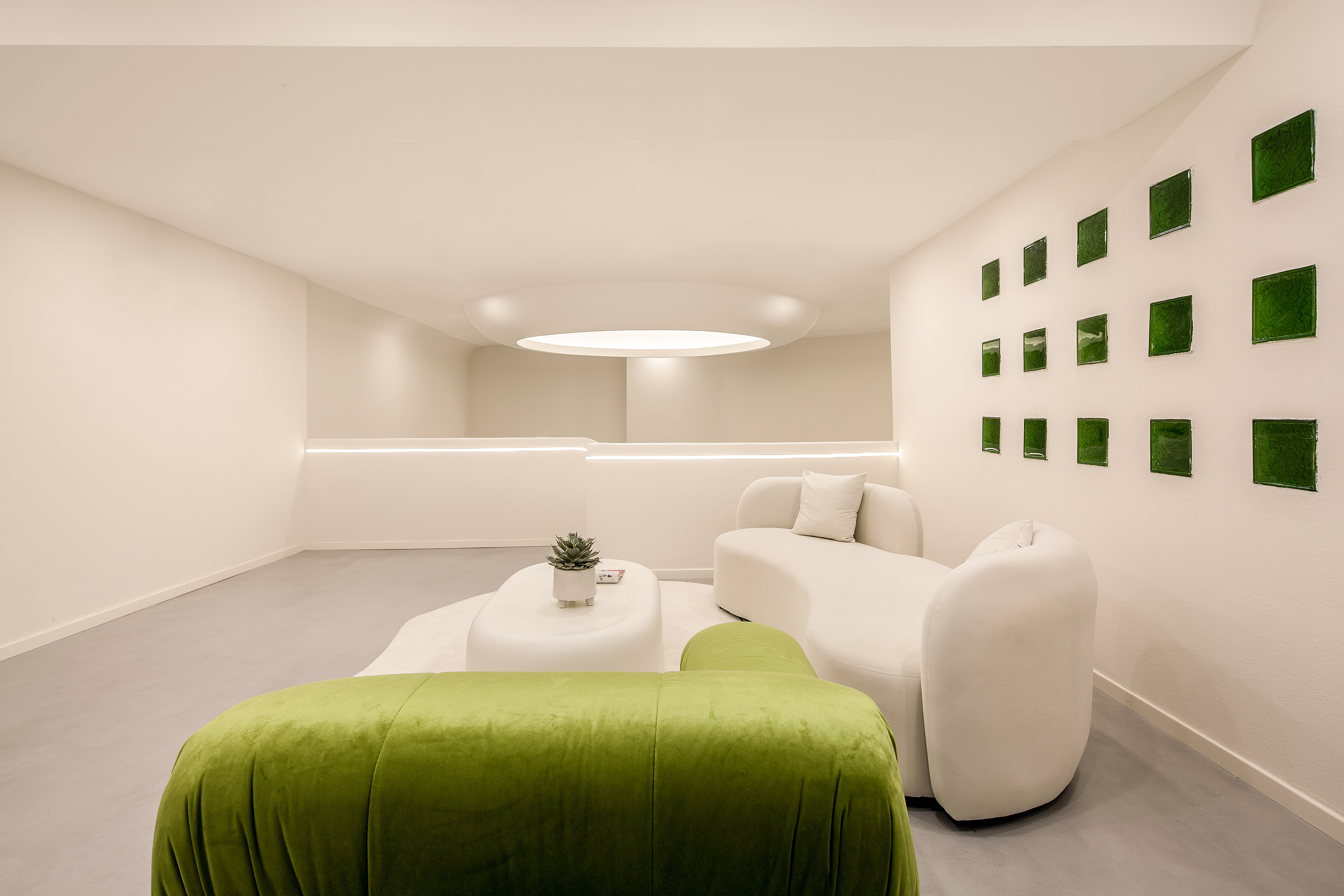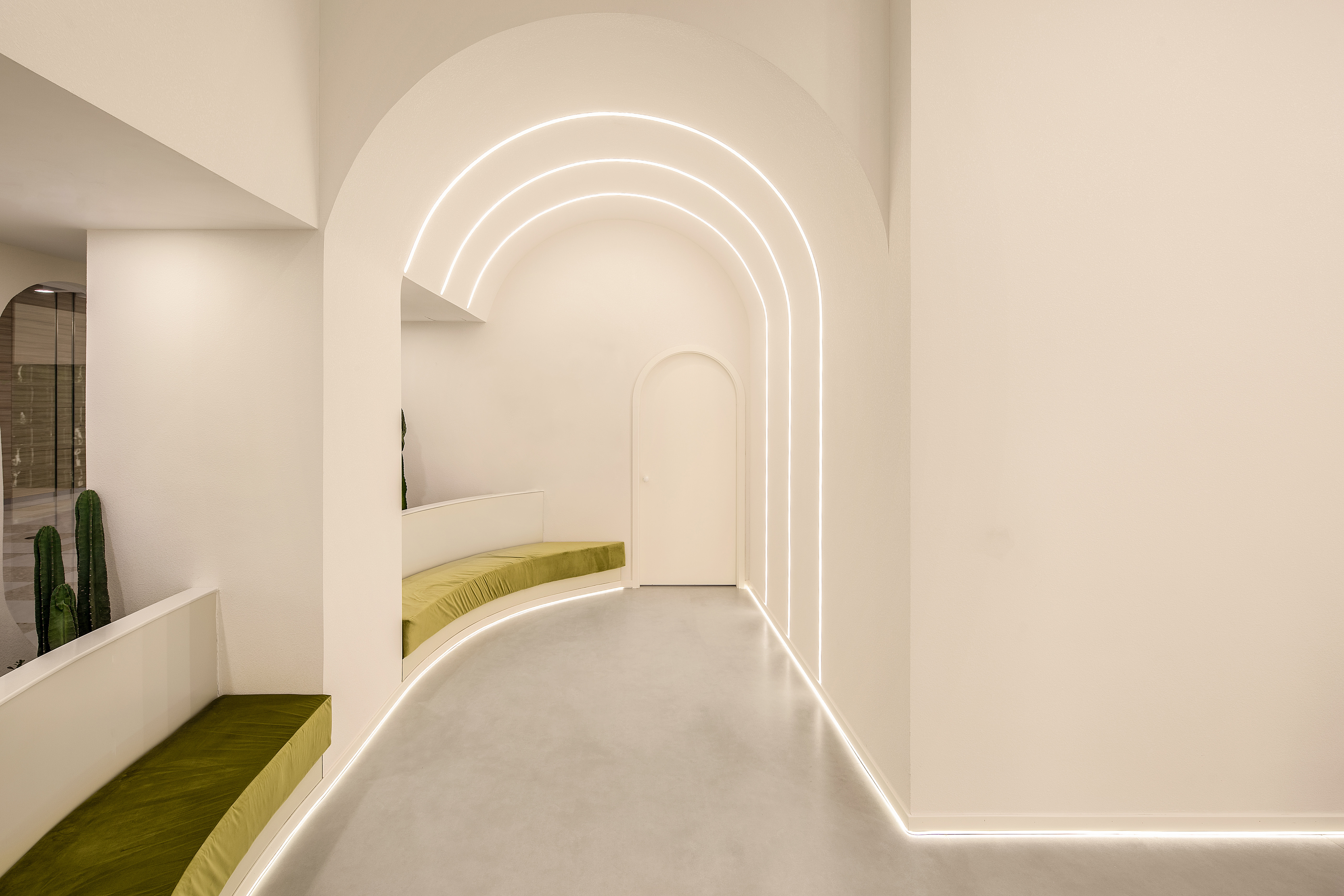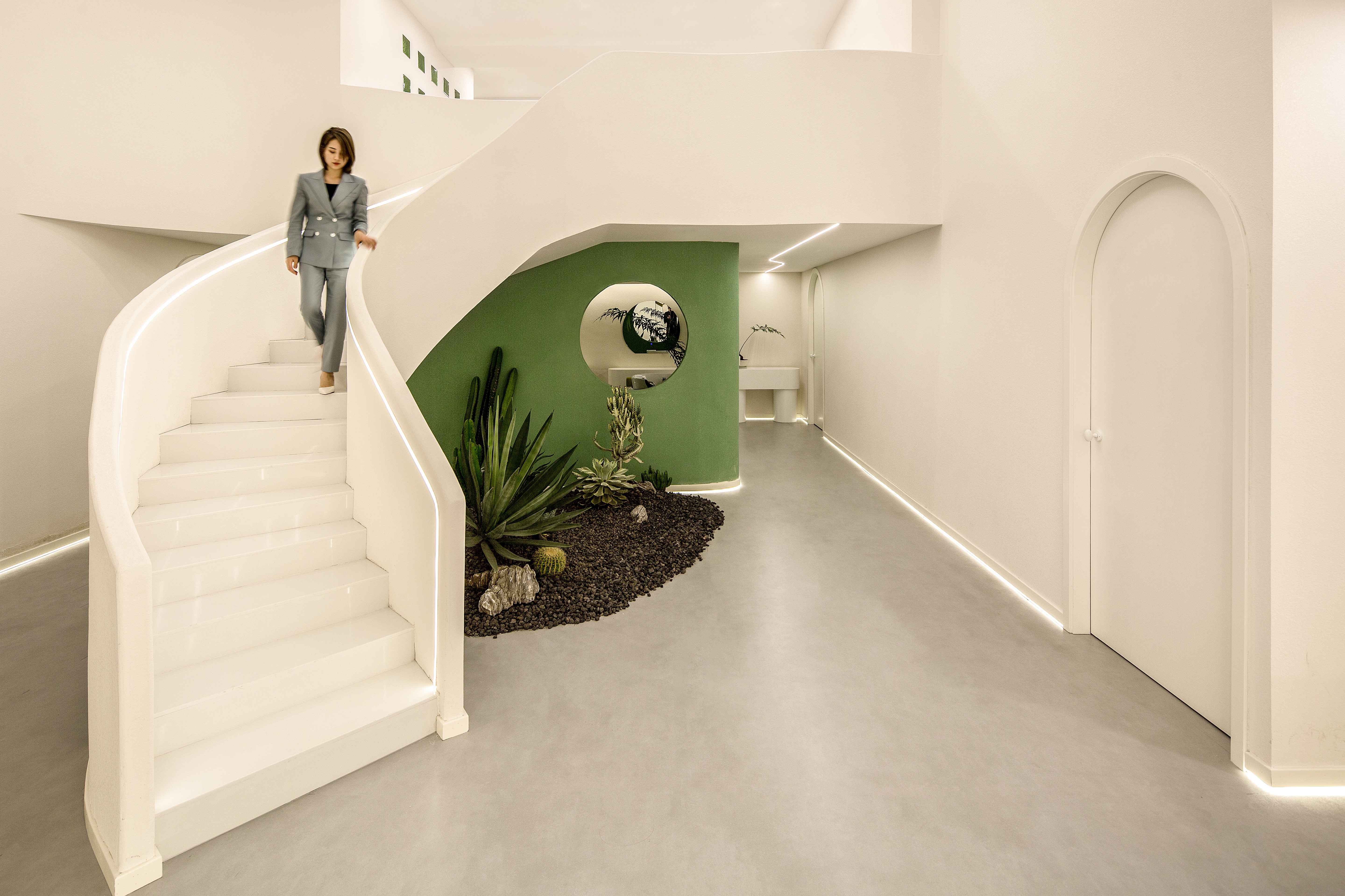 绿色系在空间穿行,也蕴涵了甲方对健康身心的重视性。