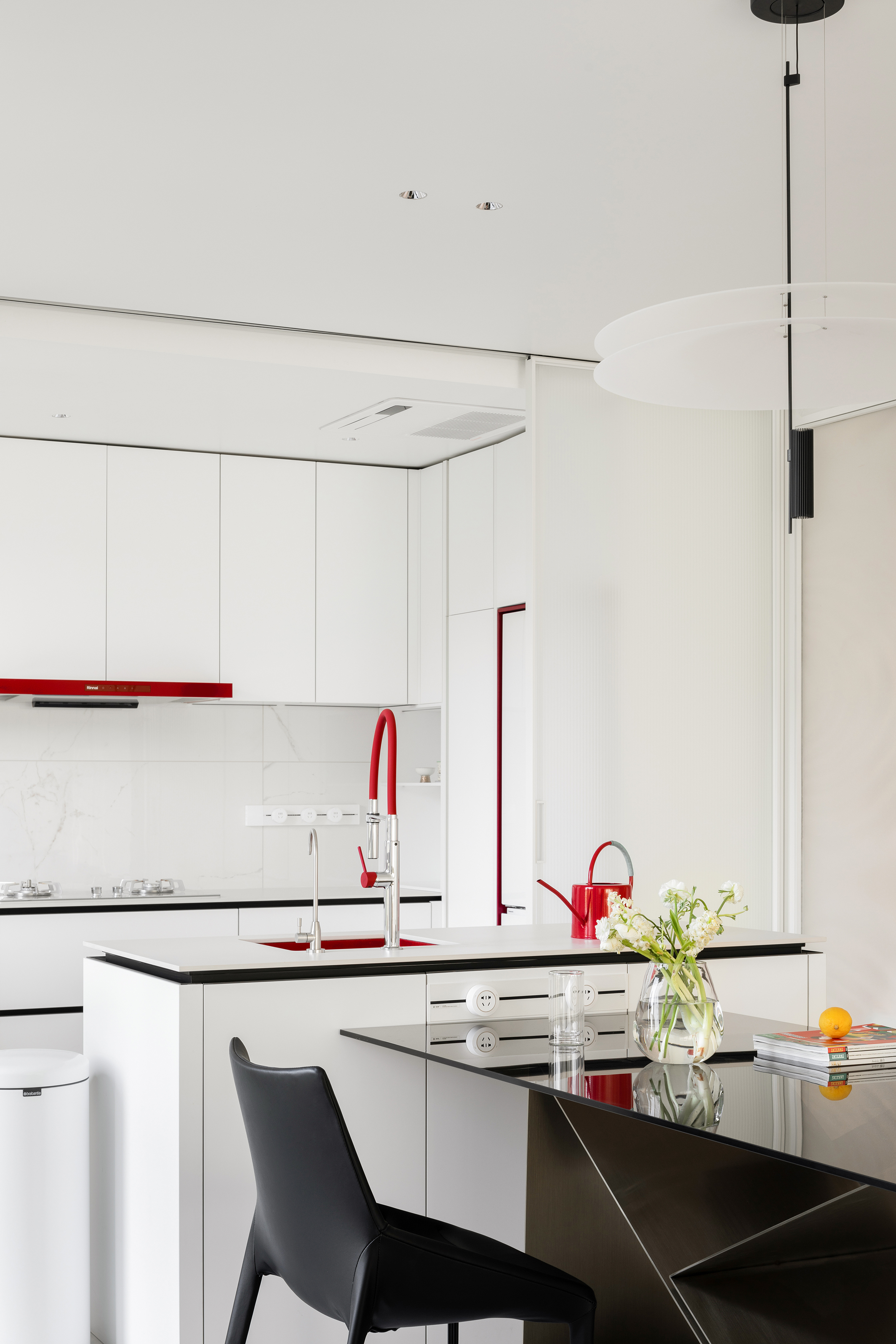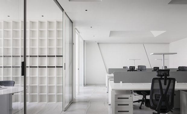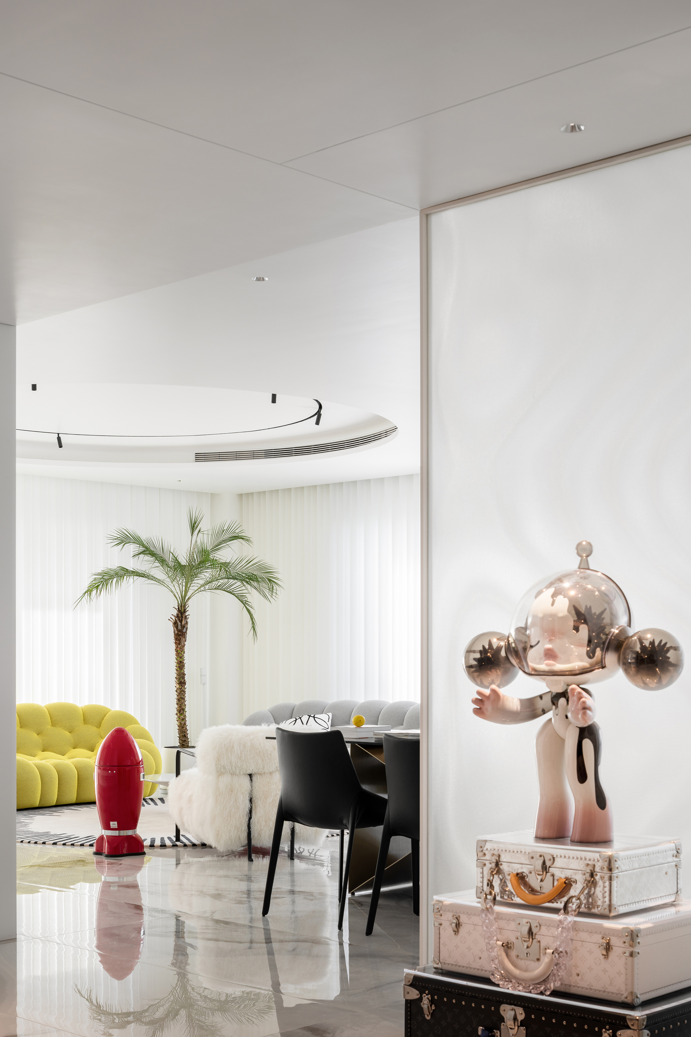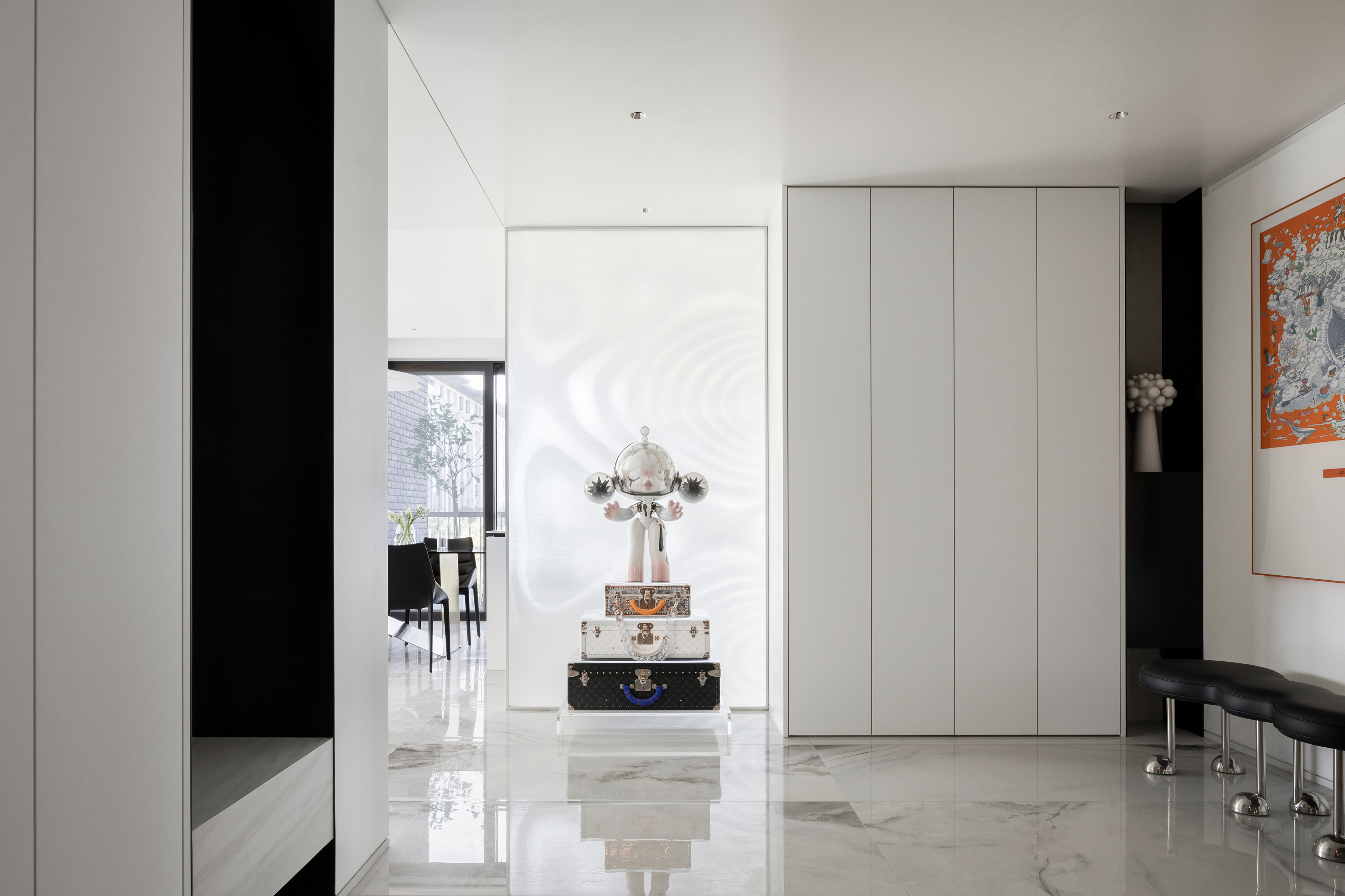 空间白色为基调,以光为主要元素,融入空间里面。以一抹抹艳丽的颜色,洒入空间,让空间有起伏,有节奏,有变化。