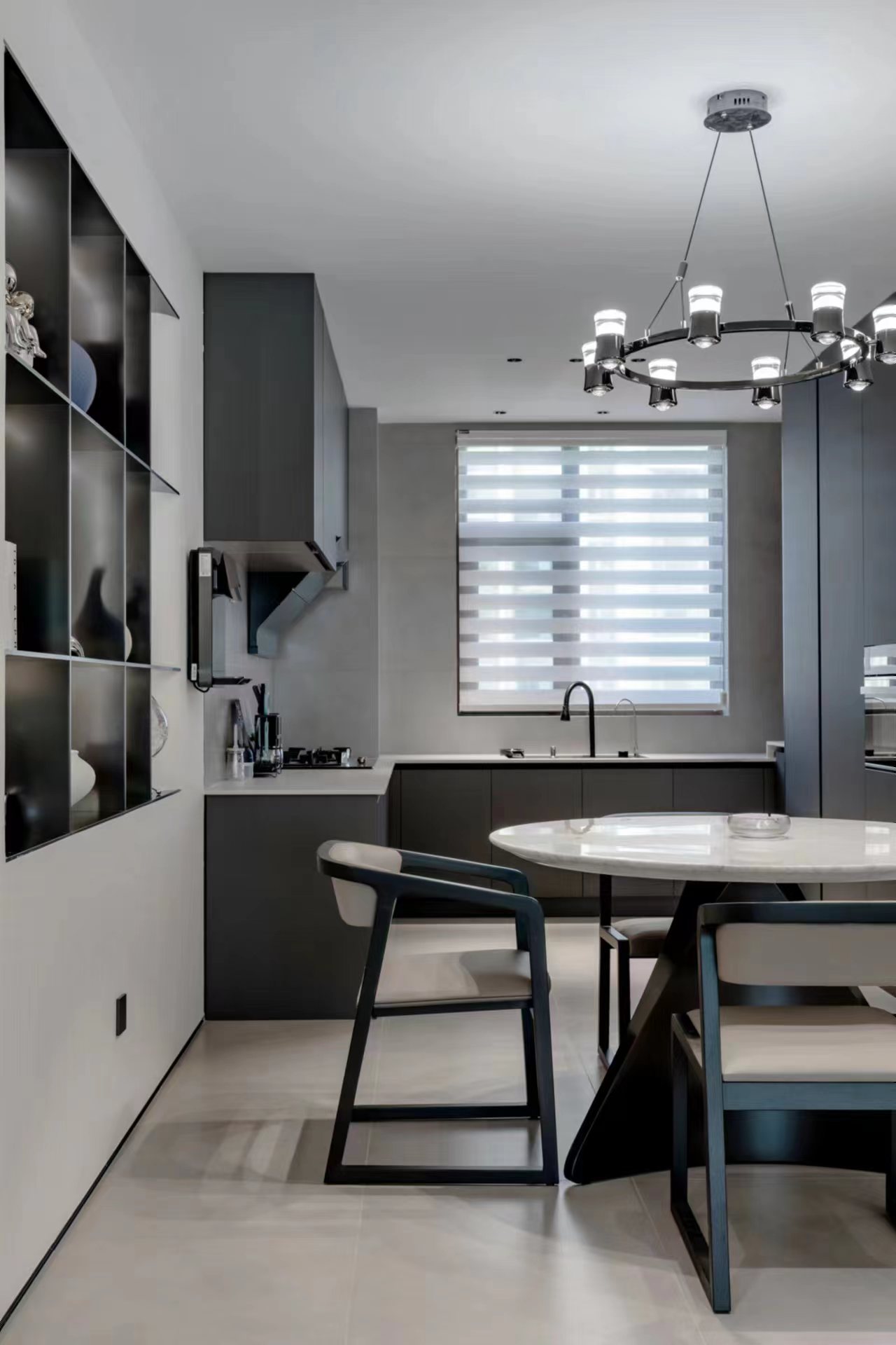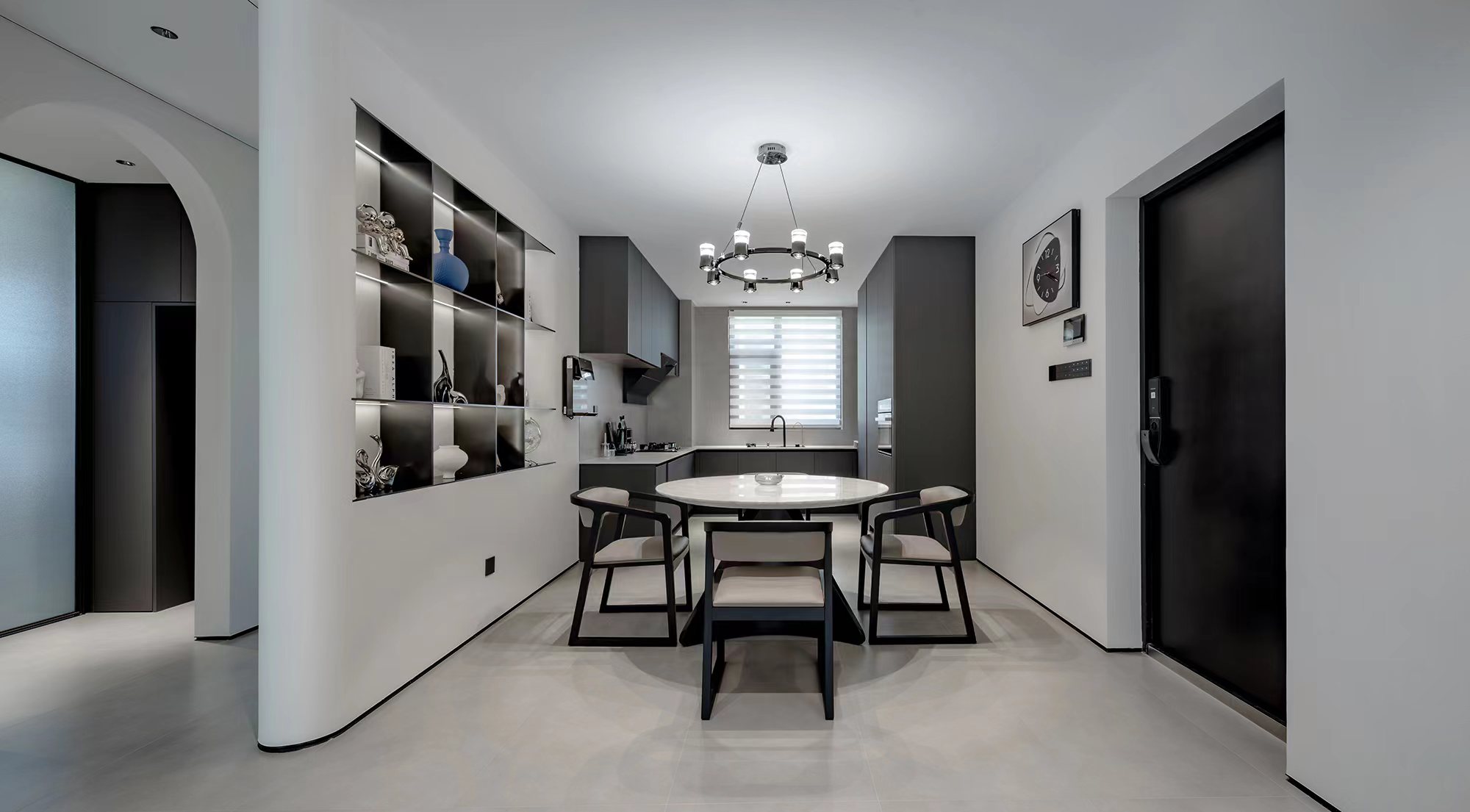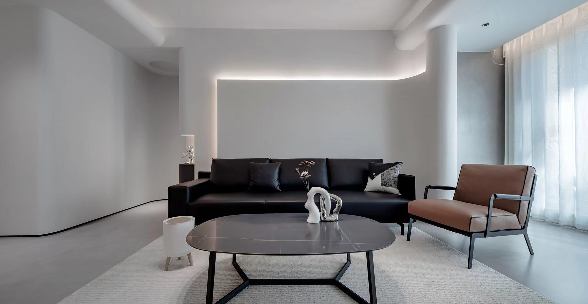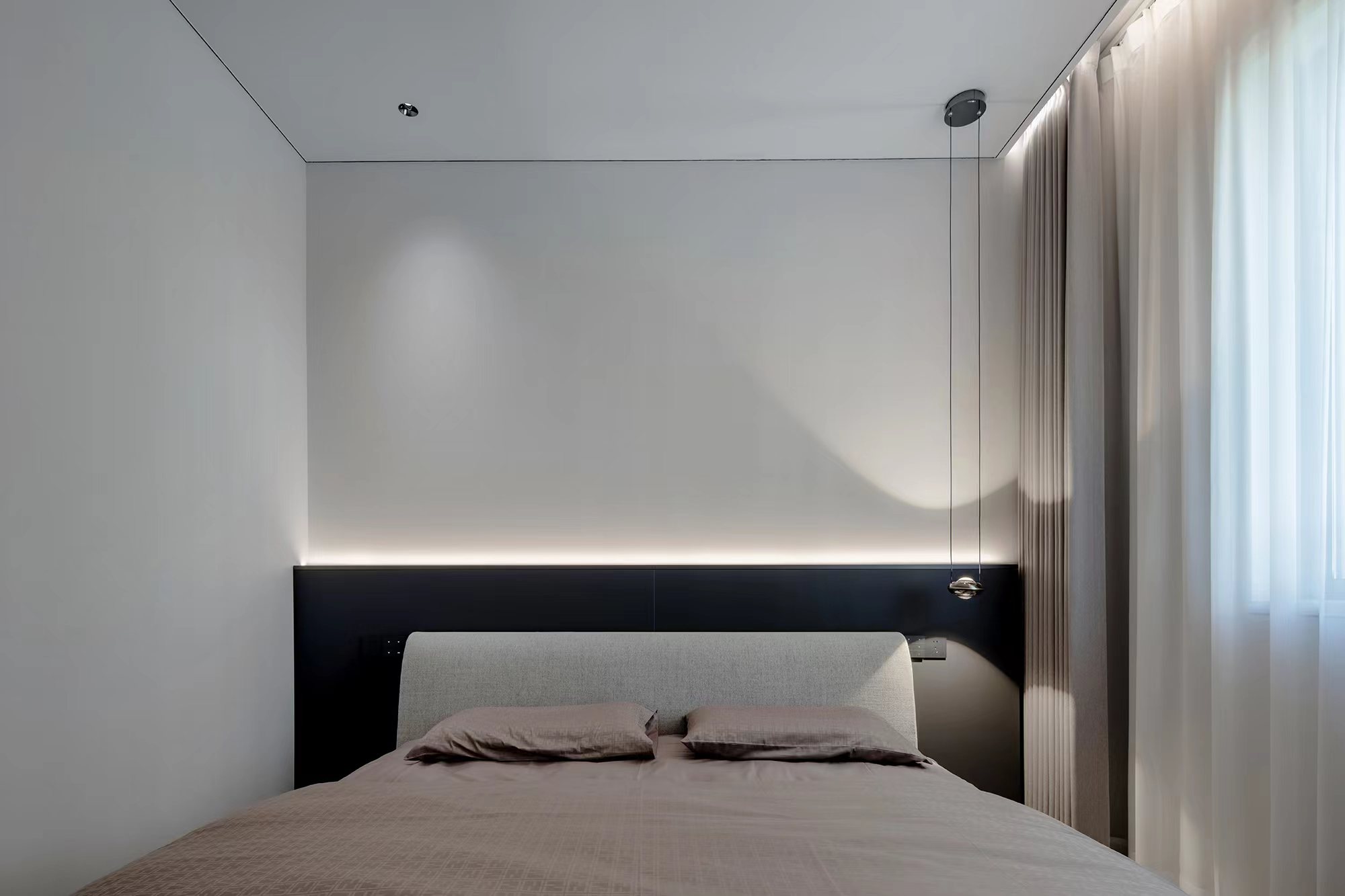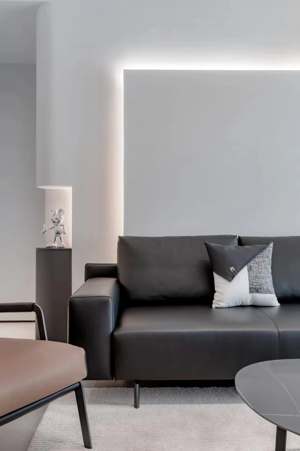 空间布局:我们从业主需求出发,应用曲面弧线减弱空间的压迫感,通过改造扩大空间利用率,增加储物空间,在定制及家具我们都做了系统性设计,达到空间干净,储物大,又不失简约的美感