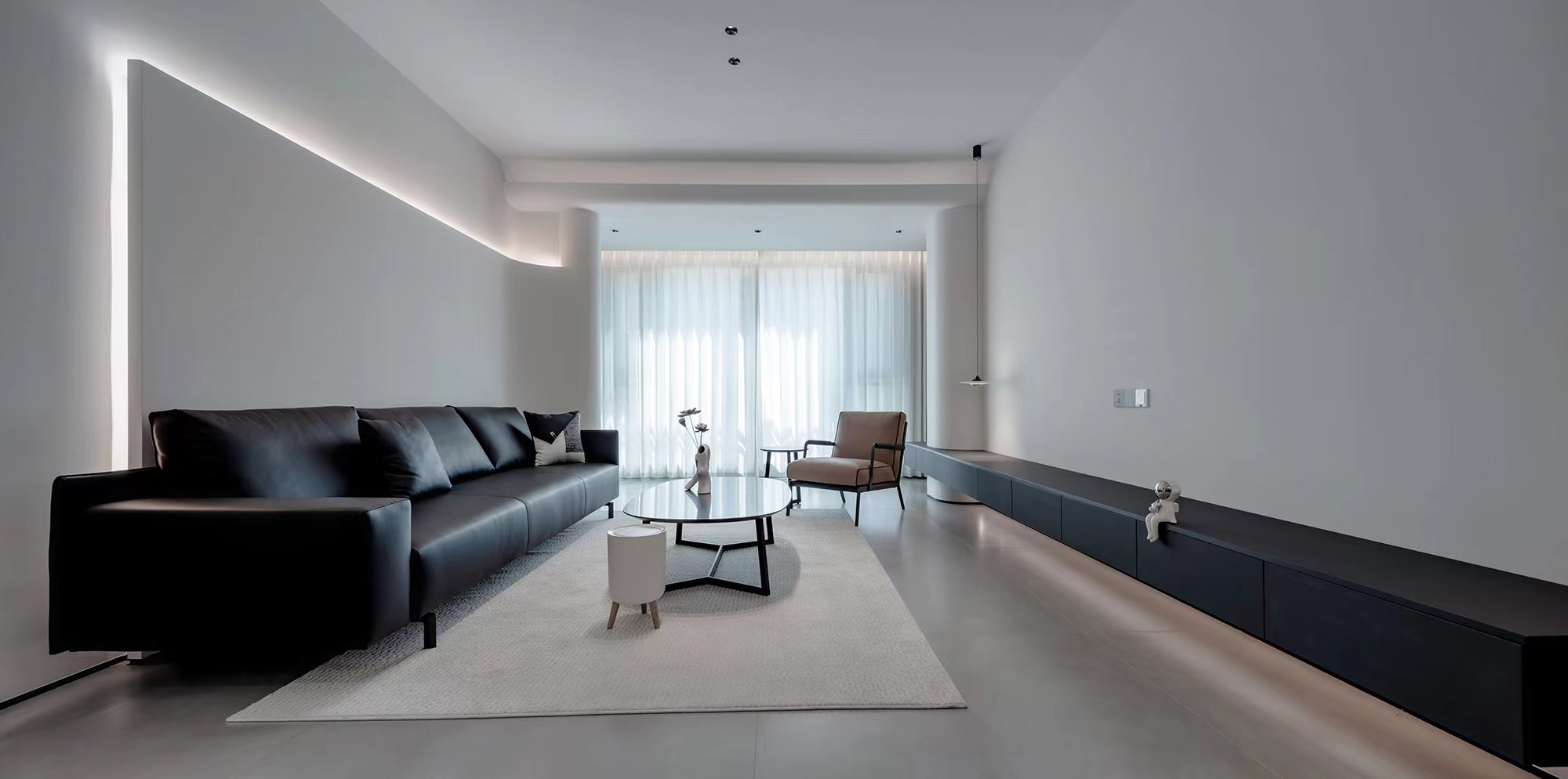 设计选材:我们大量应用自然色彩,大面积使用艺术涂料,柜体均采用复合板材,尽量减少多灯光应用,