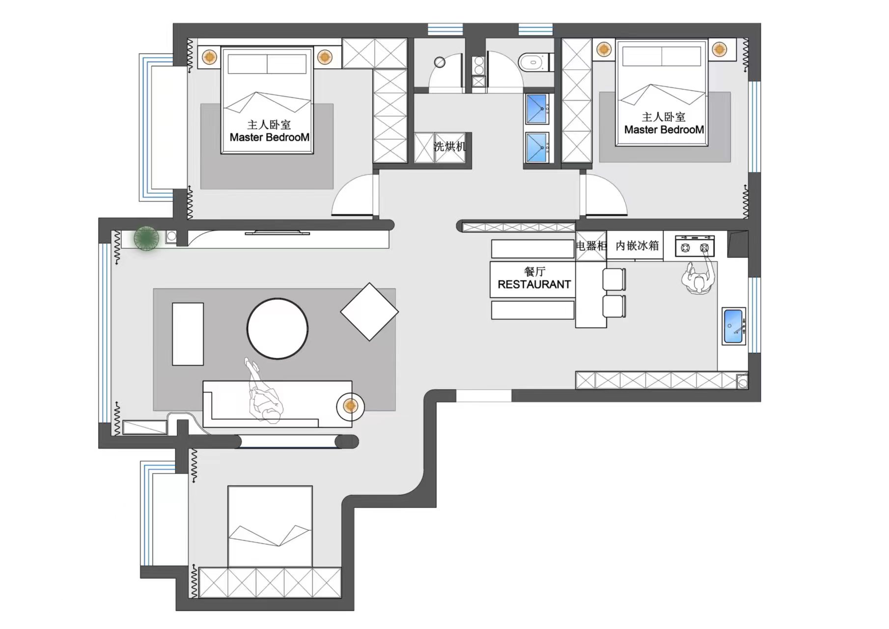 项目定位:受业主的委托及要求,我们在满足业主居住的条件下尽可能的实现空间利用率及空间最大化,弱化空间存在的硬缺陷