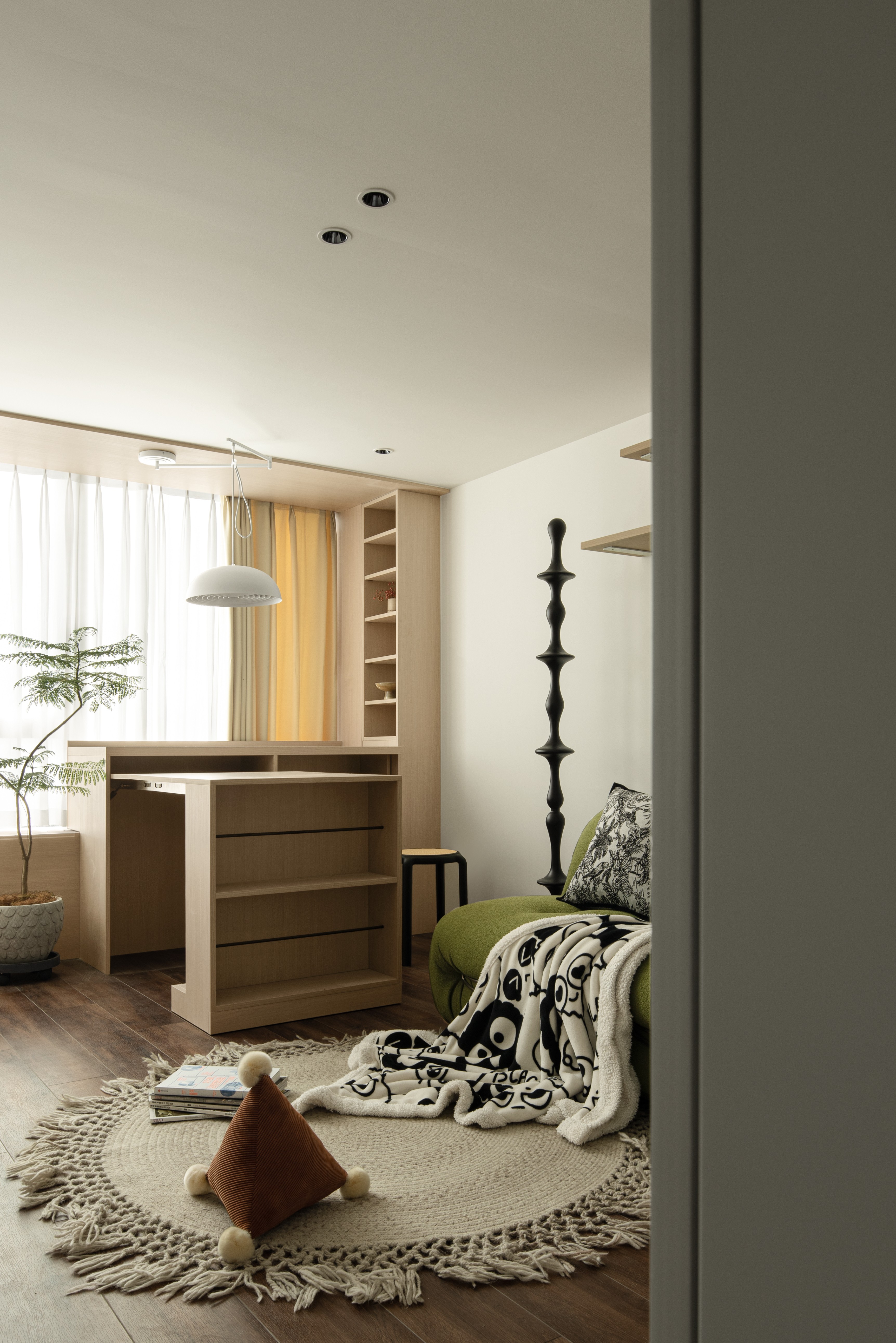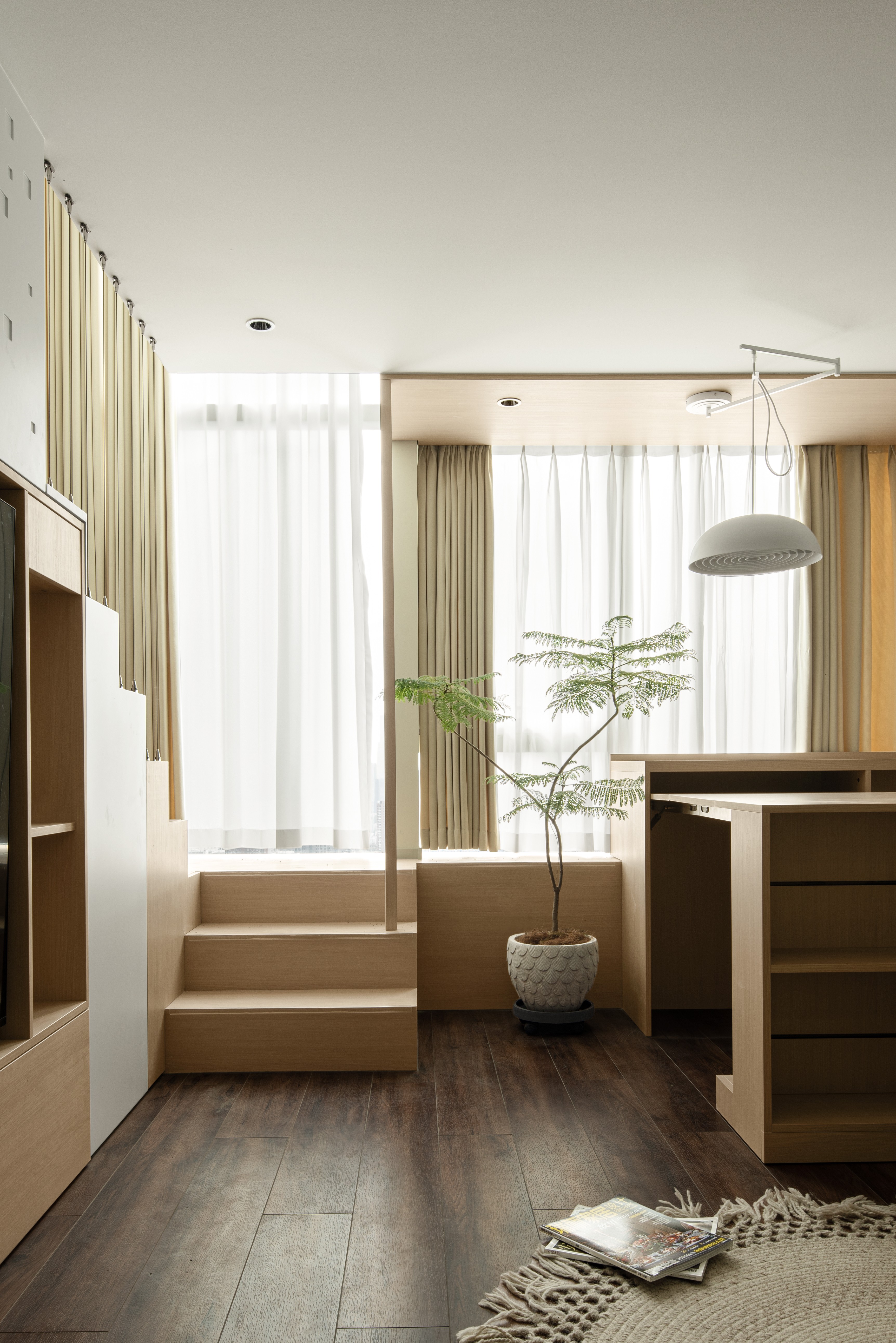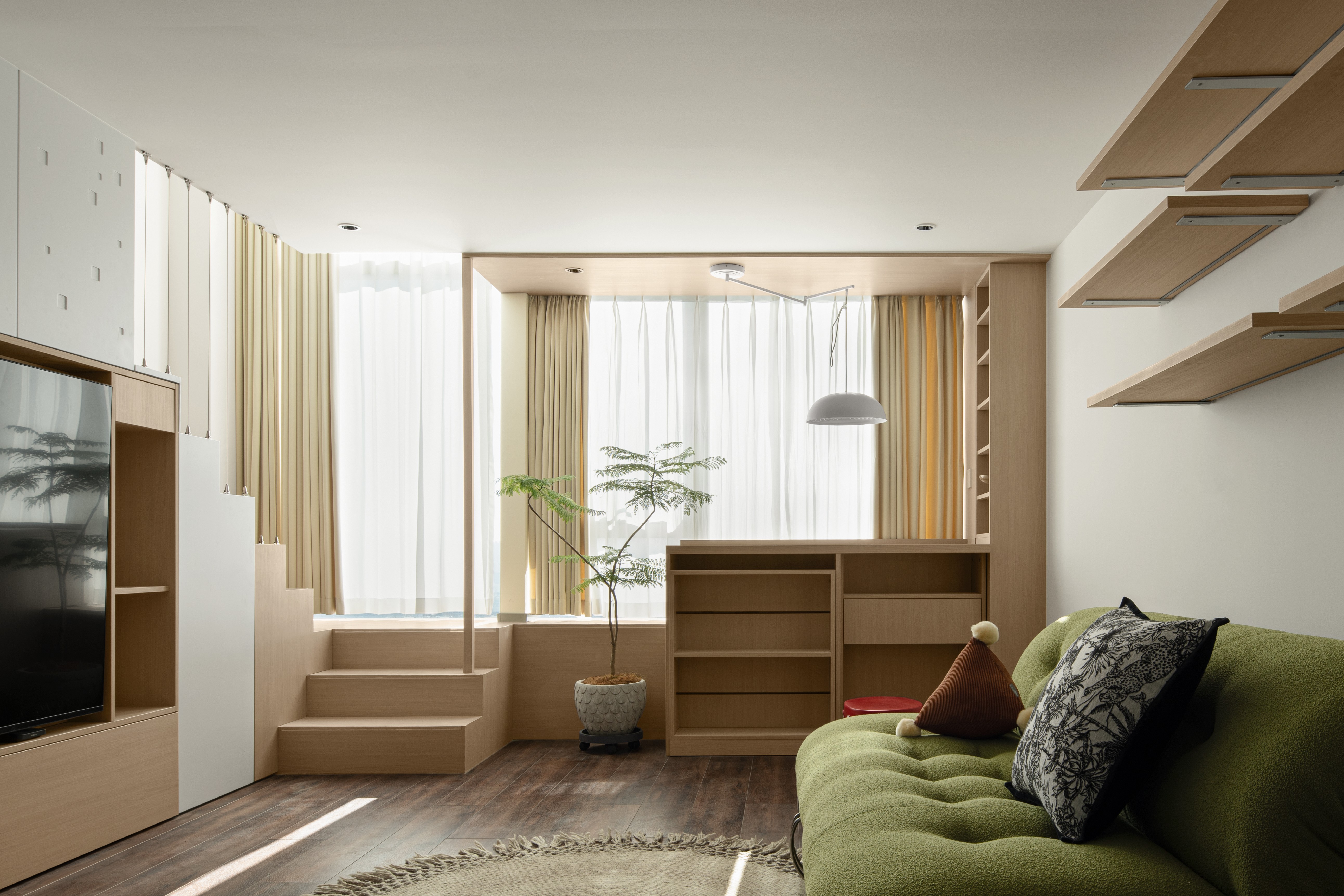 项目定位:因为户型比较小,但是功能强大,所有的功能性都和造型相结合
