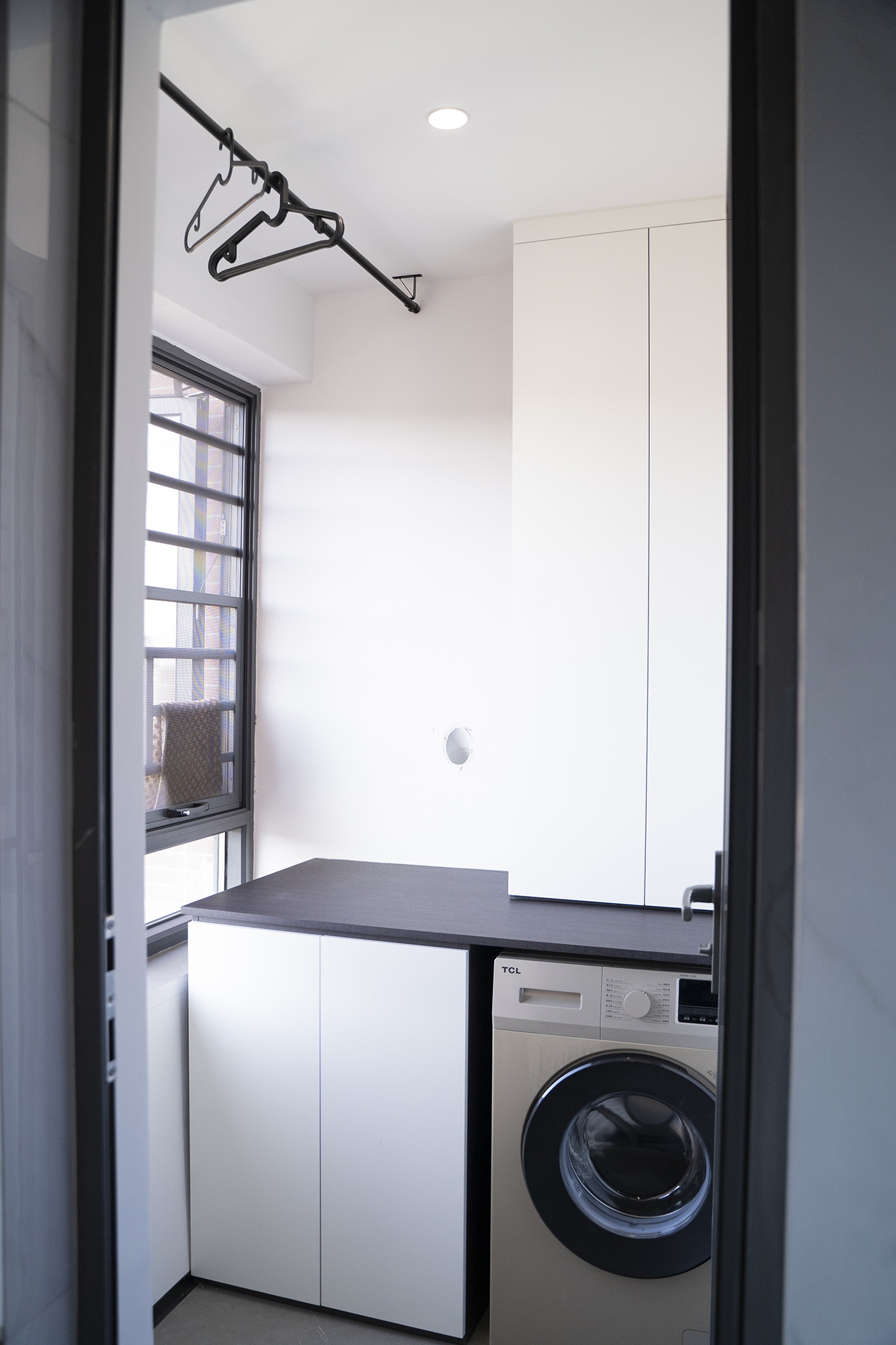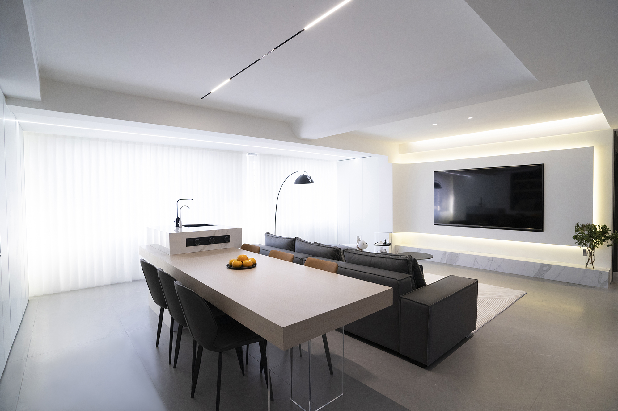 项目定位:干净、简单是业主的诉求。设计中运用点、线、面的穿插,让整个空间层次有度;整体空间以黑、白、灰为主基调,搭配少量木纹,使得整个空间粗中有细。多元的材质,细腻的表达,质感与氛围感十足。