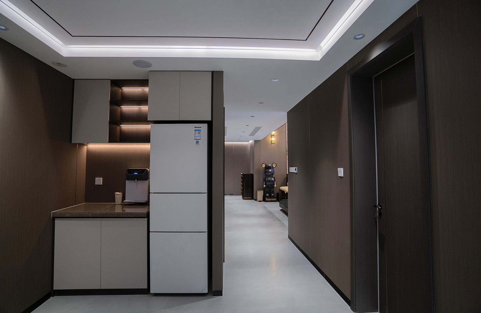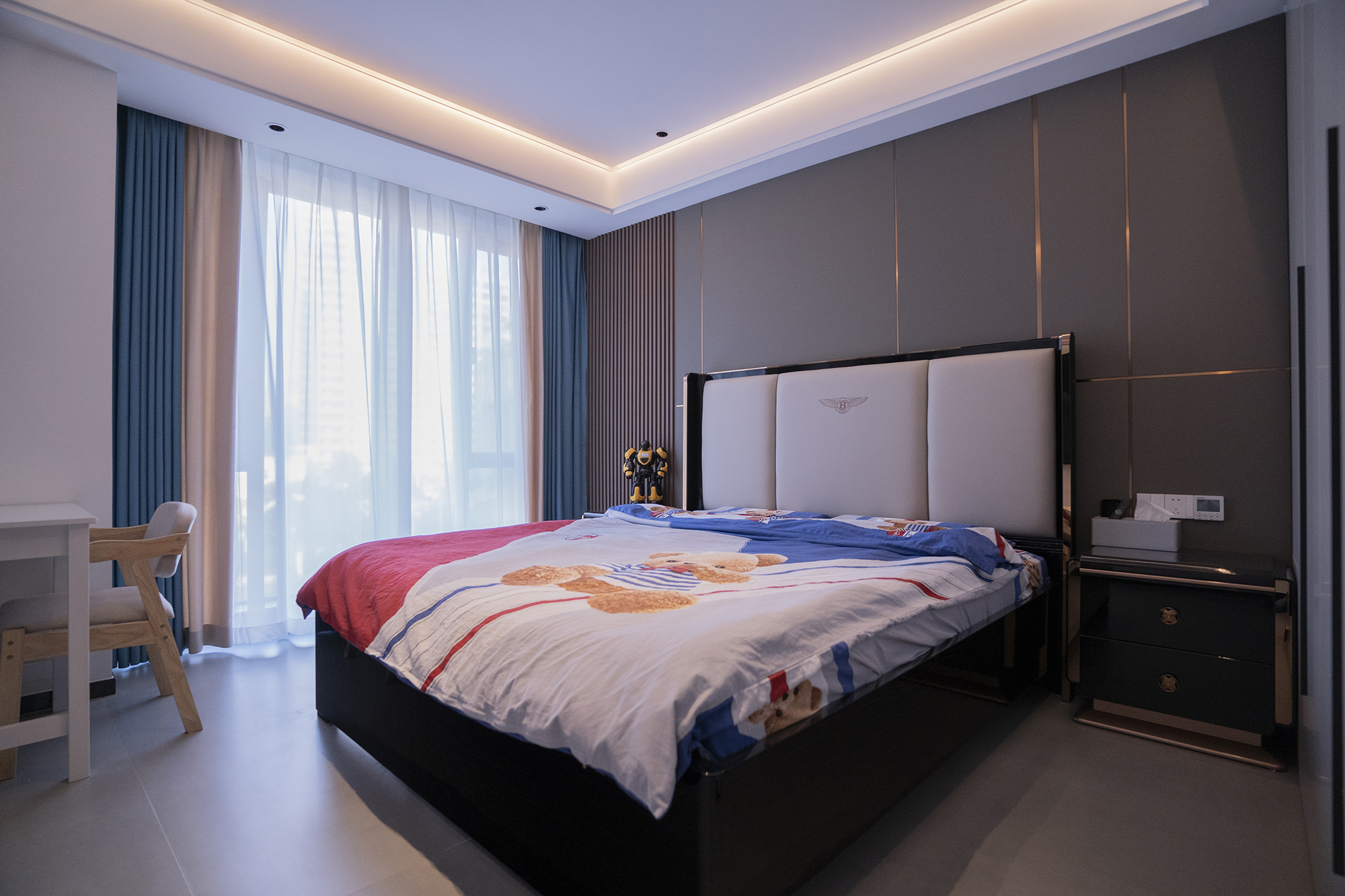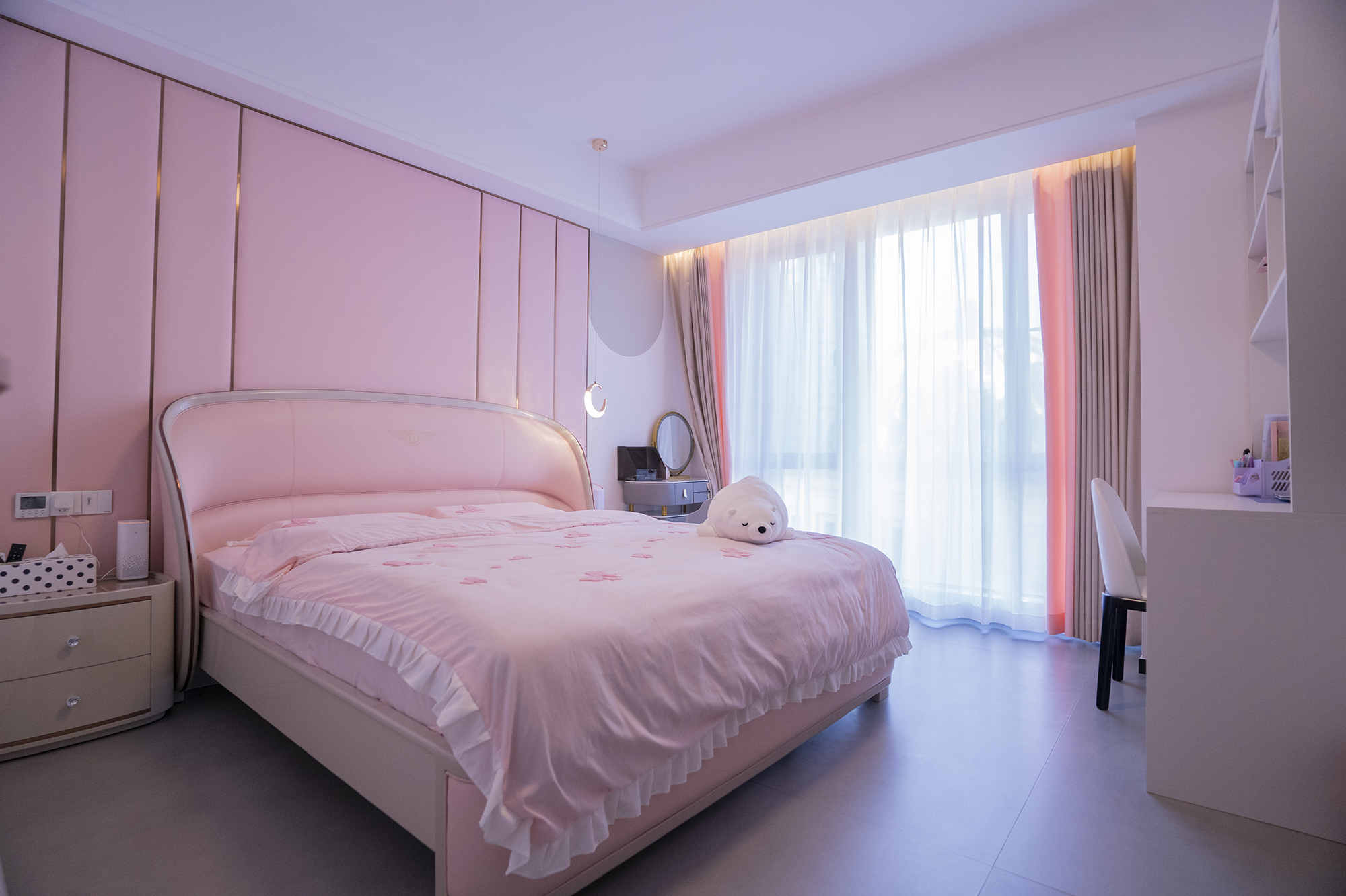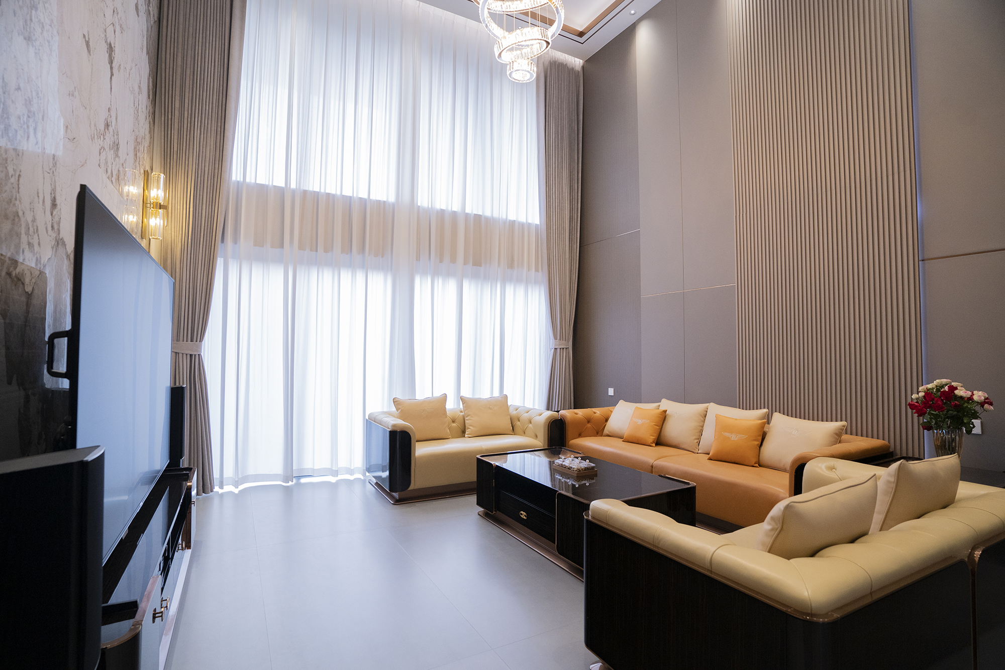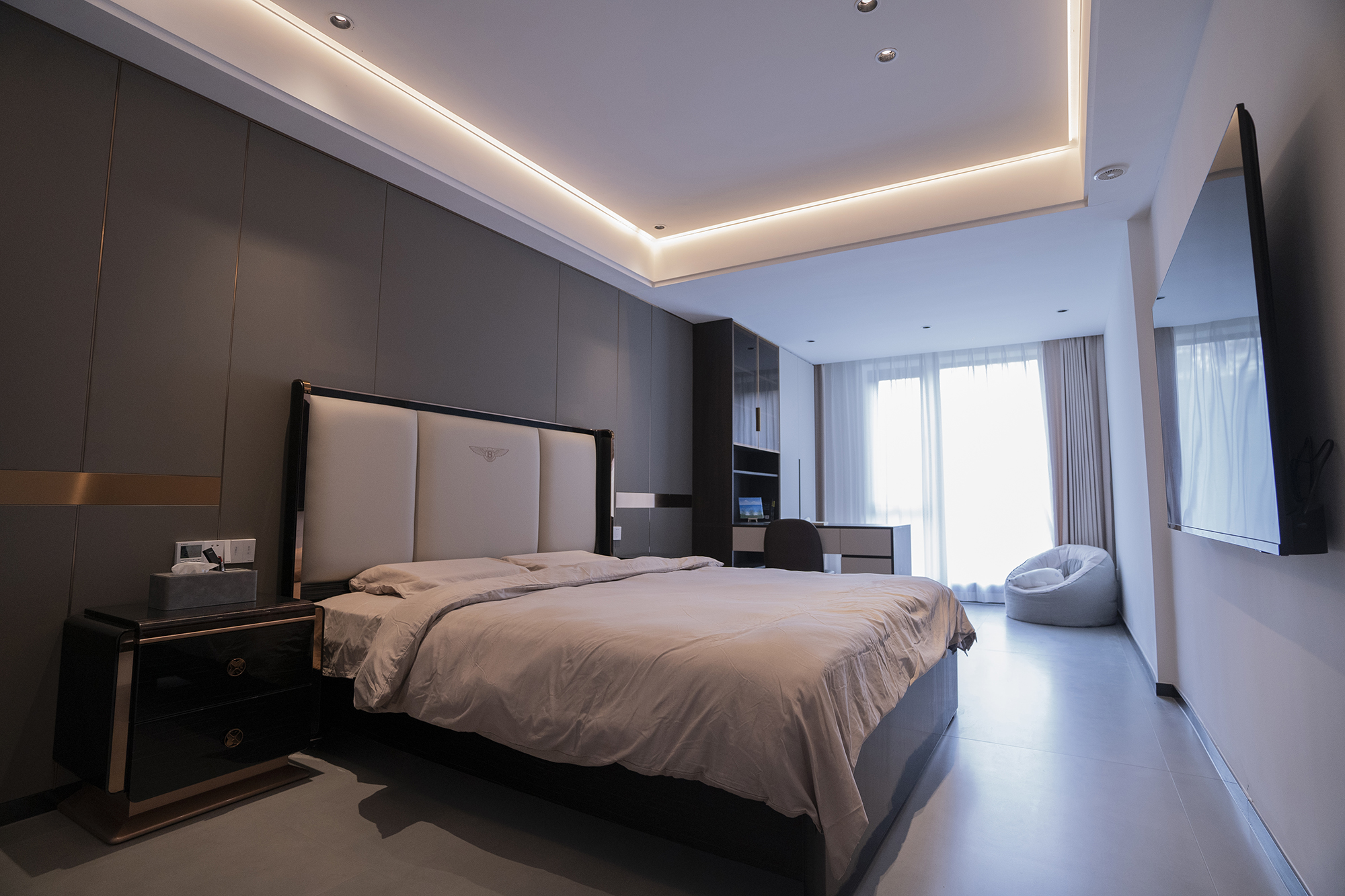 空间布局:户型结构上保留了该户型会客厅挑高5.8米的空间特点,整个空间非常的气派;空间布局共有5卧室、4卫生间、1洗衣房、1储物间、1会客厅、2过厅、1餐厅、1阳台、1鞋帽间、1厨房,满足了本案业主常住人口五口之家的日常居住需求;公共区域设计尽量开阔,留给小朋友更多的娱乐空间;阳台同样也保留了挑高的空间,本案位于二楼,室外绿树成荫,开放式的阳台能更好让居住者亲近自然,感知四季变化。多元的灯光组合,让空间的照明方式更加灵动多变,可以对应不同的生活场景。