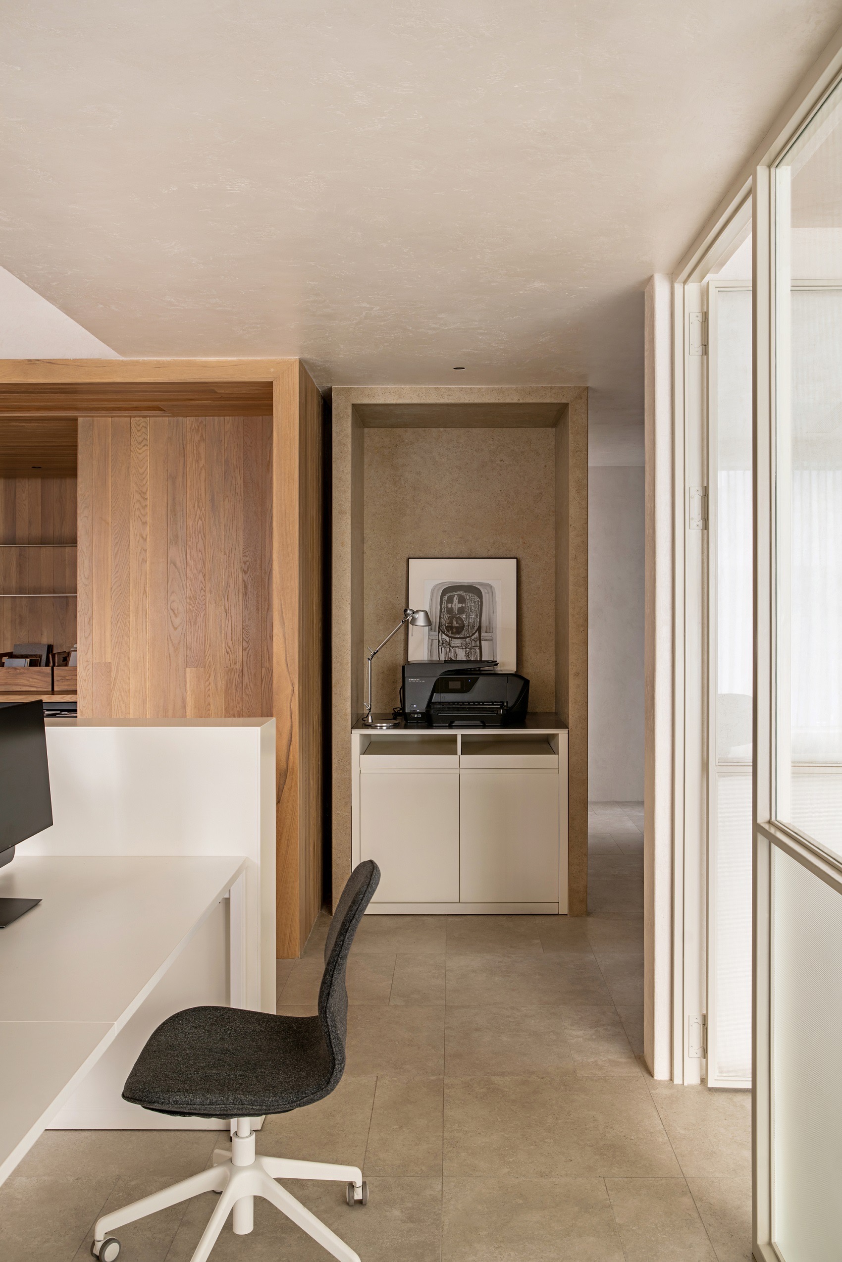 空间布局:“有”和“无”组合划分空间,开放式的功能布局让动态与静态空间相互交织。我们思考如何让“有”的部分,对空间的限定产生更丰富的变化,同时也为在治木工作的同事留出思考的空间。