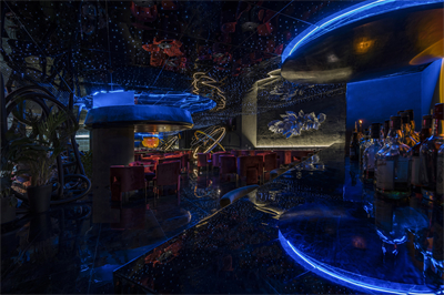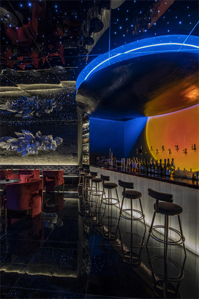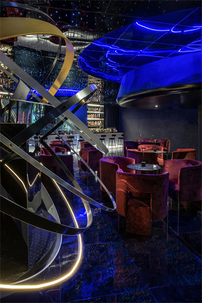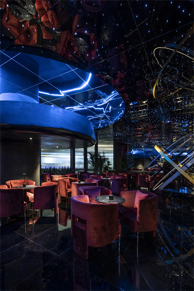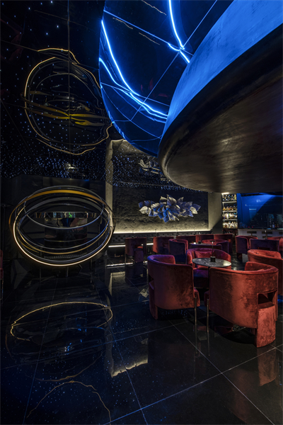 希望通过宇宙为灵感,构建出一个自由交错、虚实交融、明暗交织,人与人便捷交互的空间。
