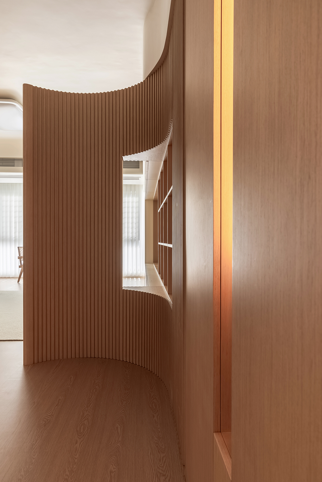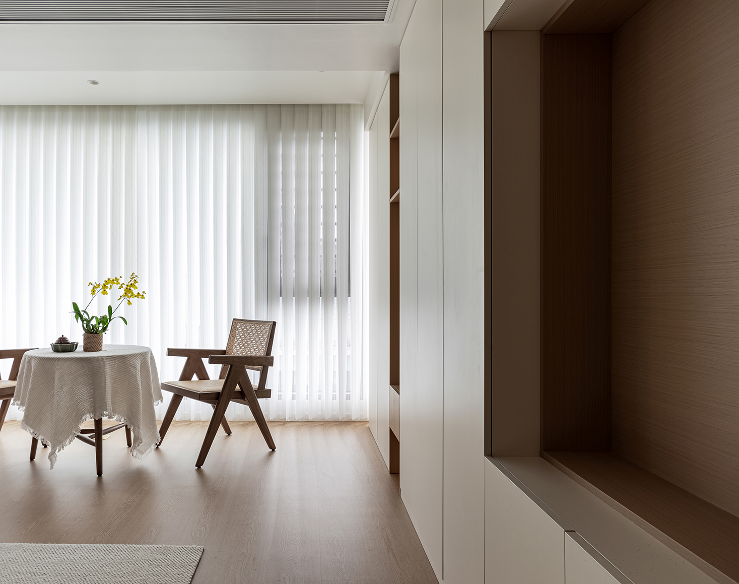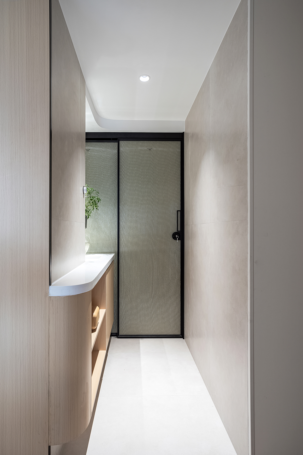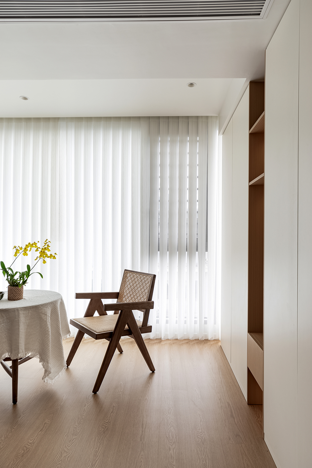 整体空间的材质看似单一,却蕴藏着无限的可能,满足强大的收纳功能,以及简约清爽的视觉效果